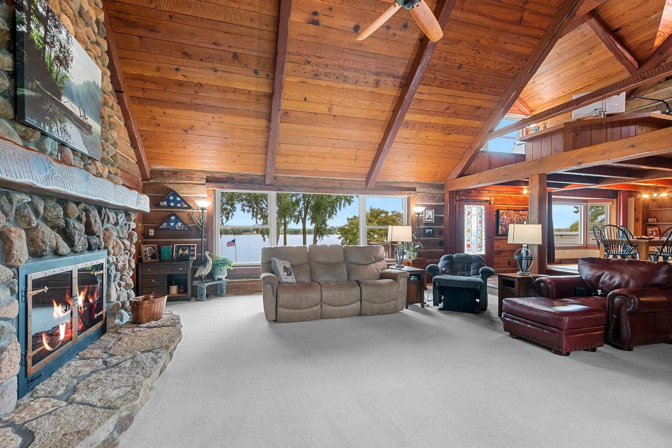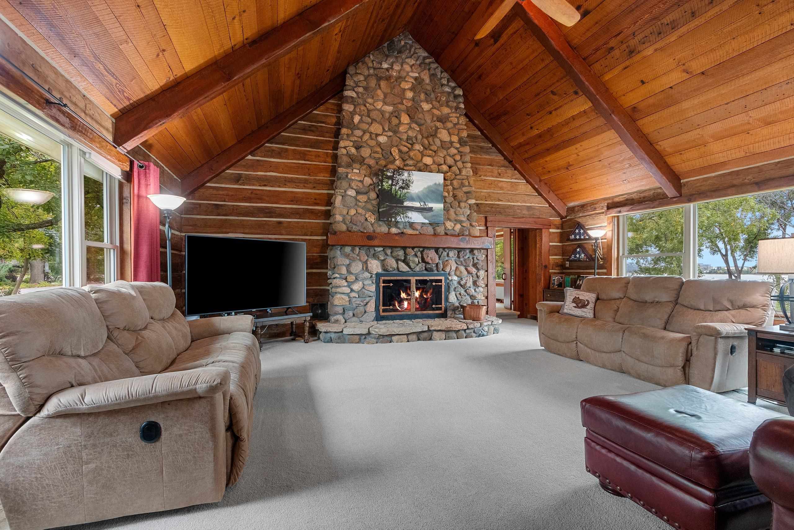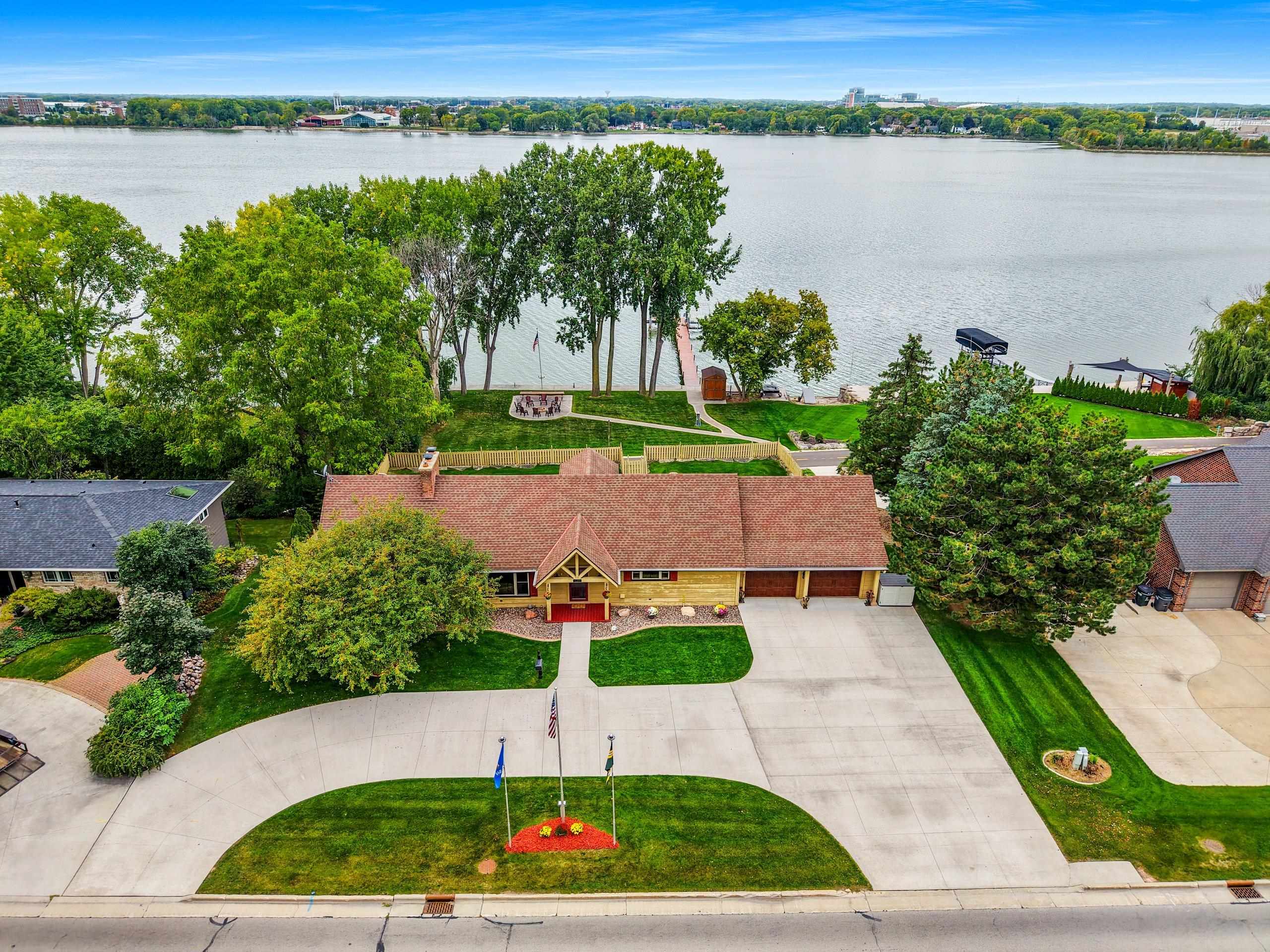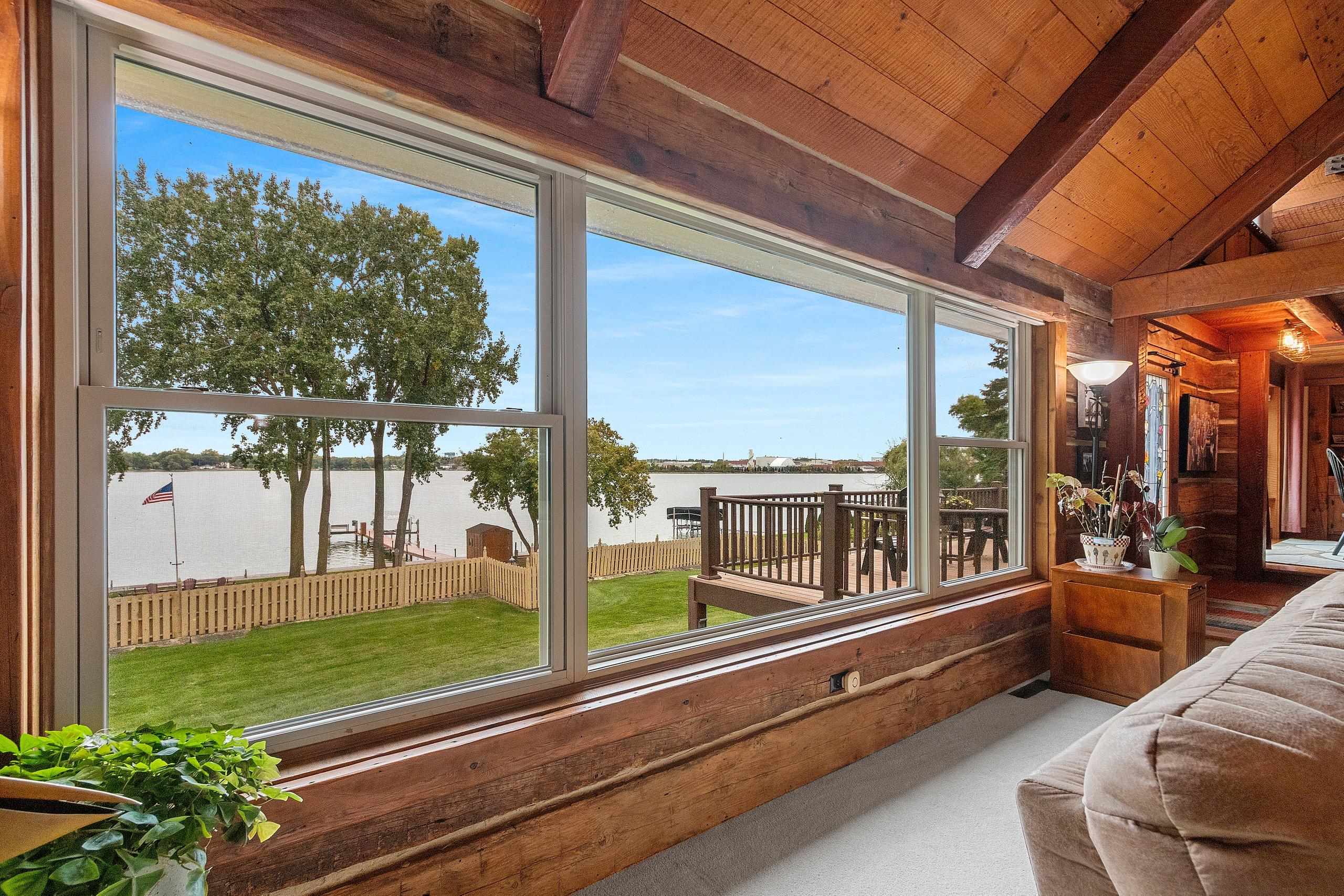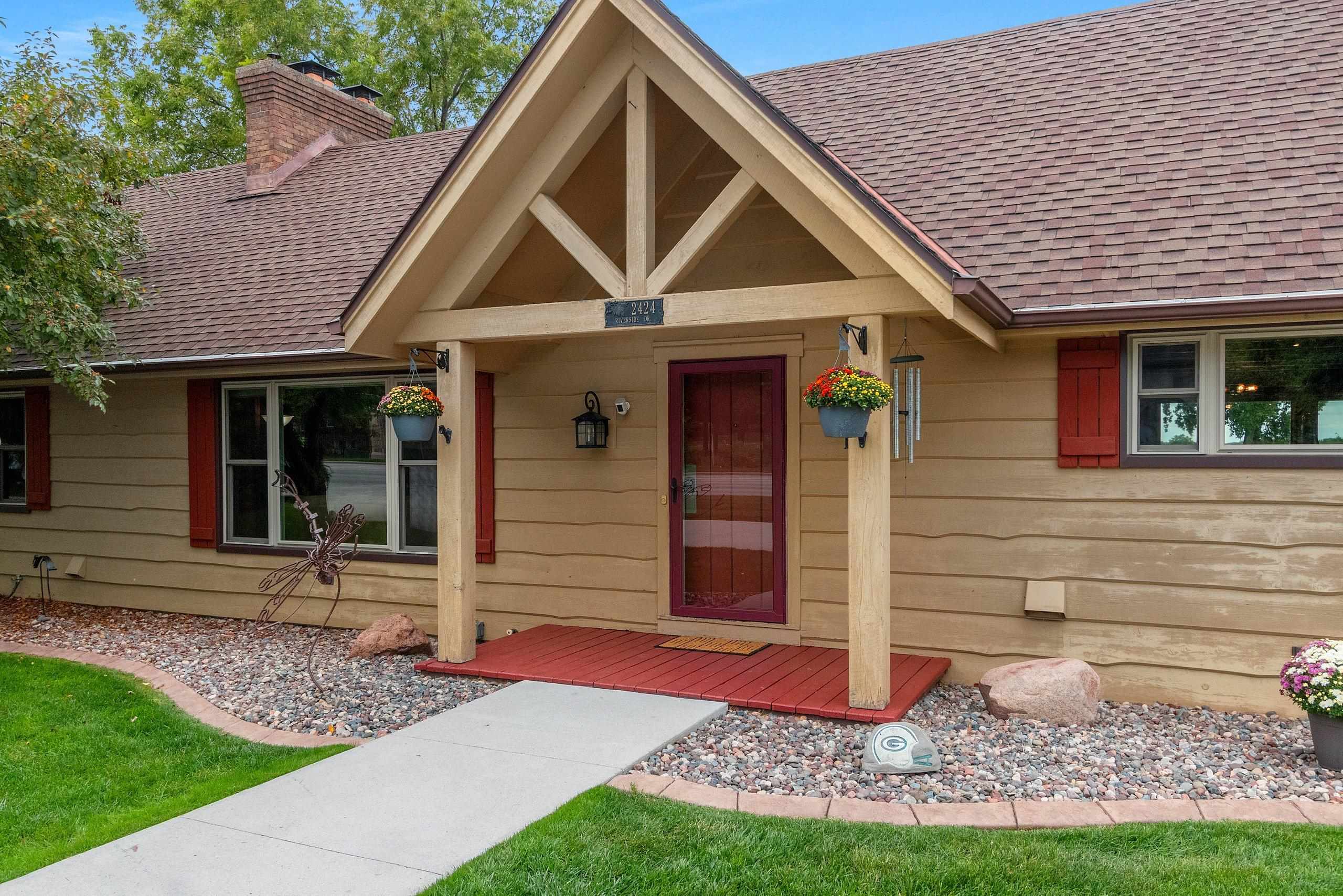 A Fox Riverfront Delight in the heart of Allouez. Pridefully owned and beautifully updated walkout ranch nestled on a 0.49 acre lot with 120 ft of riverfront. Kayak, boat, fish, have cocktails! Your own bonfire paver patio- watching extraordinary sunsets. Direct access to Fox River Walking Trail out your back door. Beautiful & extensively landscaped and hardscaped, lovely green spaces. The home has jaw dropping views, sunsets and Lambeau in the distance. Home features "Hand Hewn Wisconsin Pine Beams", beautiful detailed woodwork and traditional style. Stunning floor to ceiling fireplace, wooden ceilings/beam work, magnificent views throughout main floor great room, dining & 1st floor bedroom wing. LL includes 2 bedrooms, full bath, pub room, rec room & hobby room.