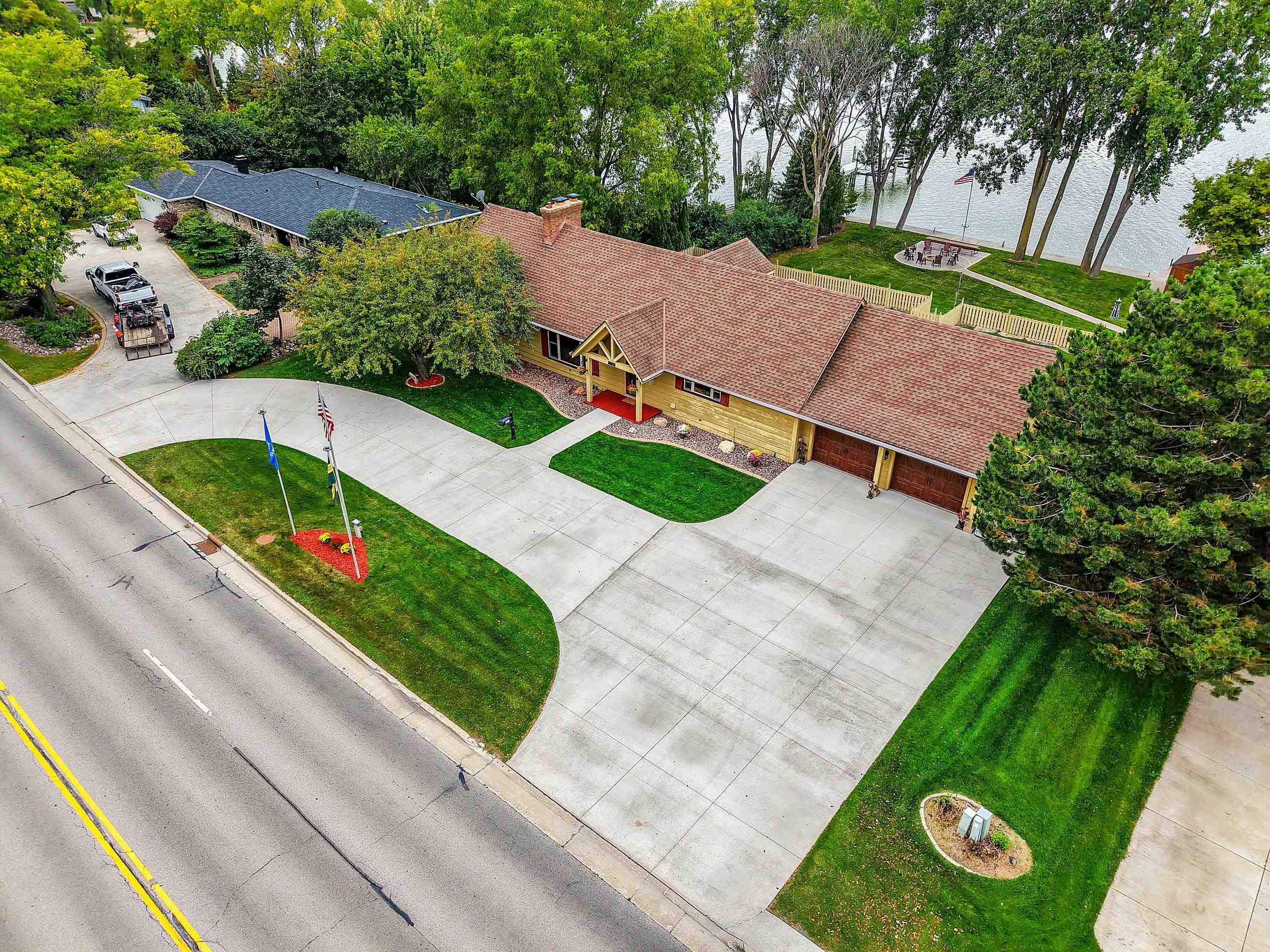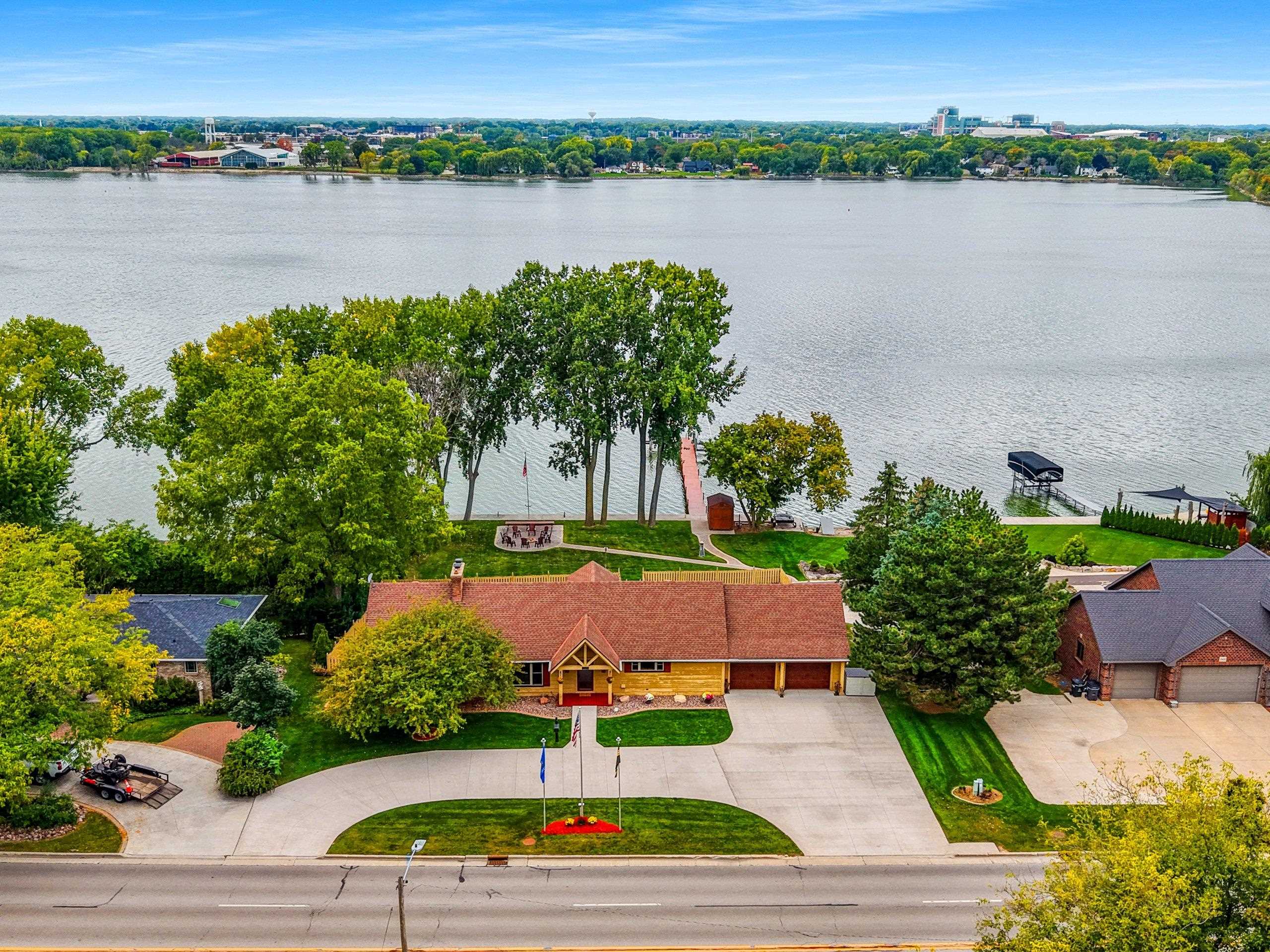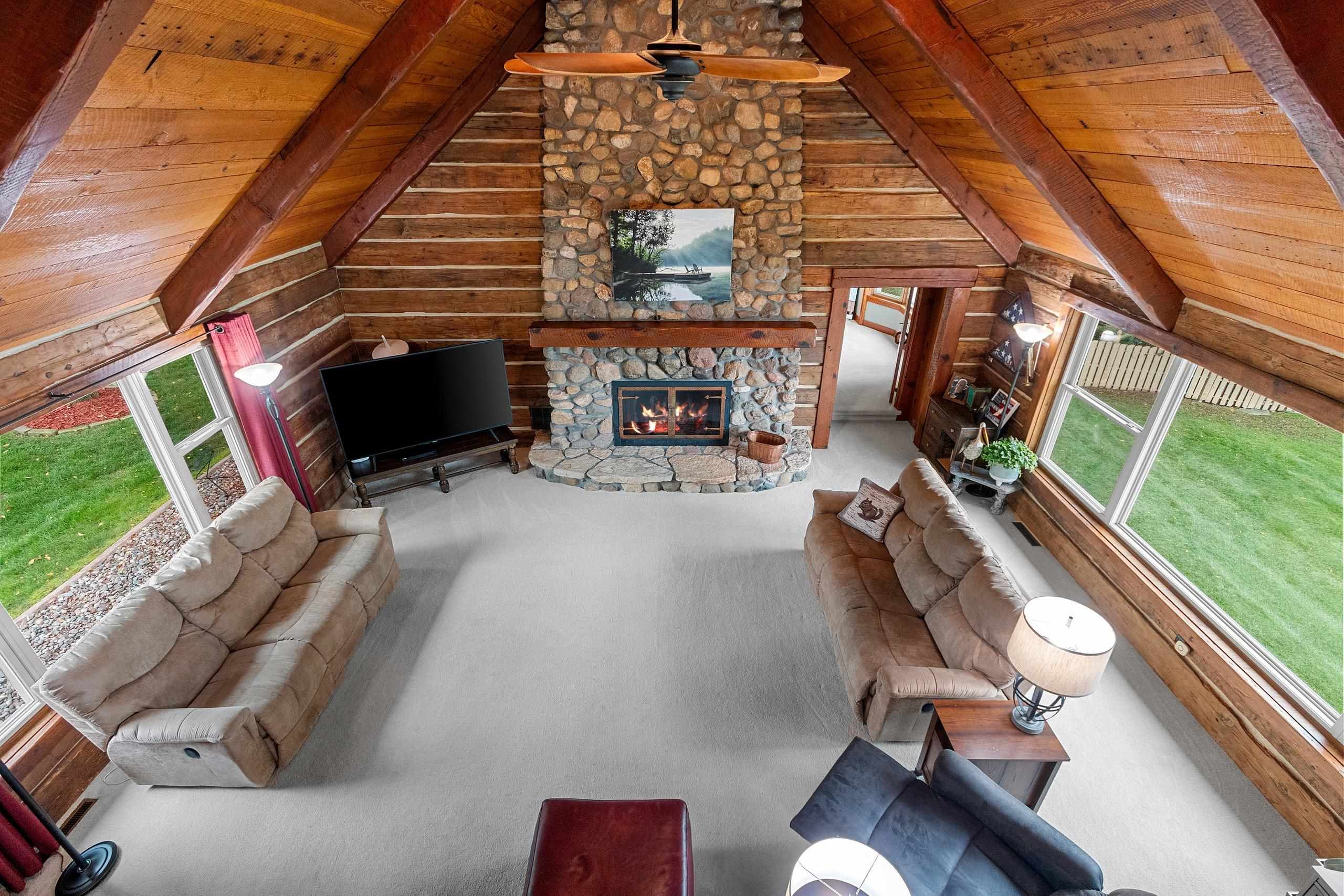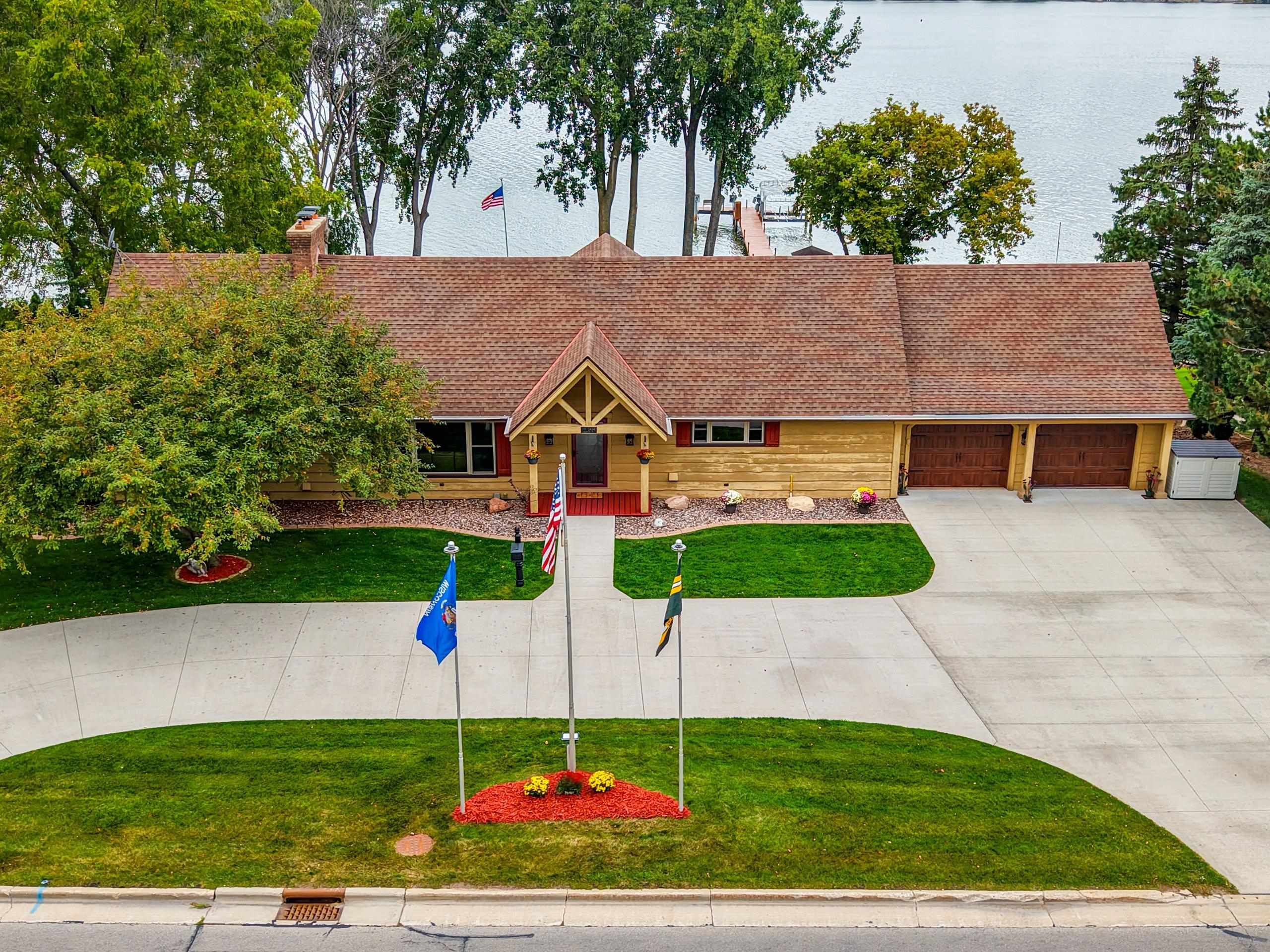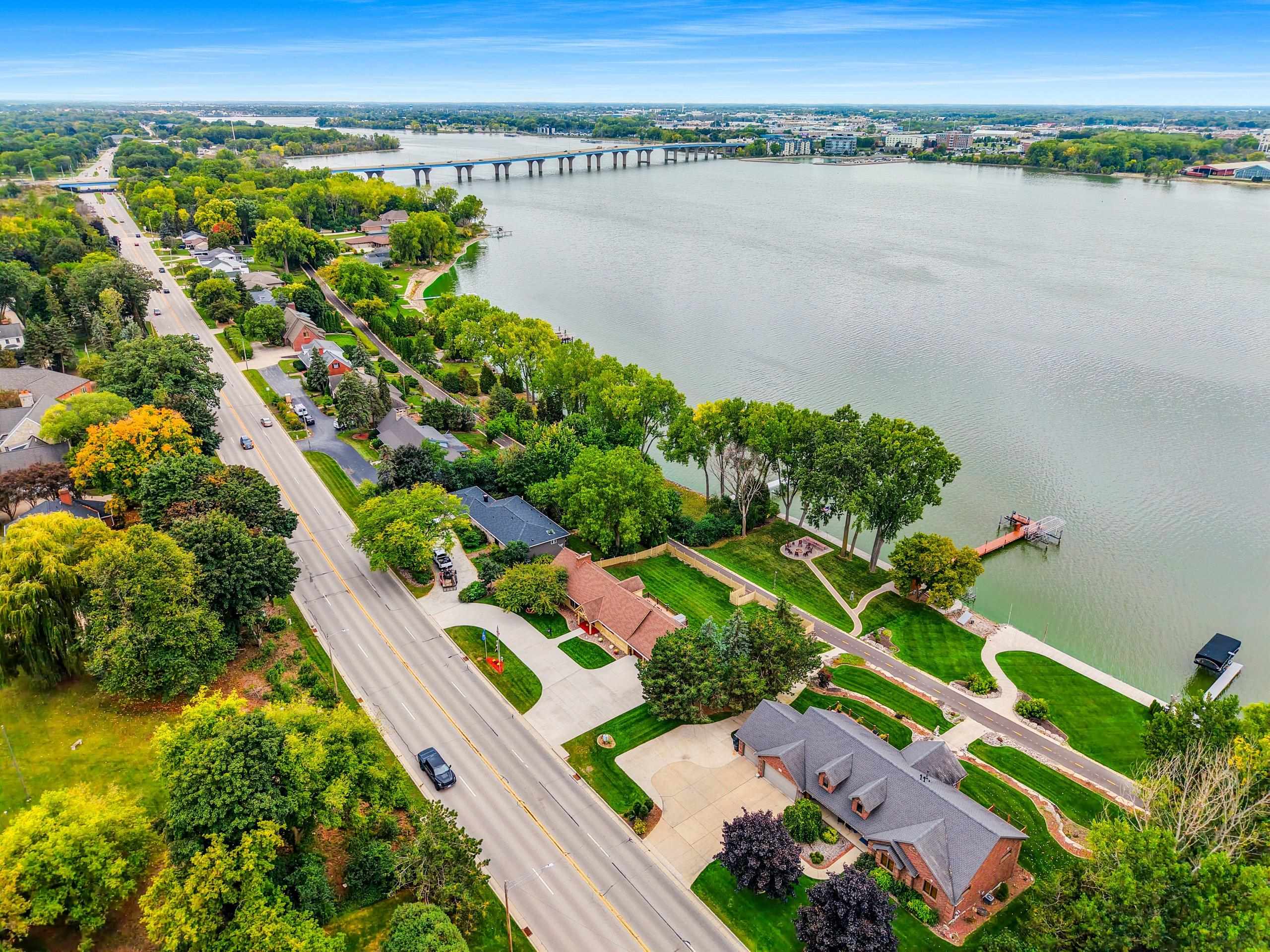 A Fox Riverfront Delight in the heart of Allouez. Pridefully owned and beautifully updated walkout ranch nestled on a 0.49 acre lot with 120 ft of riverfront. Kayak, boat, fish, have cocktails! Your own bonfire paver patio- watching extraordinary sunsets. Direct access to Fox River Walking Trail out your back door. Beautiful & extensively landscaped and hardscaped, lovely green spaces. The home has jaw dropping views, sunsets and Lambeau in the distance. Home features "Hand Hewn Wisconsin Pine Beams", beautiful detailed woodwork and traditional style. Stunning floor to ceiling fireplace, wooden ceilings/beam work, magnificent views throughout main floor great room, dining & 1st floor bedroom wing. LL includes 2 bedrooms, full bath, pub room, rec room & hobby room.