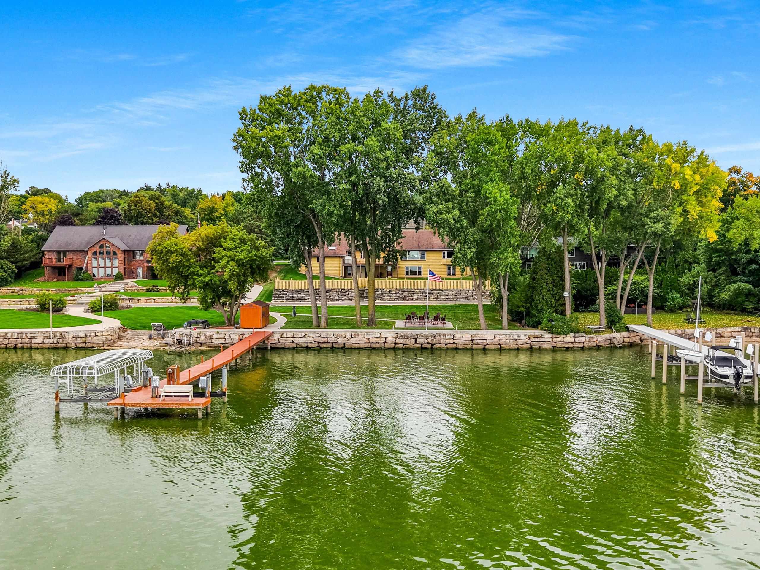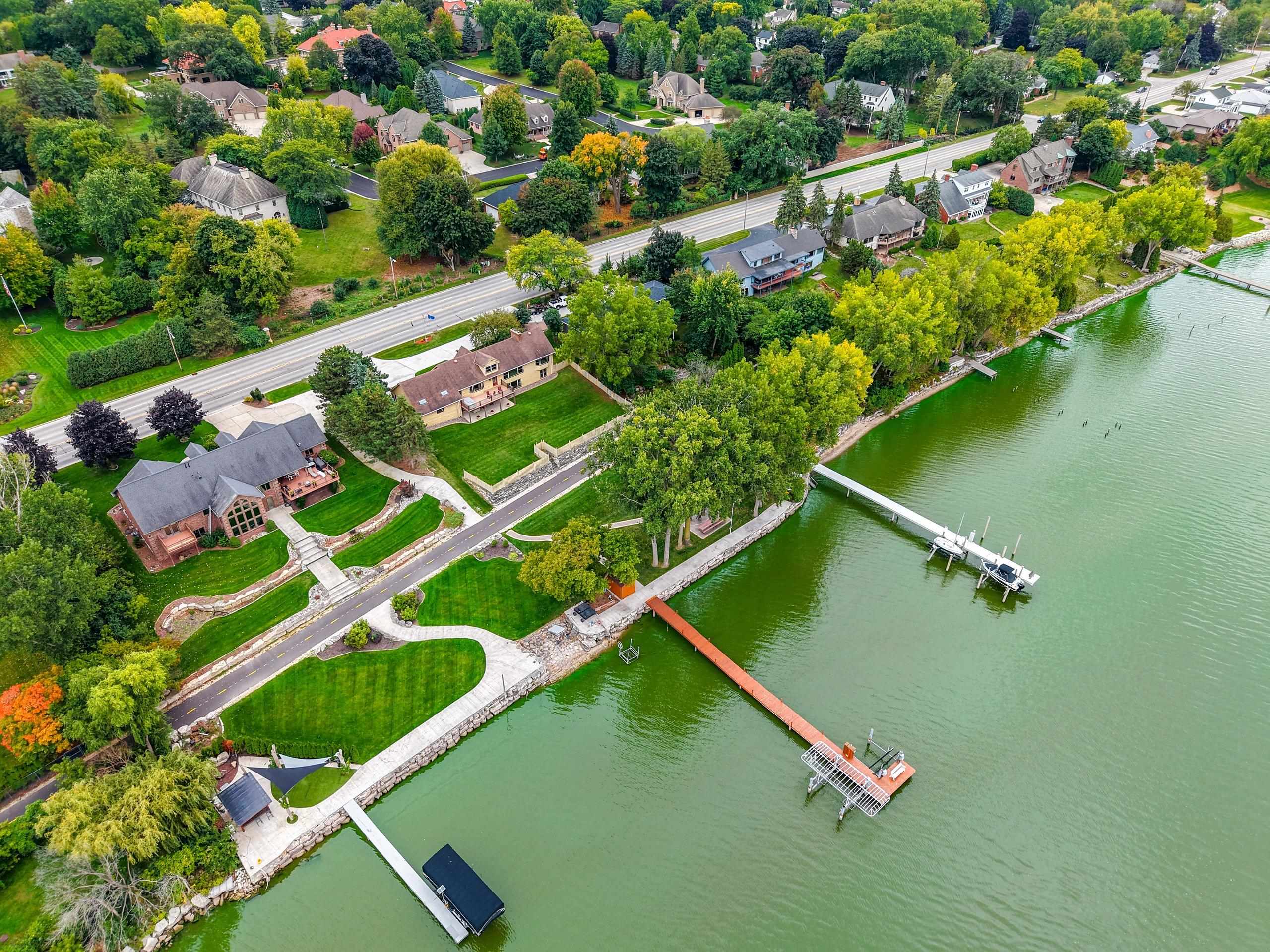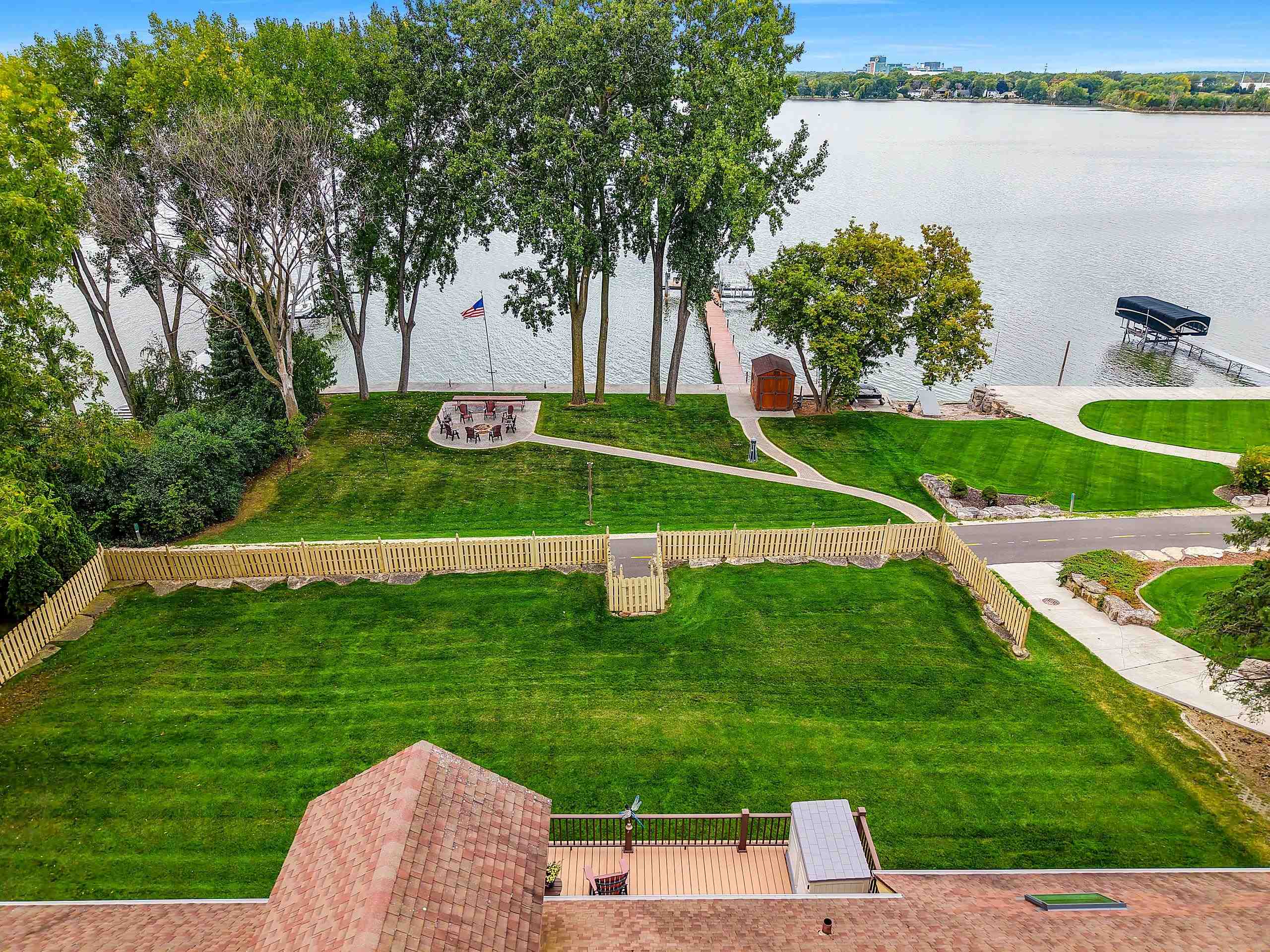Inground sprinkler system, privacy fence around portion of backyard, 3 exterior storage containers, 1 large shed by dock