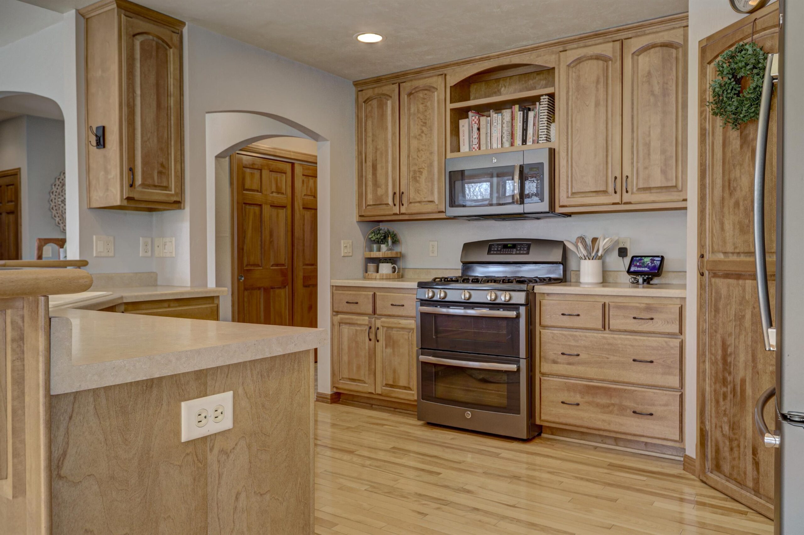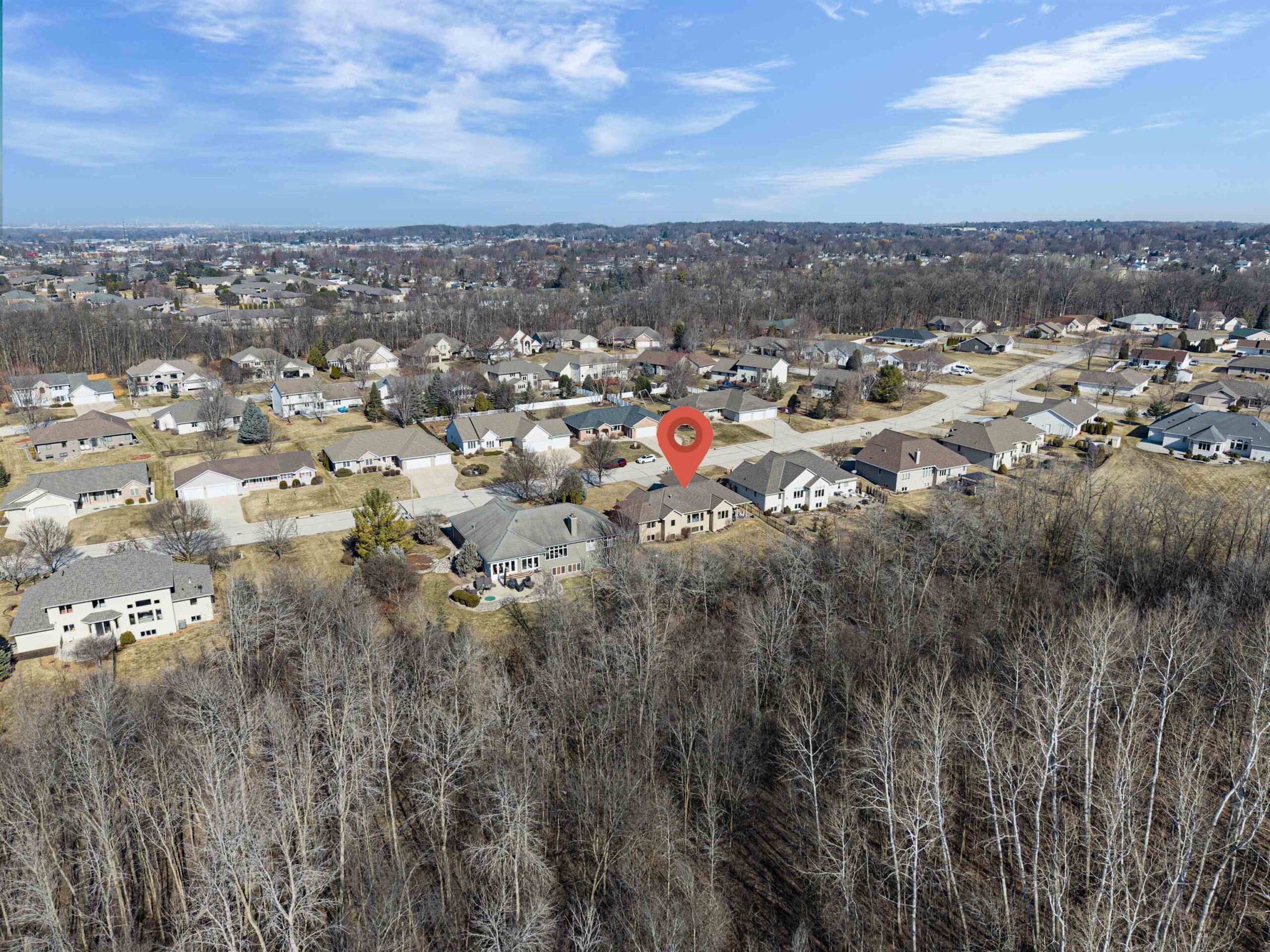 This beautiful 4 bedroom, 3 bathroom ranch offers an exceptional blend of comfort, style, and scenic surroundings. The open-concept main level features a welcoming foyer, living room with gas fireplace and built-ins, kitchen with breakfast bar and pantry, and dining area with tons of natural light! The primary bedroom hosts a full bathroom and large walk in closet, a second bedroom and full bathroom also occupy the main level. The lower level adds additional living space with a large family room w/gas fireplace, two bedrooms, and a full bathroom. Enjoy stunning year-round views beyond the fenced lot line of a wooded area with wildlife. The covered patio and fenced yard is an all around great space. The attached tandem 3 car garage also has basement access.