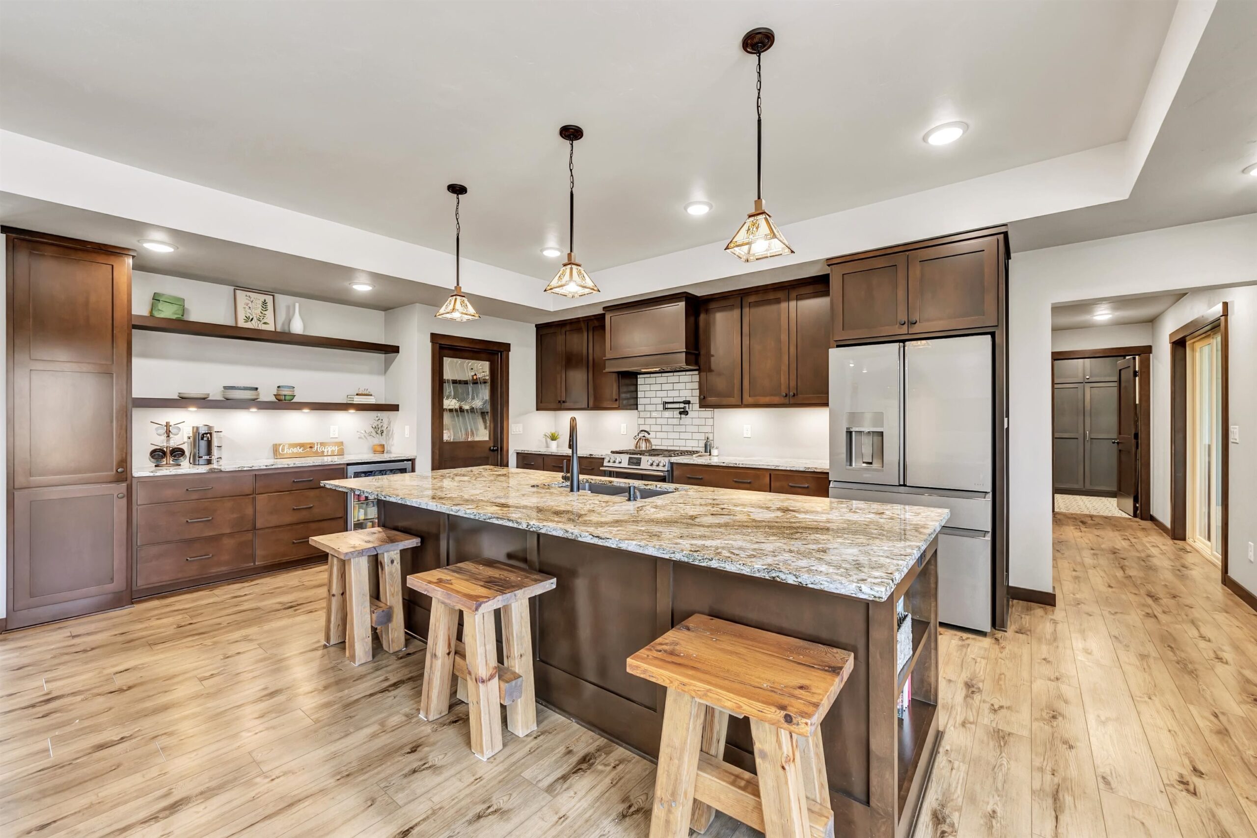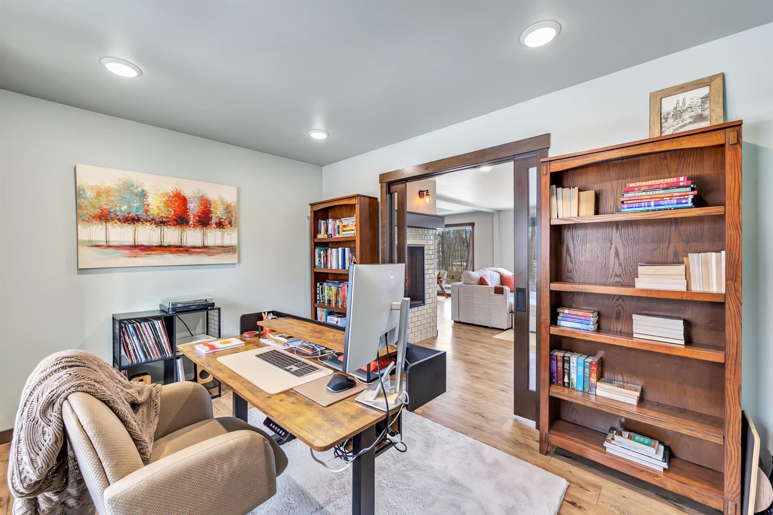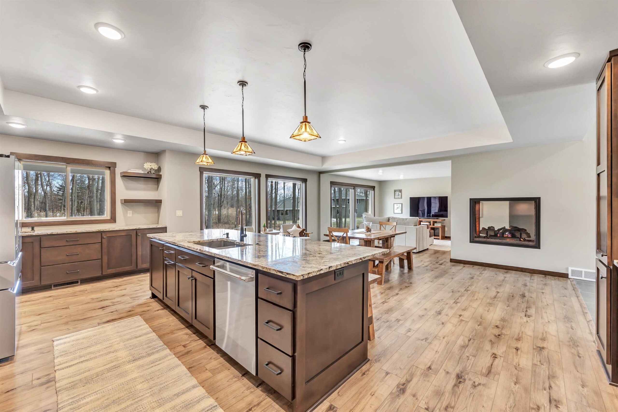 A rare offering in the sought-after Hunters Run subdivision in Suamico, this stunning home sits on a quiet cul de sac on a one-acre lot. Offering 3,592 sq ft, the open concept kitchen, dining and living area features a dual-sided fireplace and must-have finishes including a pot filler, large walk-in pantry and kitchen wet bar. The primary suite offers a spa-like bath with soaking tub, dual shower heads and walk-in closets. The home includes 2 bedrooms, 2 offices, 2.5 baths, main level laundry, all appliances included and a 3-stall garage. The expansive lower-level Family Room provides flexibility for future bedrooms. Enjoy the three-season room overlooking the woods, underground sprinklers and Hunters Run amenities including stocked ponds, private beach, courts and community events.