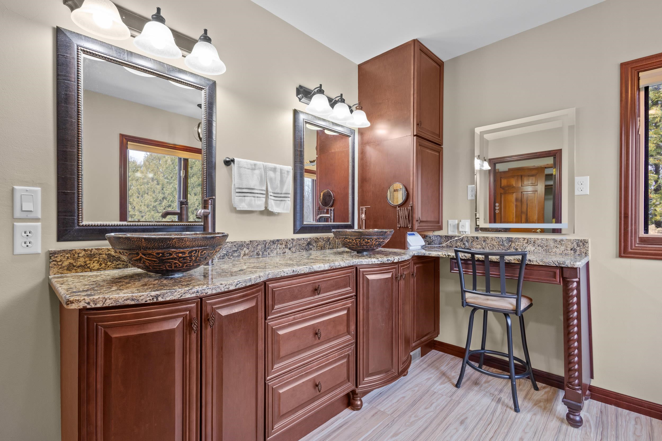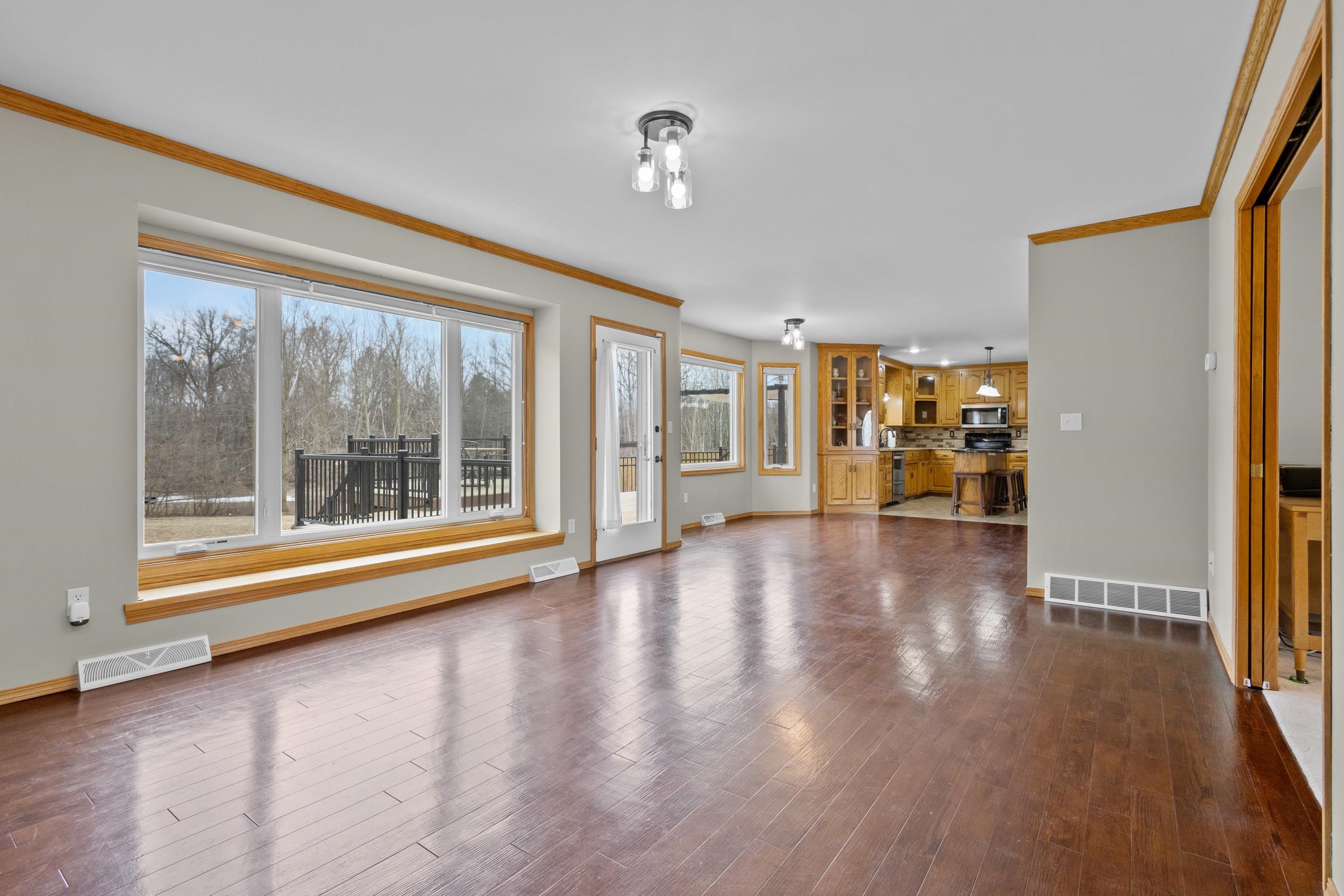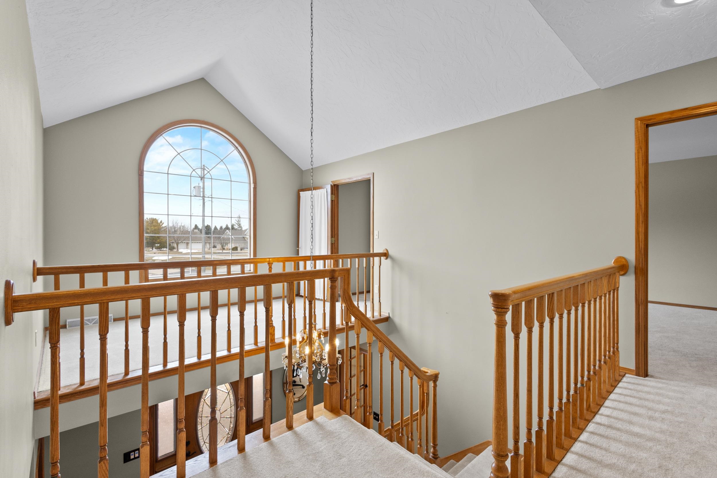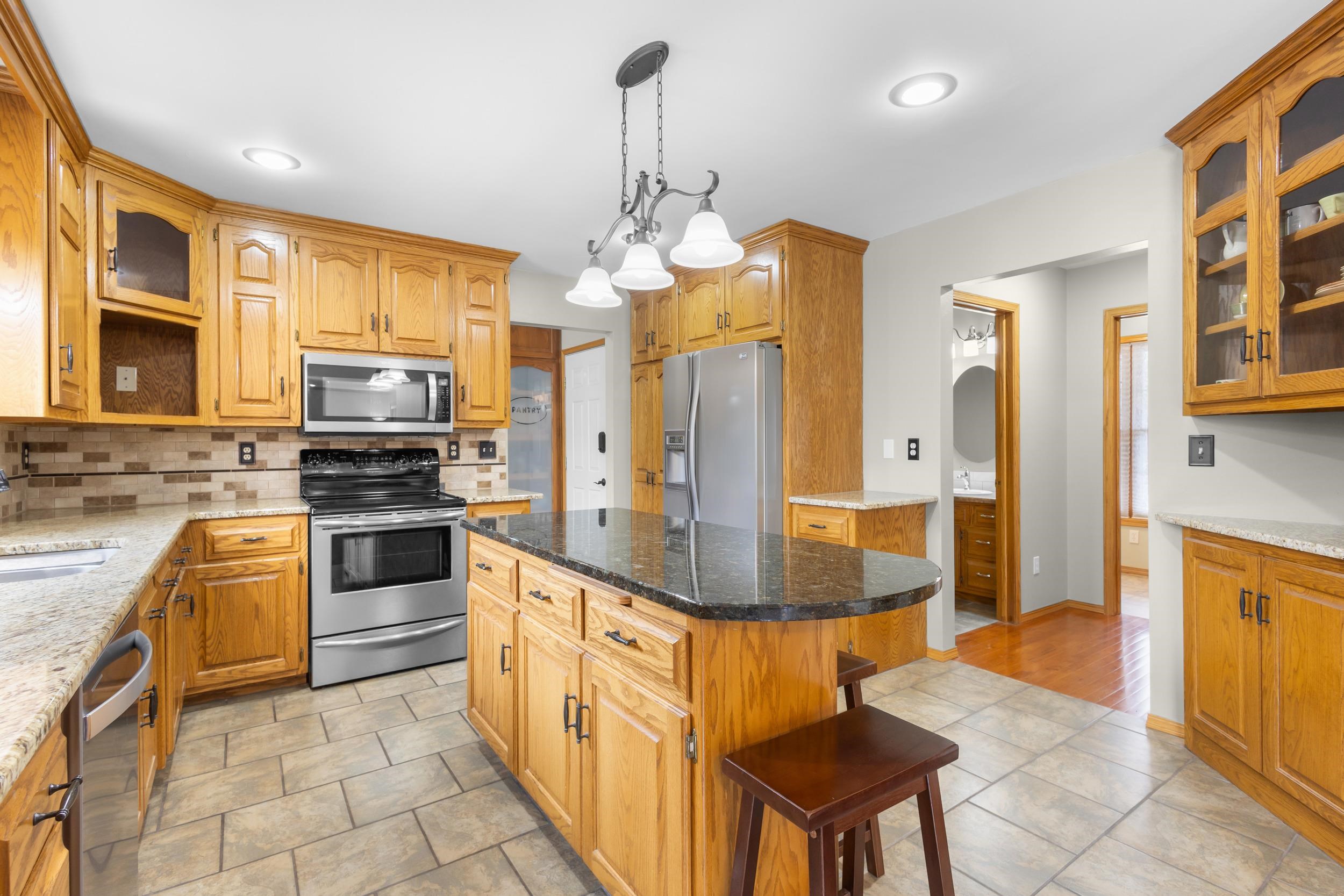 Location, Location, Location! Well kept large 2 story home located on approx. .93 of an acre. Large foyer with hardwood flooring leads to kitchen w/ pantry, appliances, granite counters and overlooks dining and living room making an open concept feel along with access to the multi tiered decking, pergola & awning, private wooded backyard w/ small creek & landscape pond. Mudroom off of the 3.5 stall garage, 1st floor laundry rm that includes washer & dryer, 1/2 bath & office w/ french doors. Upper level has new carpeting (2026) large primary suite, walk in closet, tiled shower & dble sinks & access to the 16x7 loft.2 other generous size bedrooms & full bath. Lower level is finished w/ family room, wet bar area, craft/office rm, 1/2 bath & storage room area. 48 Hr Binding acceptance