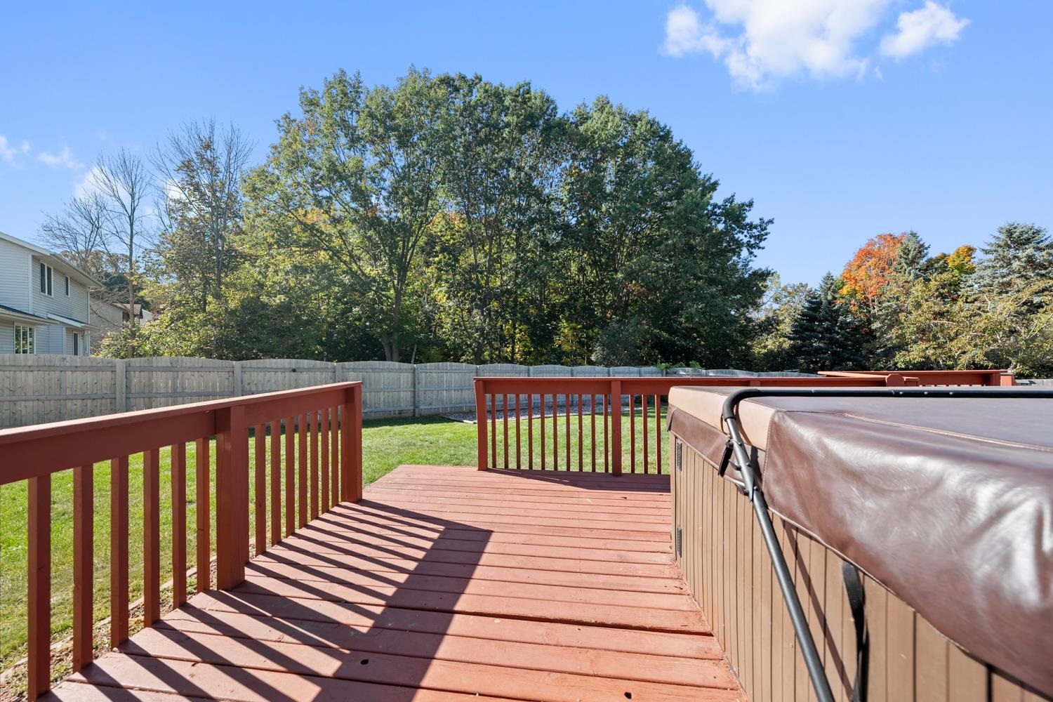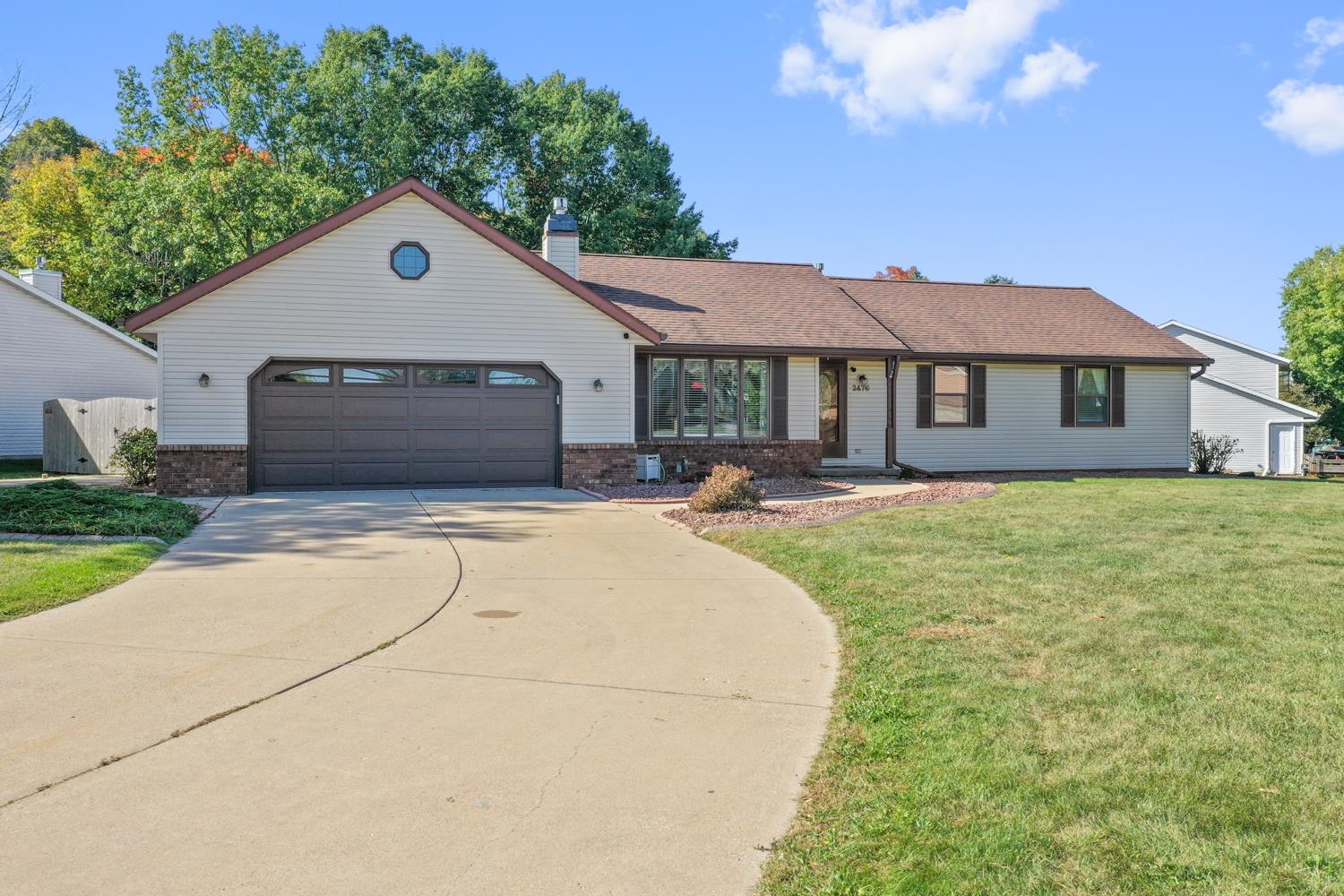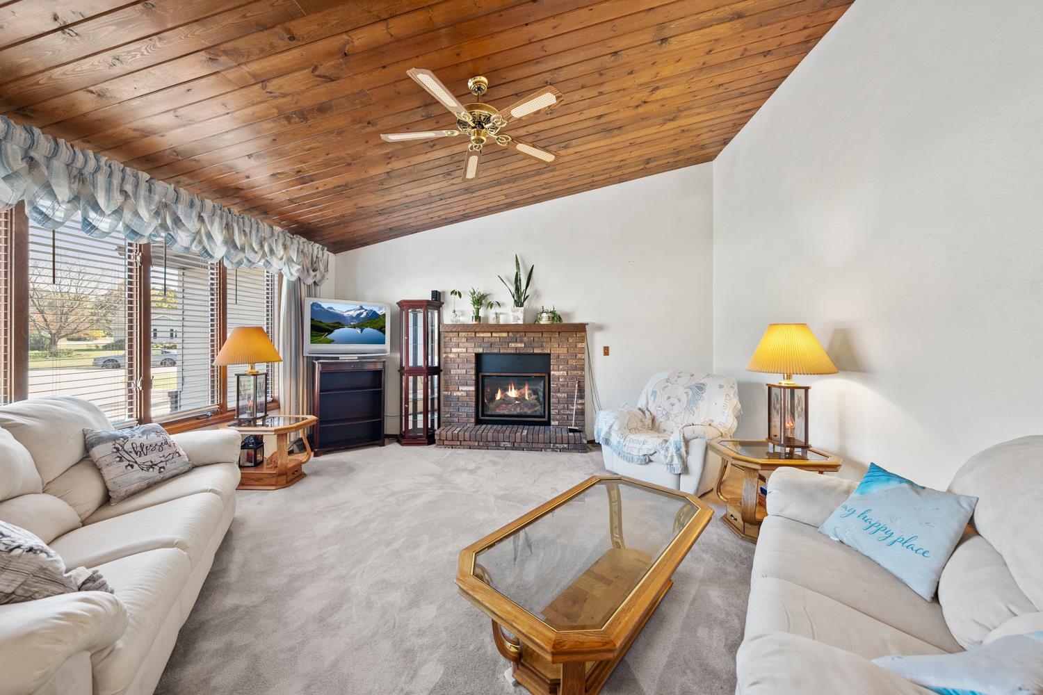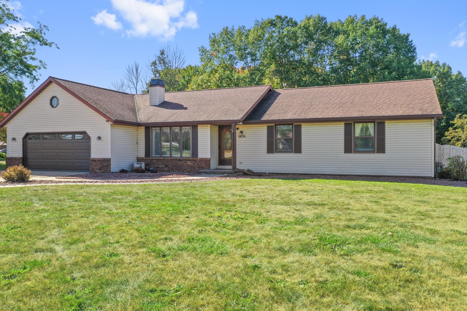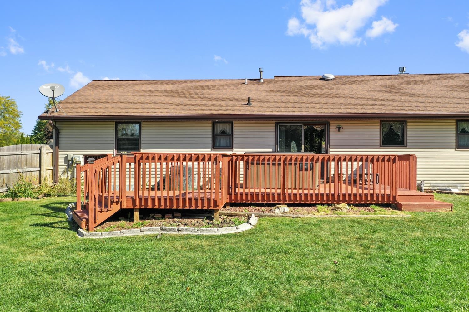 Charming 3BR/2.5BA ranch home on a nicely landscaped corner lot greets w/ sunken LR, cathedral knotty-pine ceiling & gas fireplace! Fully-equipped kitchen w/ suite of stainless-steel appliances, ample cabinetry, granite counters w/ buffet & pantry. Half-bath w/ 1st floor laundry includes washer+dryer! Sliding door opens from dining area to deck w/ hot-tub, fully-fenced yard w/ double swing gate ('24), shed, autumn blaze maple trees ('23) and bonus patio in side-yard. Primary bedroom w/ twin closets. Lower level offers 750+sqft of add'l finished space composed of a large fam-room, office, and 2nd full bath. WH 2025, central A/C serviced 2024. Offers due 10/5/25 at 8 pm; Reviewed 10/6/25.