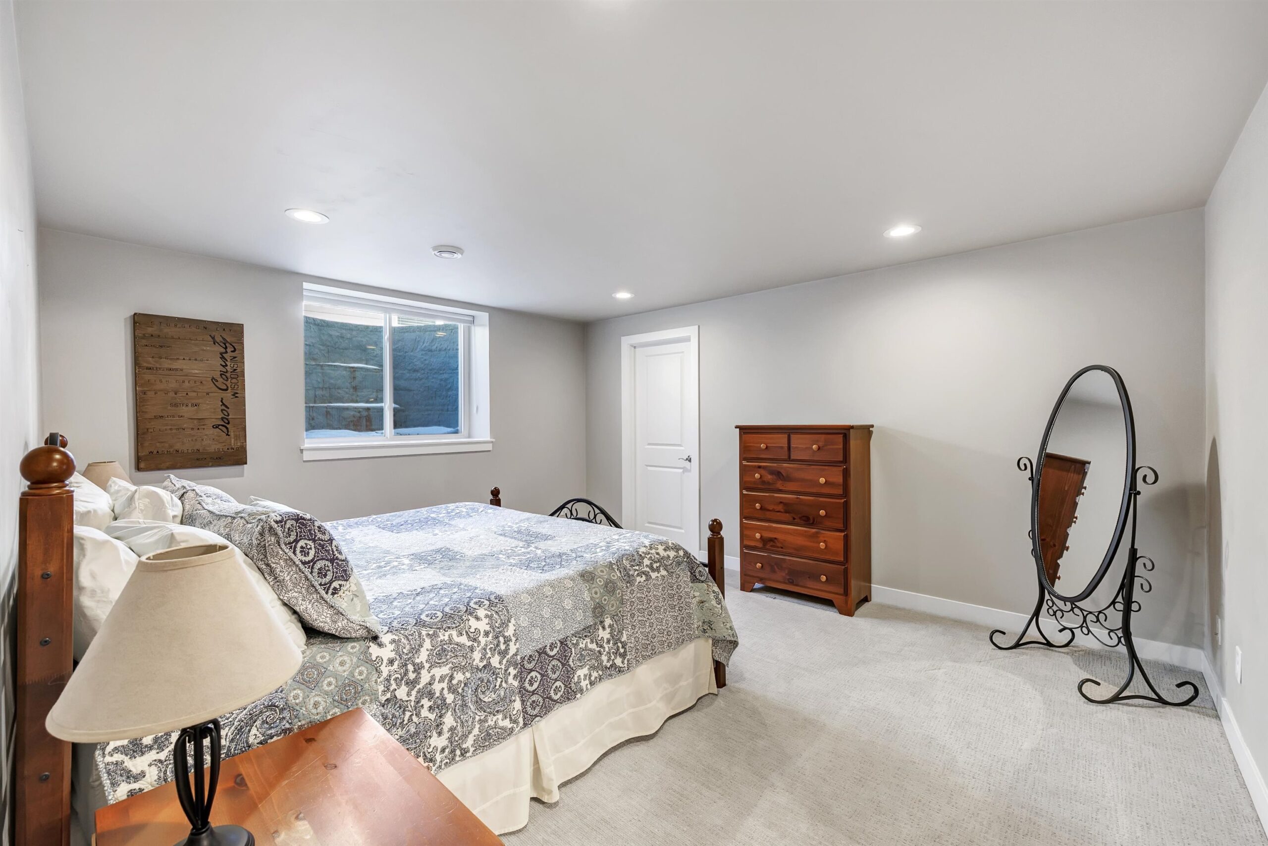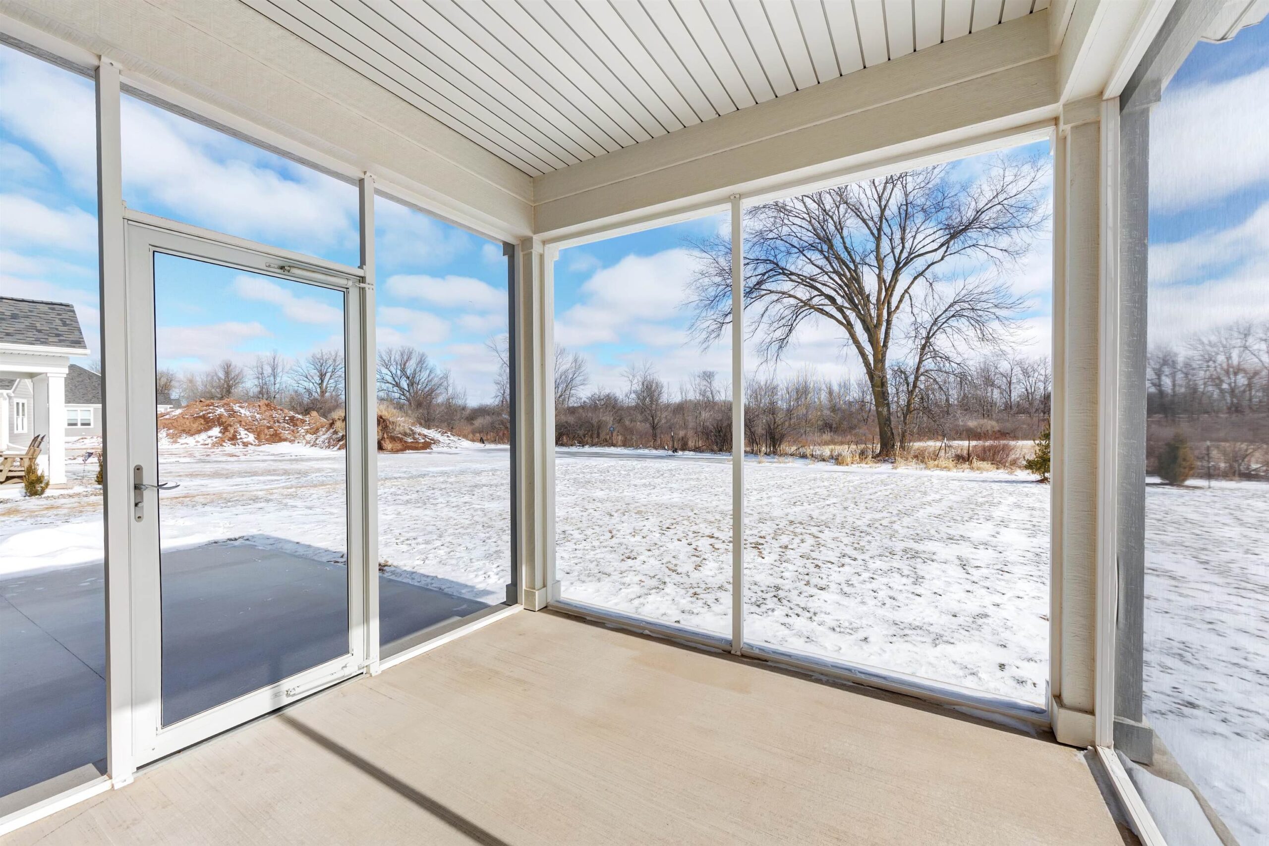 Gorgeous custom home in Willow Glen, Green Bay offering maintenance free living with lawn care & snow removal included plus clubhouse, pool & fitness center. Soaring 12 ft ceilings, large foyer & open concept design. Spacious dining area & stunning kitchen with huge island, quartz tops, subway tile, gas range, stainless hood, beverage fridge & walk in pantry. Living room features stacked stone FP with built ins. Sunroom opens to covered, screened patio. Expansive primary suite with dual section WIC & spa like bath. Finished LL with additional bedroom, rec room w/ egress windows, full bath & great storage. Wood floors, white trim, solid core doors, tons of upgrades!