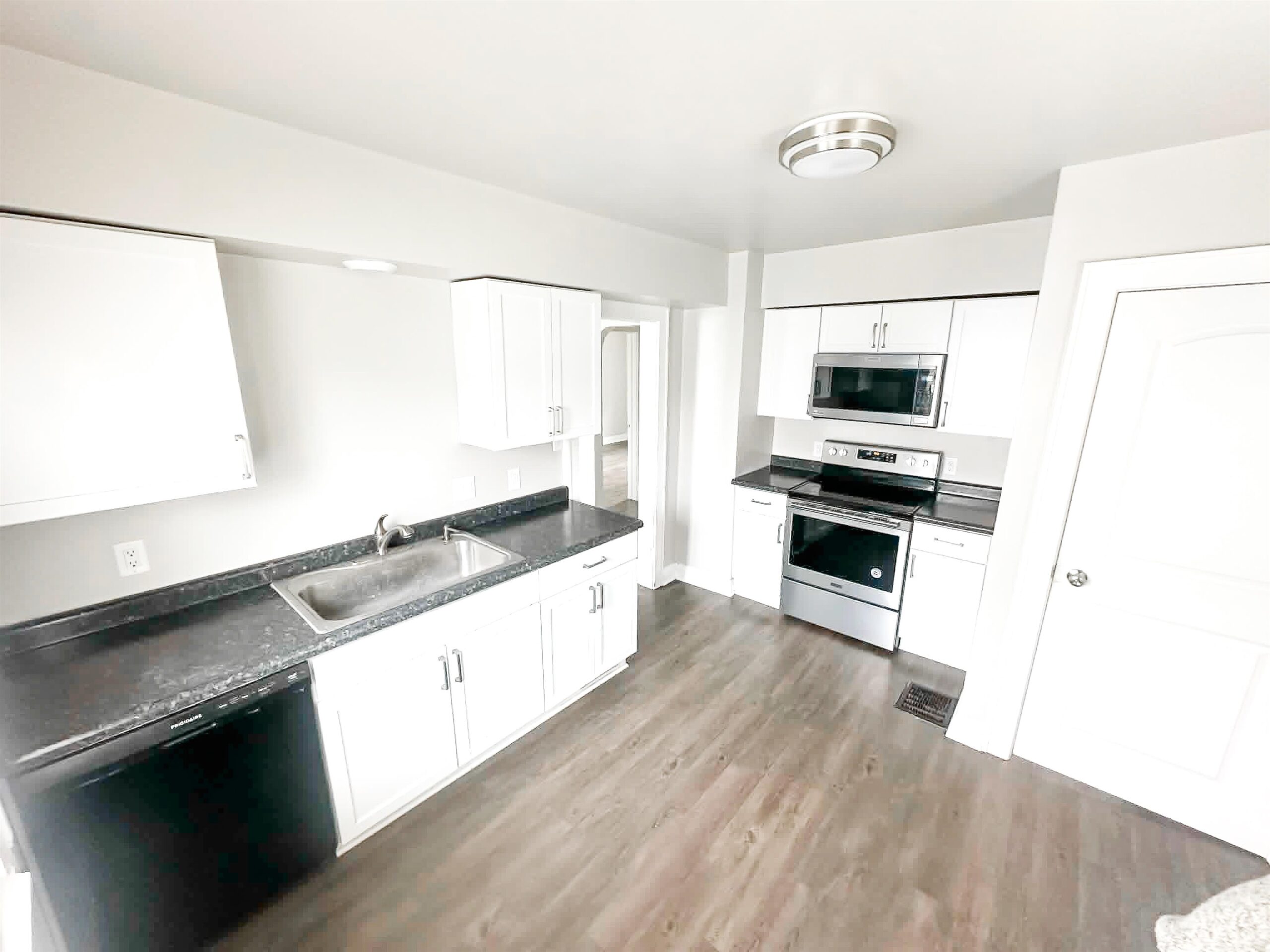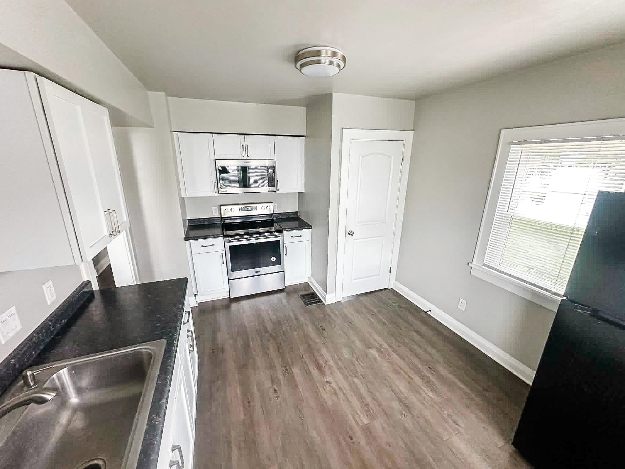 Stove, Refrigerator, Microwave, and dishwasher are included.