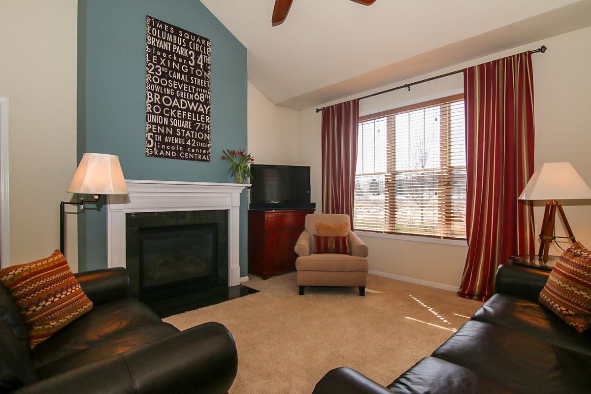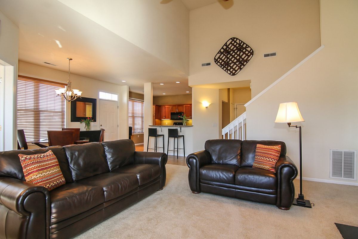 Gorgeous end unit condo with tons of upgrades. Home has beautiful kitchen w/ quartz countertops, upgraded cabinetry, stainless appliances and tile floor. Living room features painted wood trim, vaulted ceiling & a dramatic fireplace. Light filled sunroom overlooks green space and has vaulted ceilings. Main floor master suite with walk in closet, jetted tub and double vanity. 1st floor laundry. 2nd floor features another full bath and bedroom. Huge garage with great storage