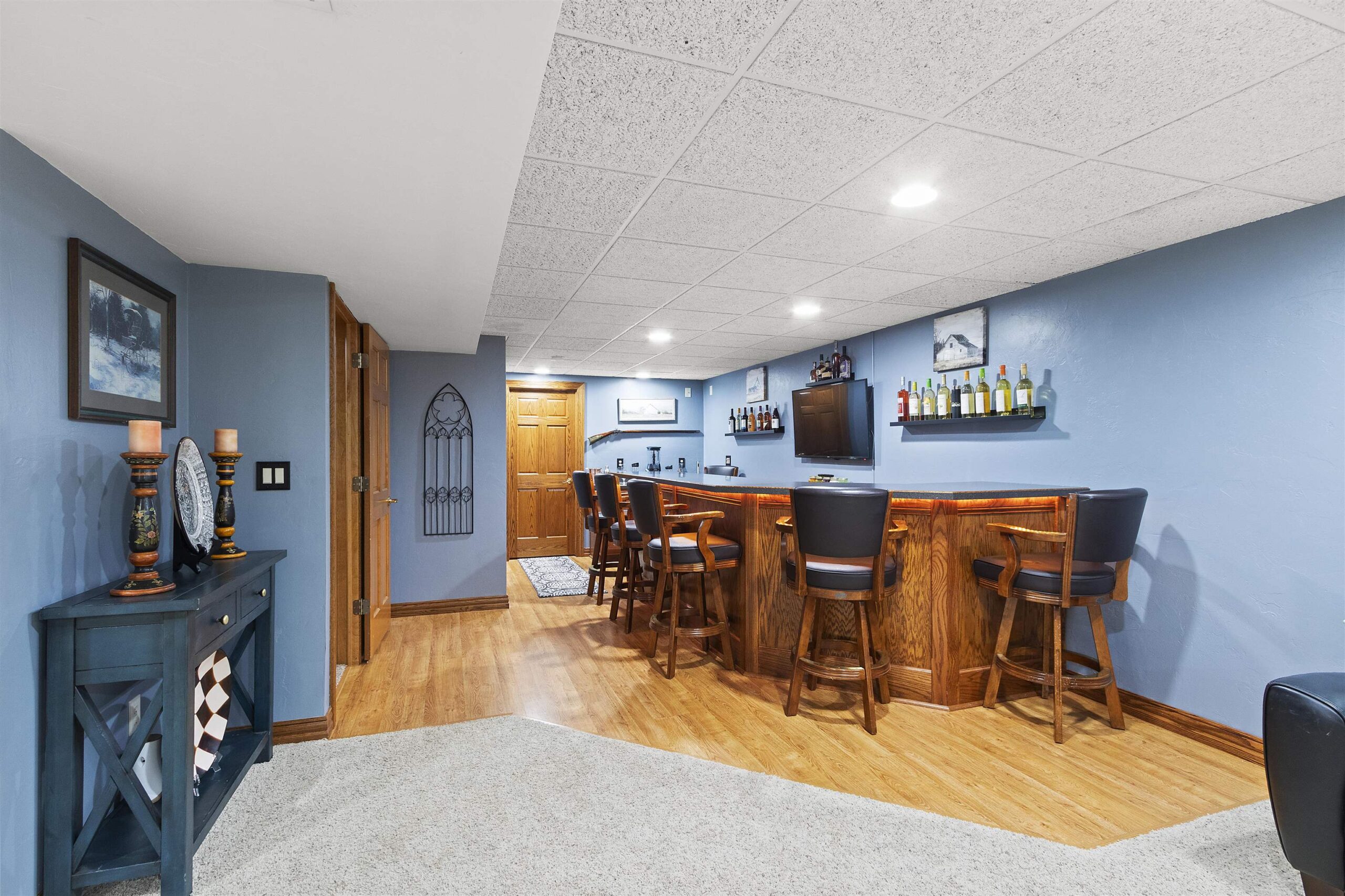 Move-in ready 3-bedroom, 3-bath home featuring modern updates & a 3.5 car garage! The main level features new hardwood flooring (2025) throughout the living room, kitchen, dining area, and primary bedroom, along with fresh paint throughout the entire home, creating a bright and welcoming feel. The kitchen has been updated with new quartz countertops, decorative backsplash, and new appliances. The primary suite provides a comfortable retreat and includes custom closet organizers in the primary bath. The finished lower level is perfect for entertaining, featuring a family room with corner gas fireplace, wet bar area, half bath, office and large storage areas. See Update List for more details!