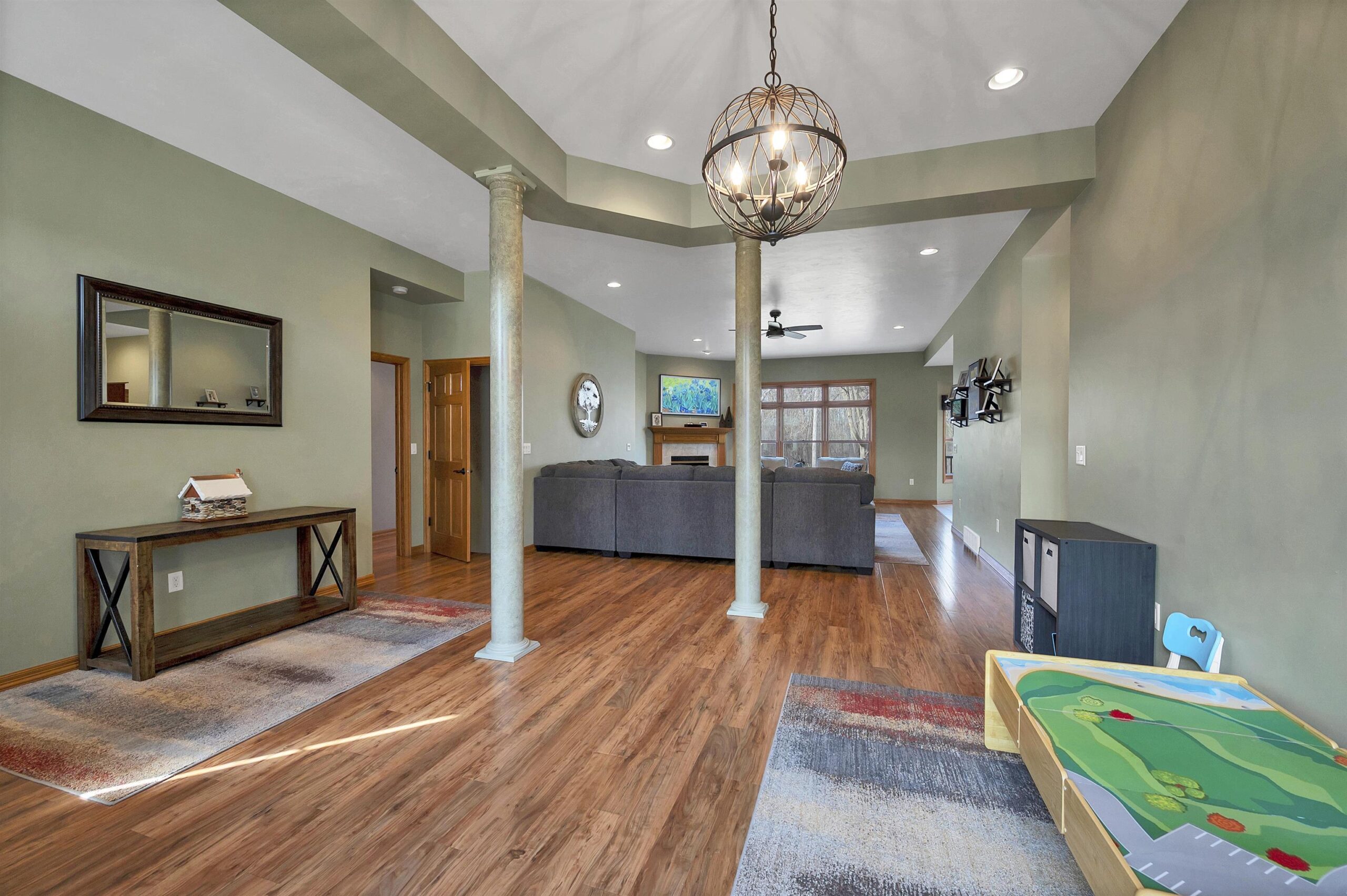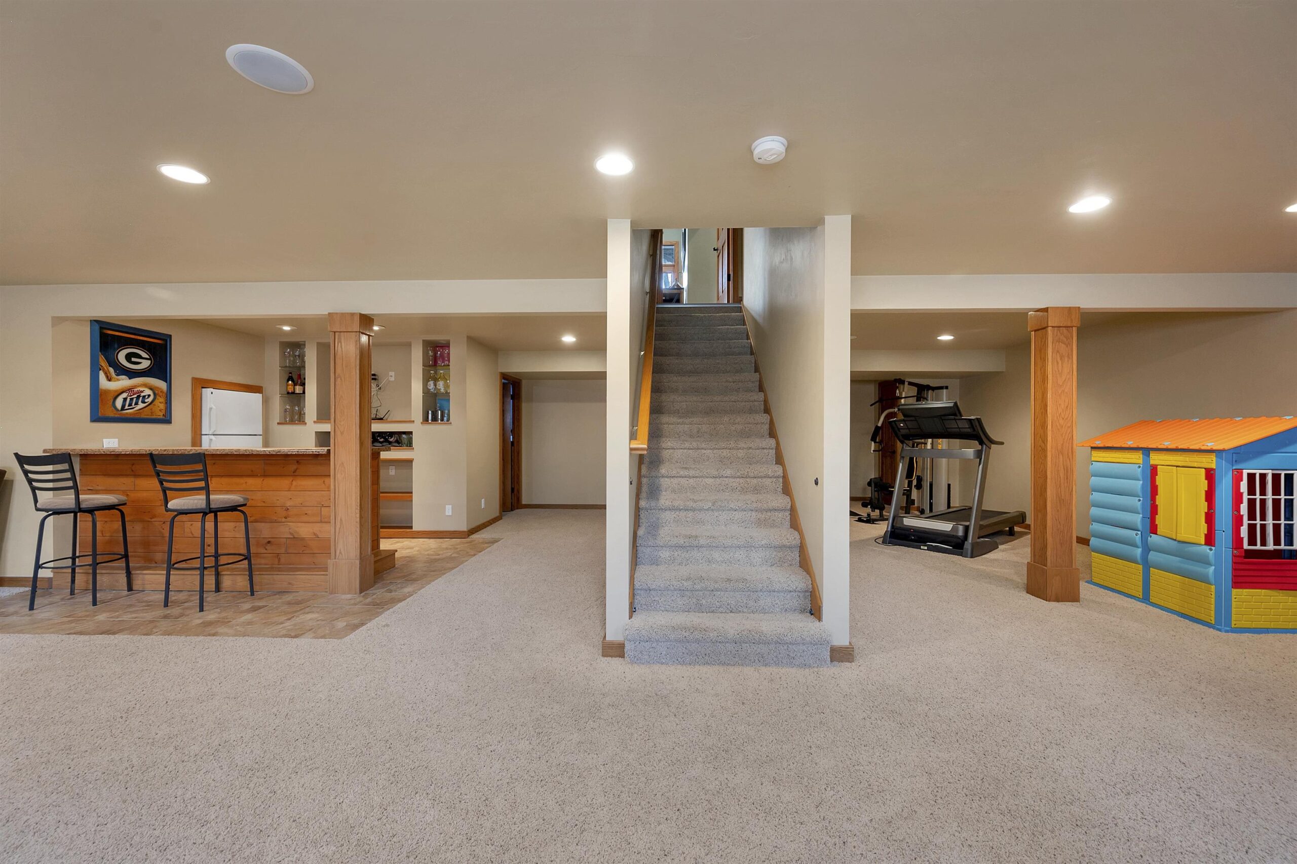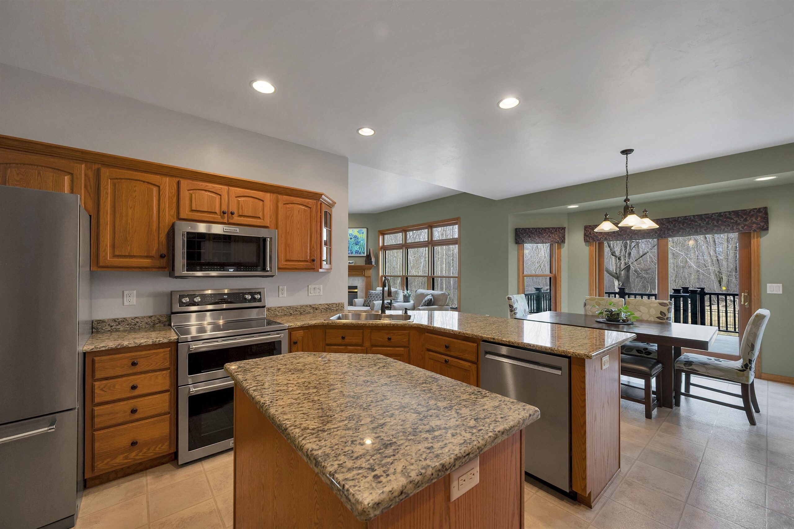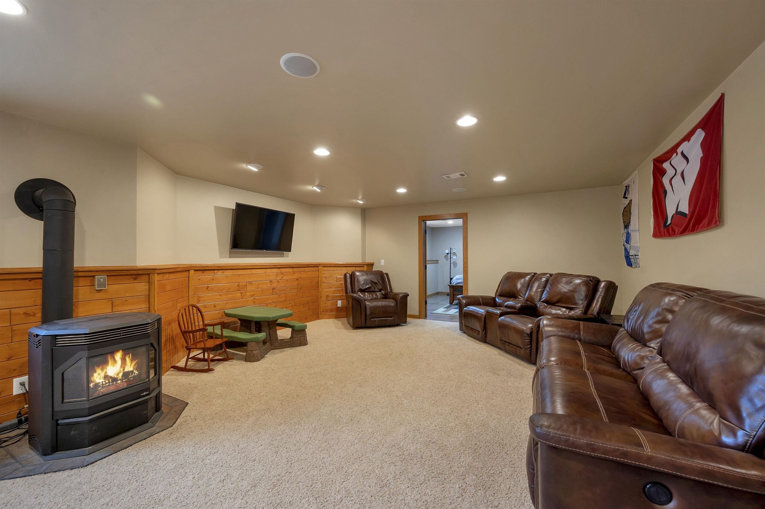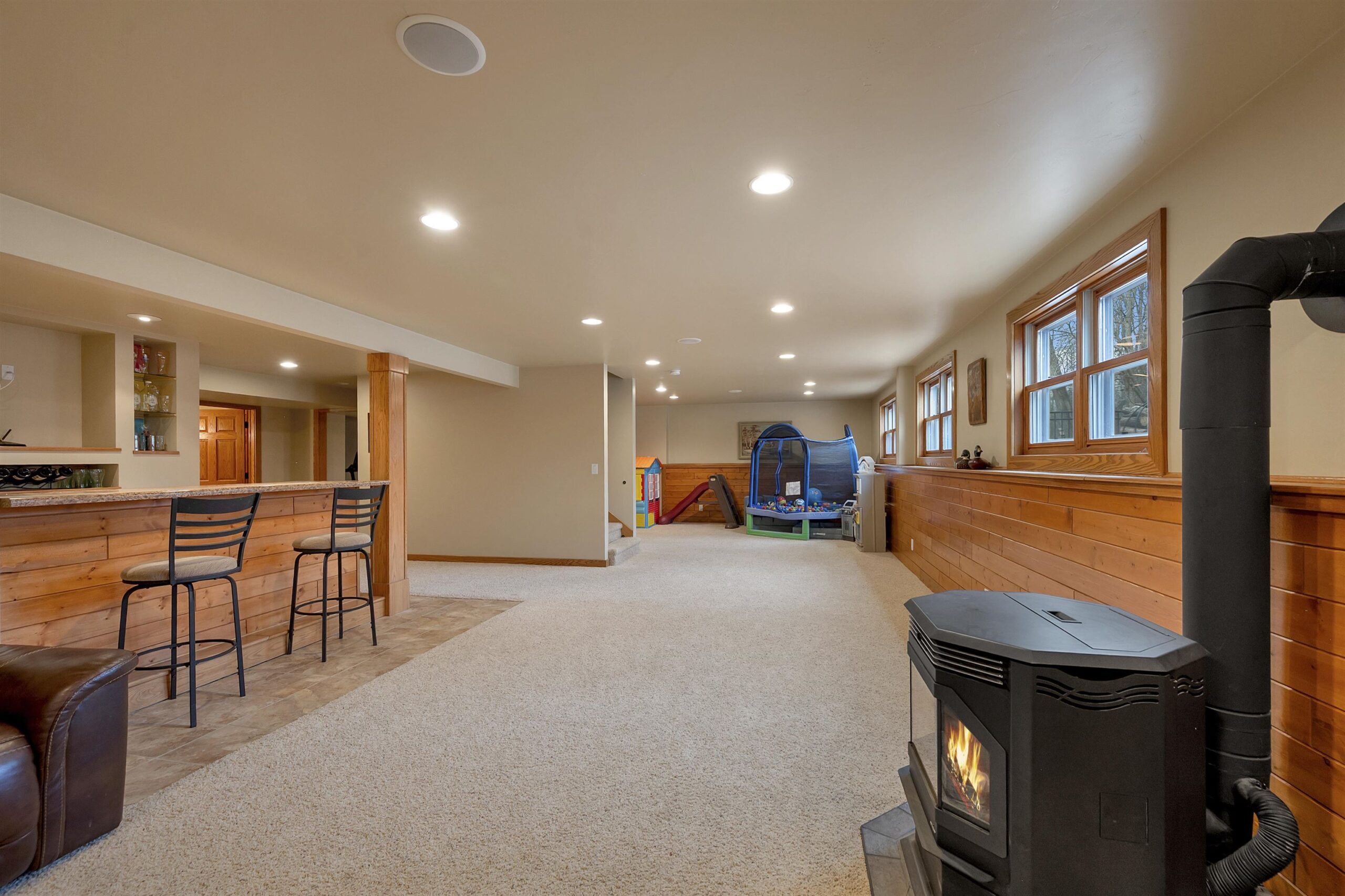 Beautiful ranch home in Suamico set on a large private lot with tons of space. This spacious home features a finished bonus room above the oversized 3-stall garage and convenient garage access to the expansive finished basement complete with a bar area, additional bedroom, full bathroom, and cozy pellet stove for cold winter nights. The primary suite offers a walk-in closet and a fully renovated bathroom. The open concept great room, kitchen, and dining area create the perfect space for entertaining or relaxing at home. Step outside to the deck and patio overlooking the large fenced backyard, ideal for enjoying the peaceful setting. Numerous updates include a new roof in 2020, newer kitchen appliances, new furnace in 2021, and more. This home offers space, and comfort all in one!