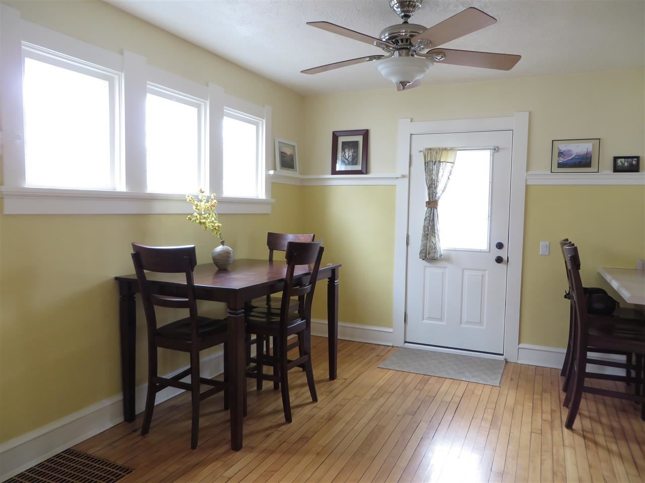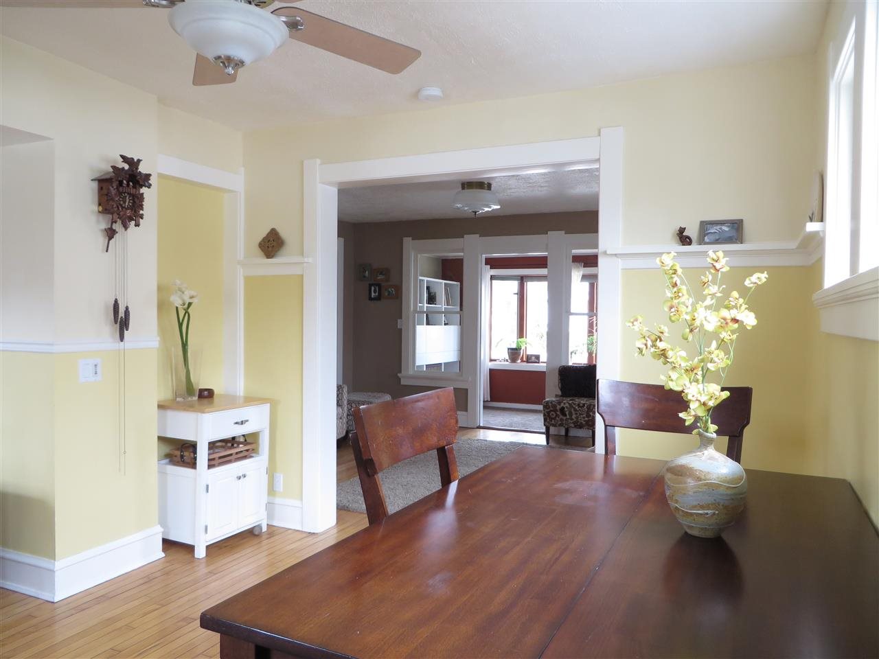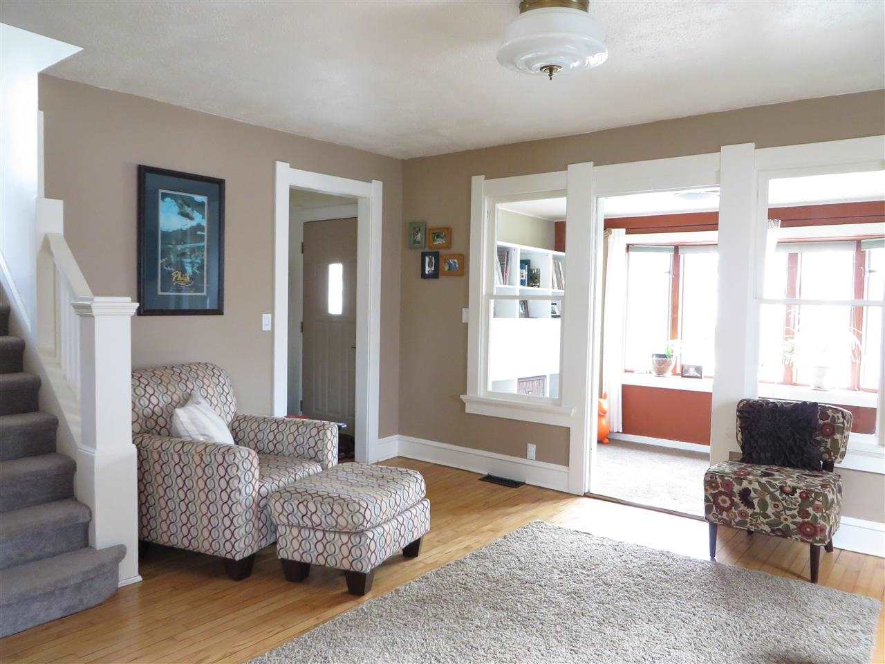 Sunny & charming bungalow with original character. Open layout on the main floor with original maple floors, dining room and kitchen with breakfast bar. Spacious inviting living room that leads to sun filled den. 1/2 bath on main floor. Second floor with 2 bedrooms, large closets and updated full bath. Large fenced in backyard with deck, brick patio and over sized 1 ½ car garage. Newer windows, furnace ('10) and water heater ('09).