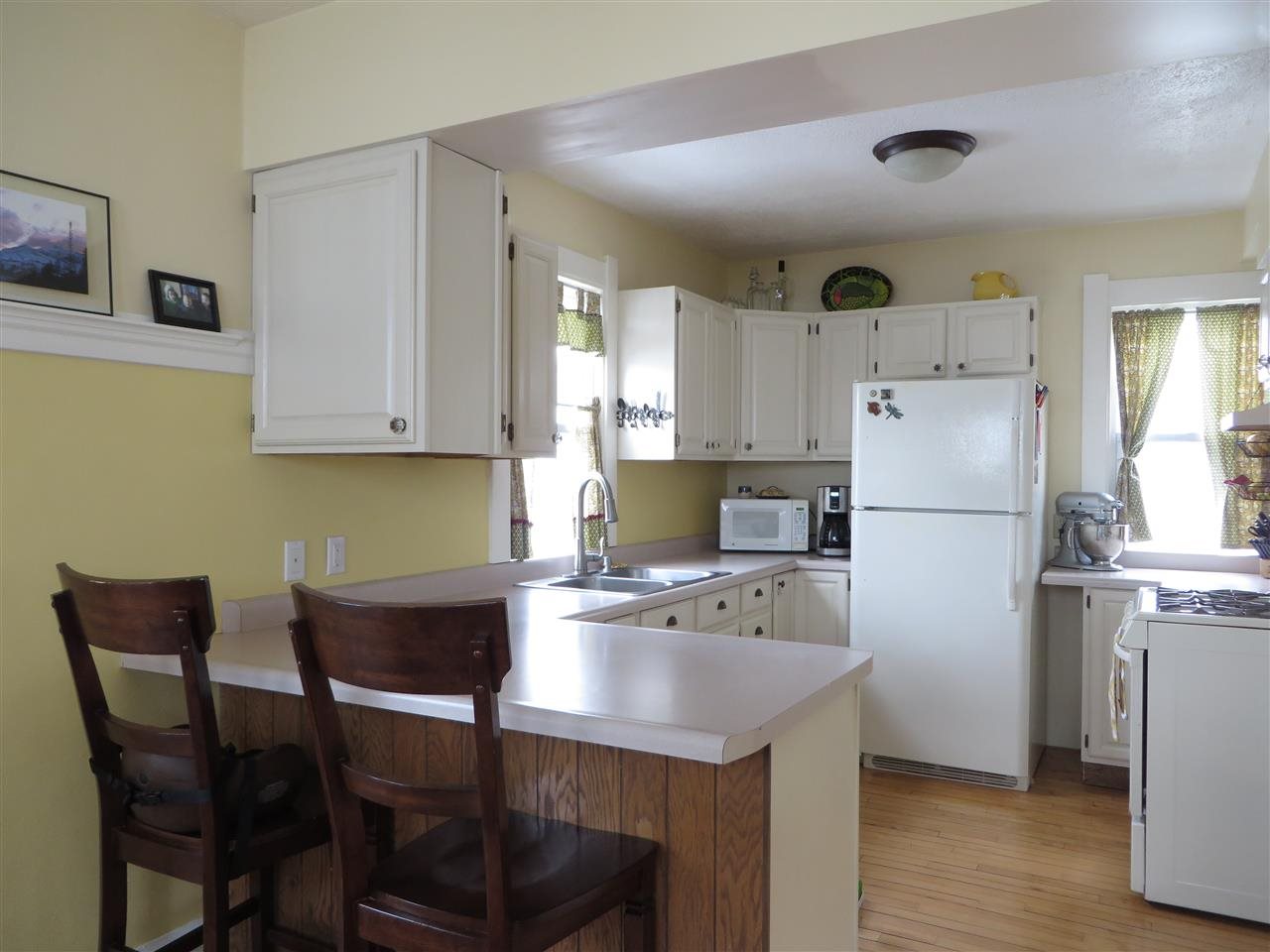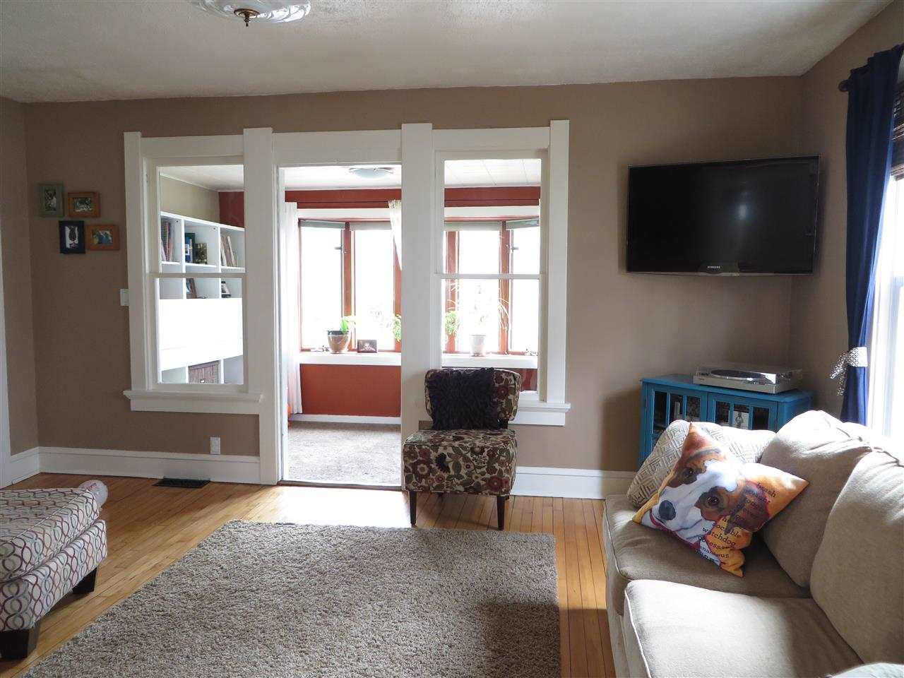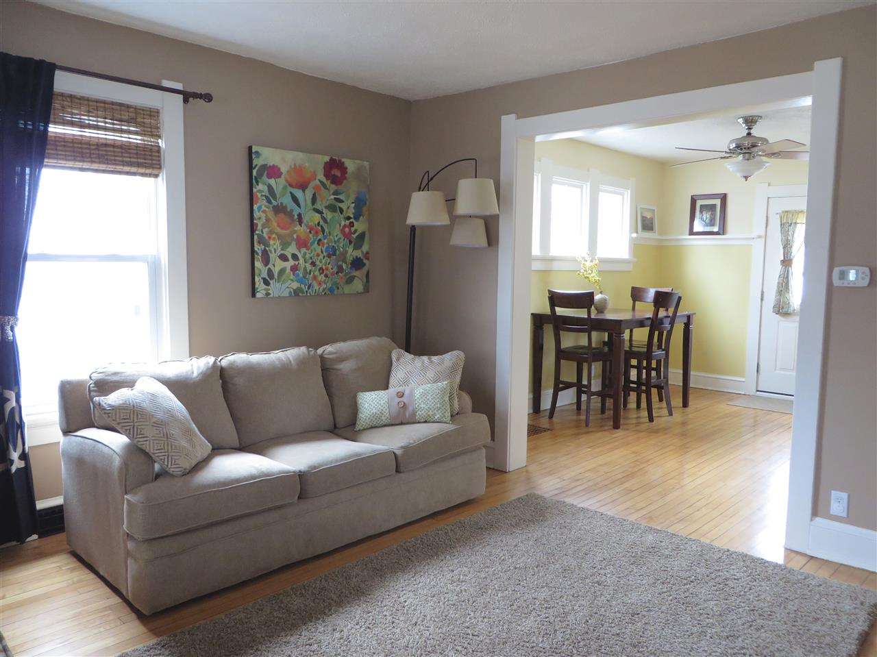 Sunny & charming bungalow with original character. Open layout on the main floor with original maple floors, dining room and kitchen with breakfast bar. Spacious inviting living room that leads to sun filled den. 1/2 bath on main floor. Second floor with 2 bedrooms, large closets and updated full bath. Large fenced in backyard with deck, brick patio and over sized 1 ½ car garage. Newer windows, furnace ('10) and water heater ('09).