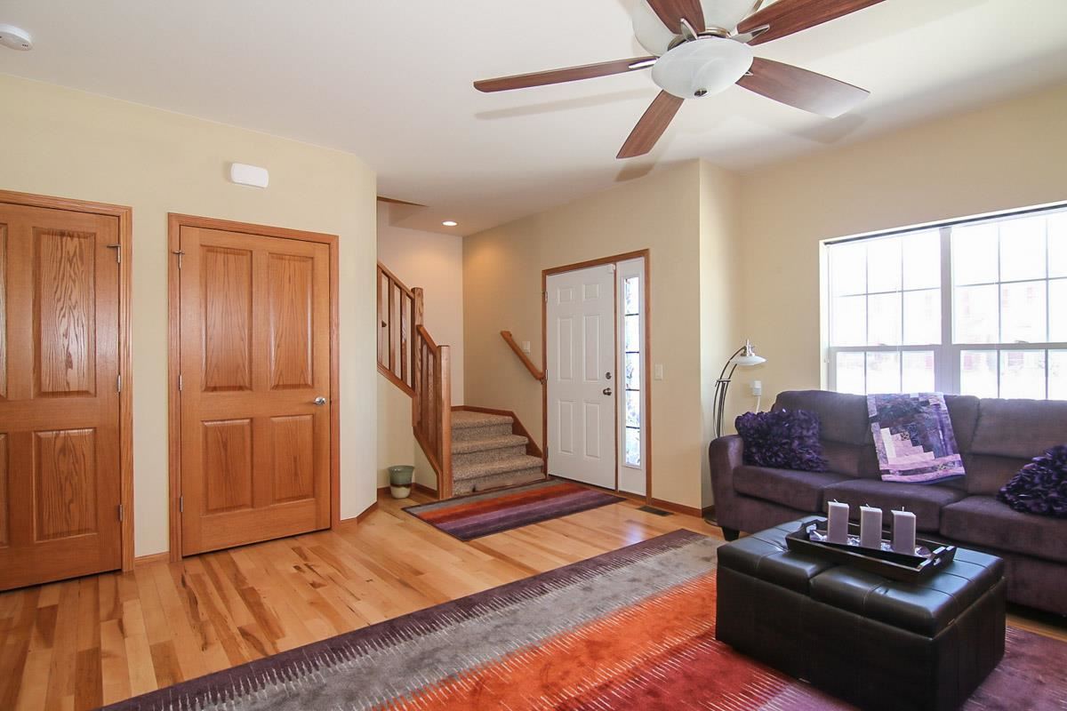One owner,end unit condo w/ private entrance close to shopping & entertainment! The 9' ceilings & wide hallways give an extra spacious & luxurious feel to this home. The Owner has updated floors (Hardwood Maple), bathroom & kitchen fixtures/hardware (Kohler), & lighting. The LL is exposed & can be finished to add a 4th bedroom & rec room. It's plumbed for another full bath. Other features include SS appliances, 2nd floor laundry hookups, large insulated 2 car attached garage & private patio . FHA approved.