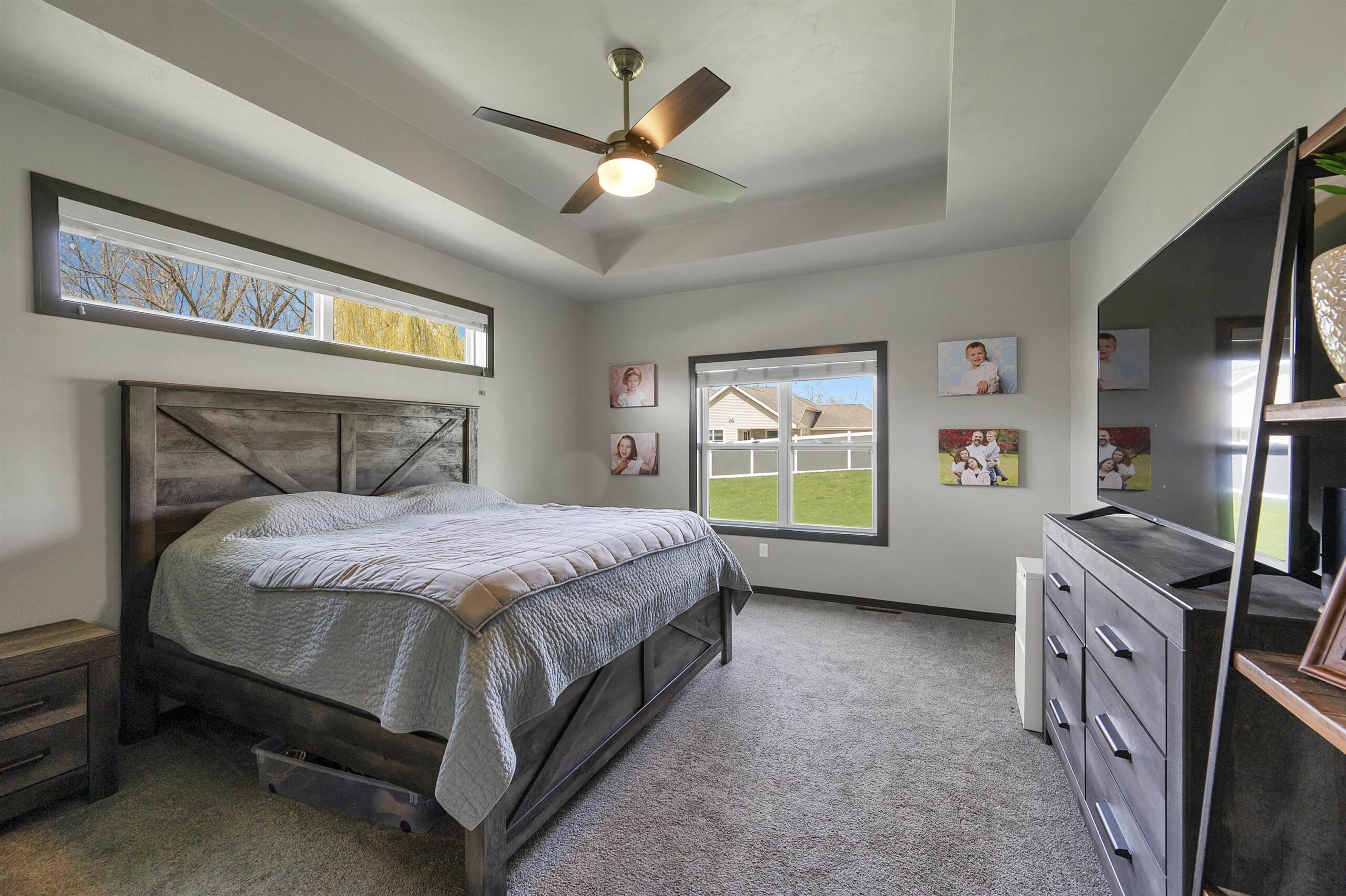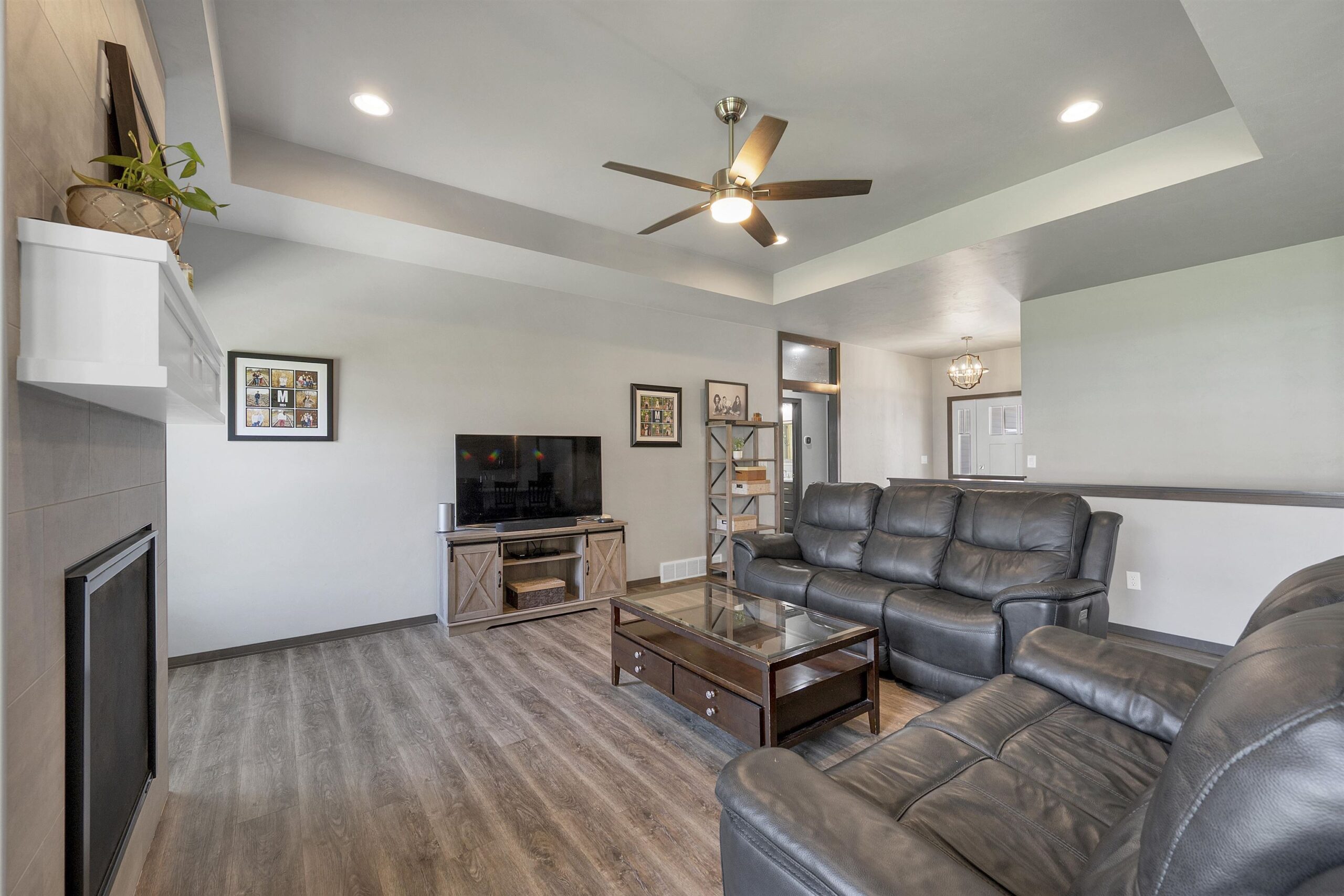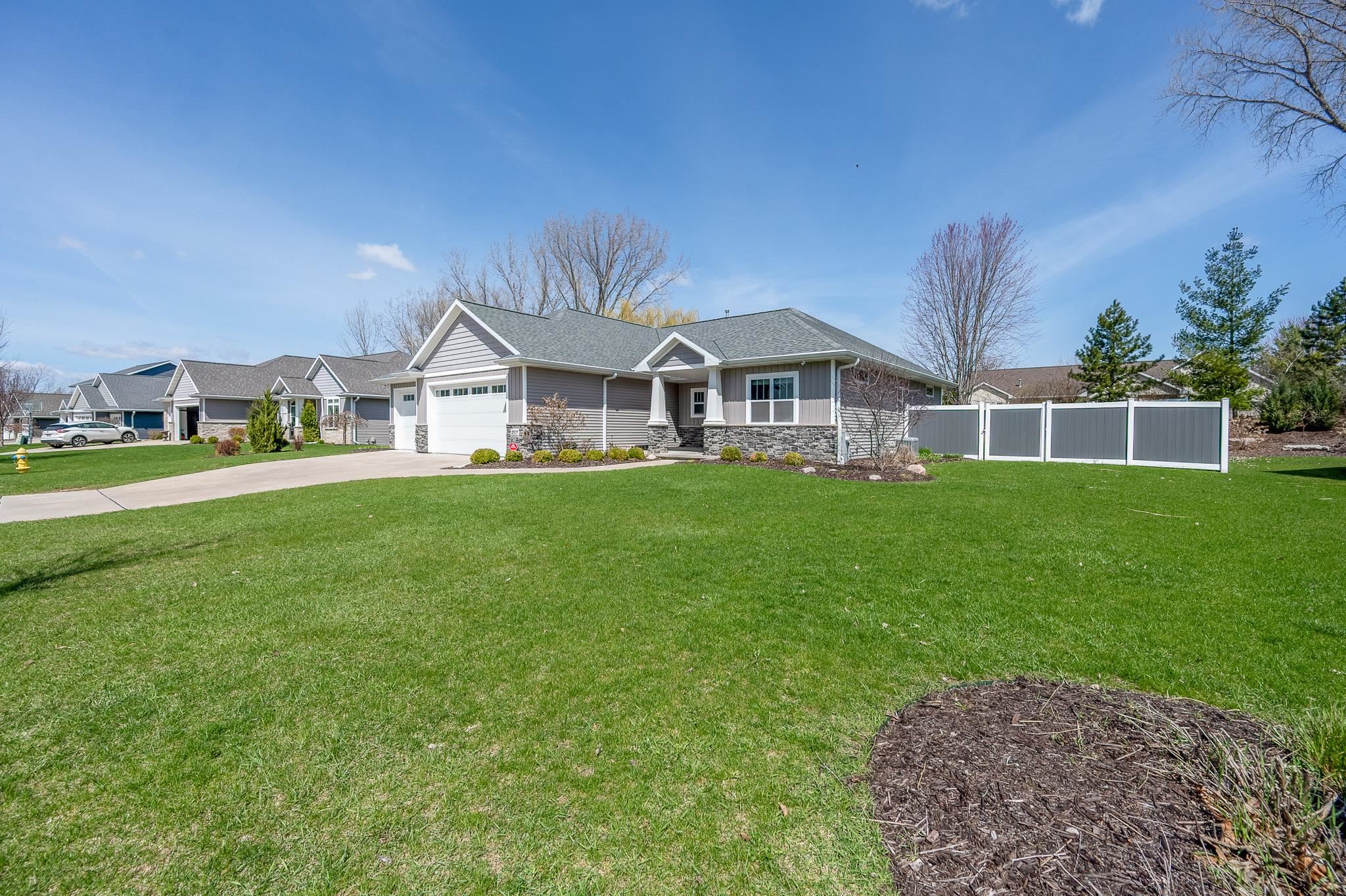Beautifully designed ranch set on a spacious lot offering perfect blend of style & function. An open concept kitchen is a true centerpiece, with custom cabinetry, quartz countertops, tile backsplash, a walk in pantry, and sleek black stainless steel appliances. Natural light fills dining area with easy access to the patio and fully fenced backyard. The welcoming living room showcases a tray ceiling and cozy fireplace. The primary suite is a private retreat with a walk-in closet and well appointed bath complete with dual sinks, quartz surfaces, and a tiled shower. New fully finished lower level expands your living space with two additional bedrooms, a full bath, spacious rec room ideal for entertaining or hosting guests. A move-in ready home that truly checks every box. 48 hrs binding accpt