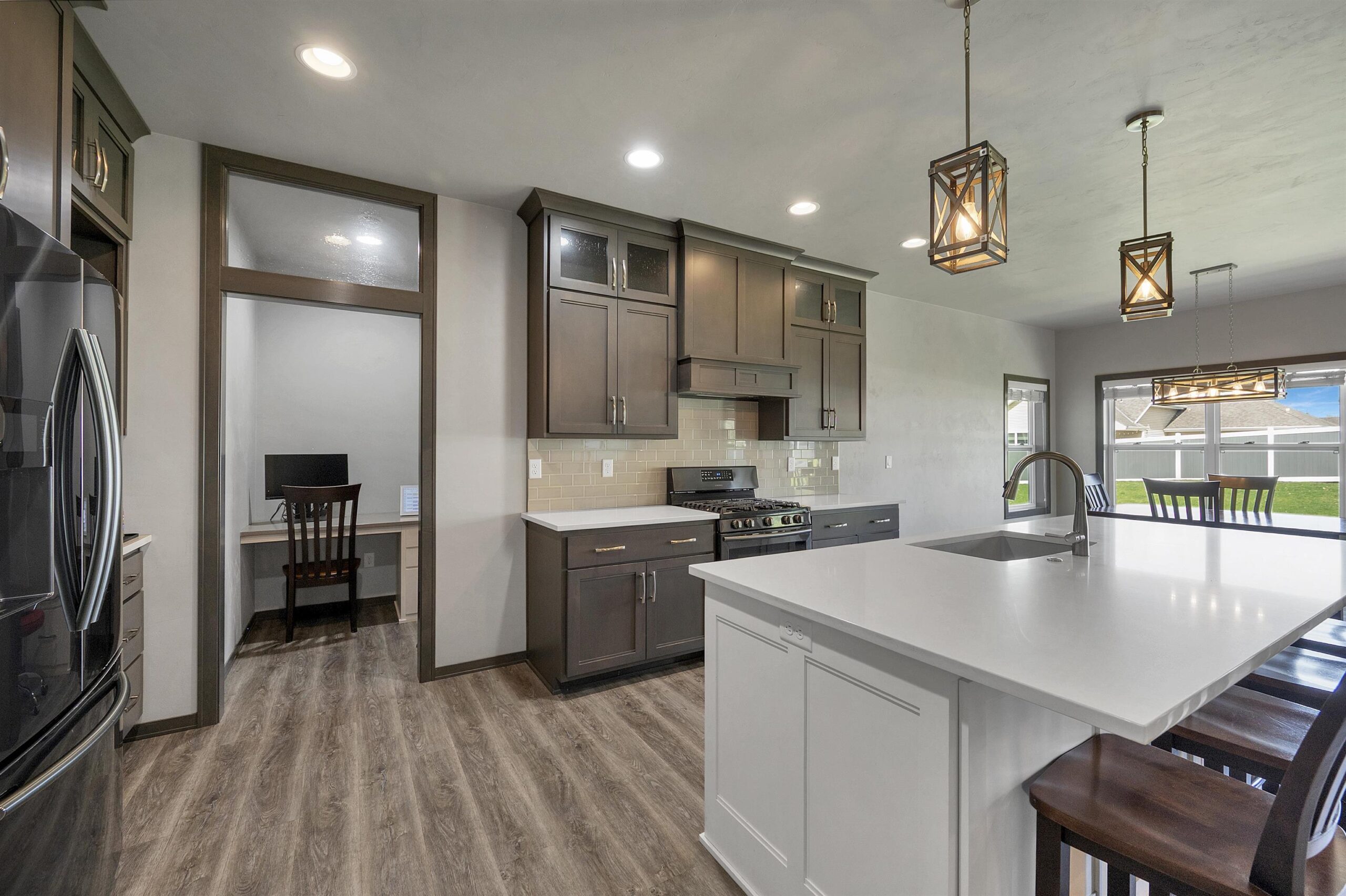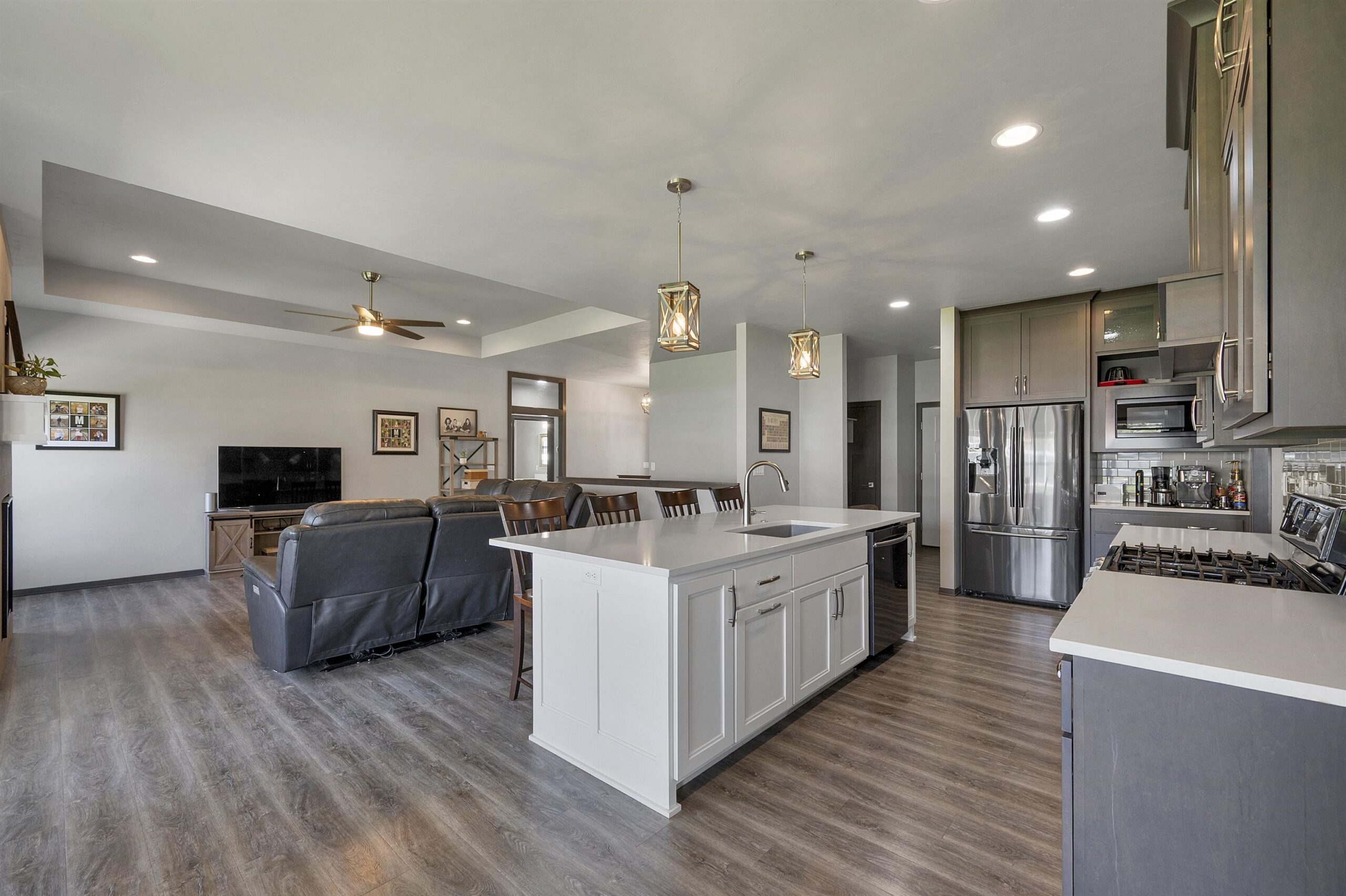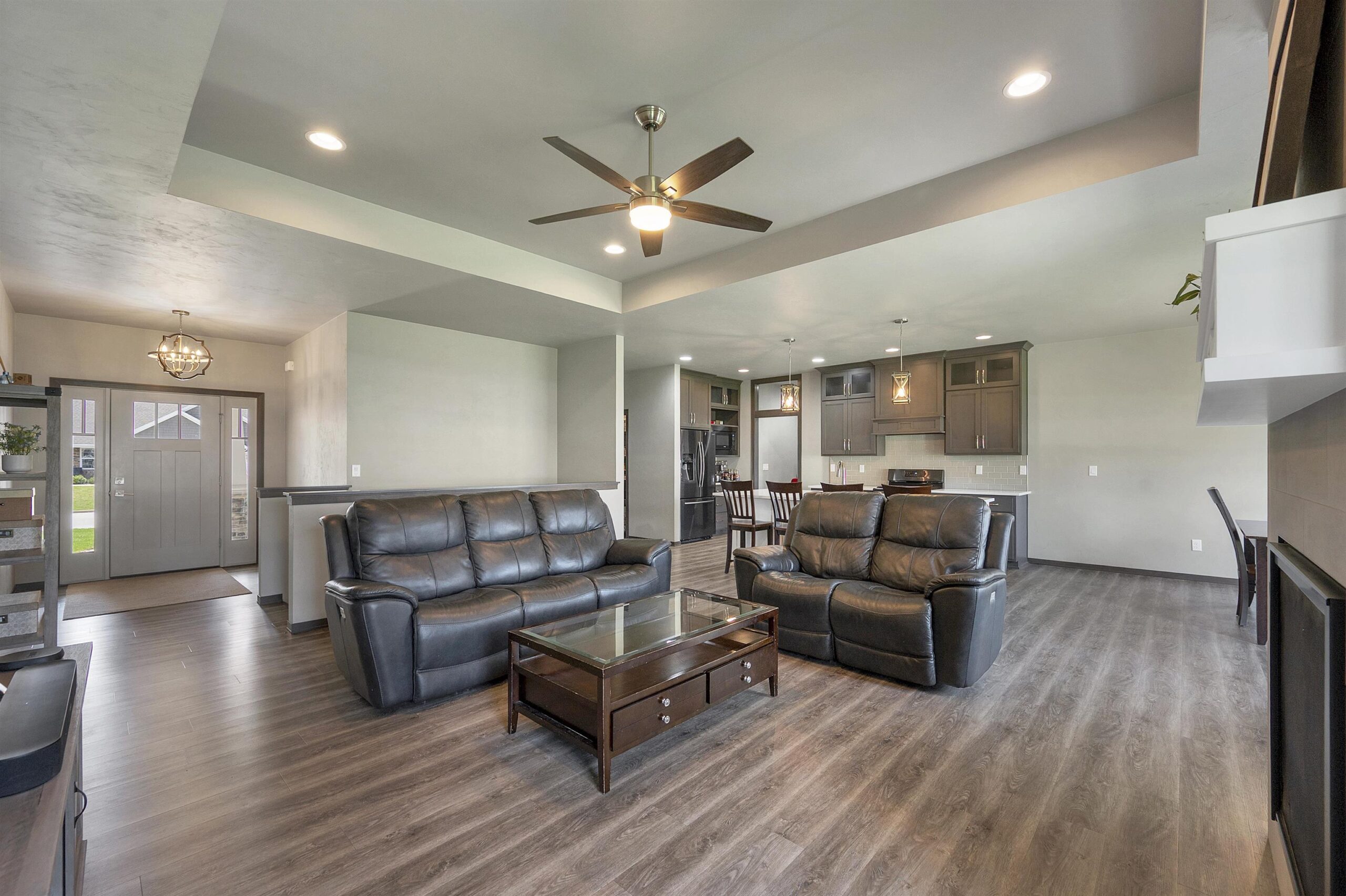 Beautifully designed ranch set on a spacious lot offering perfect blend of style & function. An open concept kitchen is a true centerpiece, with custom cabinetry, quartz countertops, tile backsplash, a walk in pantry, and sleek black stainless steel appliances. Natural light fills dining area with easy access to the patio and fully fenced backyard. The welcoming living room showcases a tray ceiling and cozy fireplace. The primary suite is a private retreat with a walk-in closet and well appointed bath complete with dual sinks, quartz surfaces, and a tiled shower. New fully finished lower level expands your living space with two additional bedrooms, a full bath, spacious rec room ideal for entertaining or hosting guests. A move-in ready home that truly checks every box. 48 hrs binding accpt