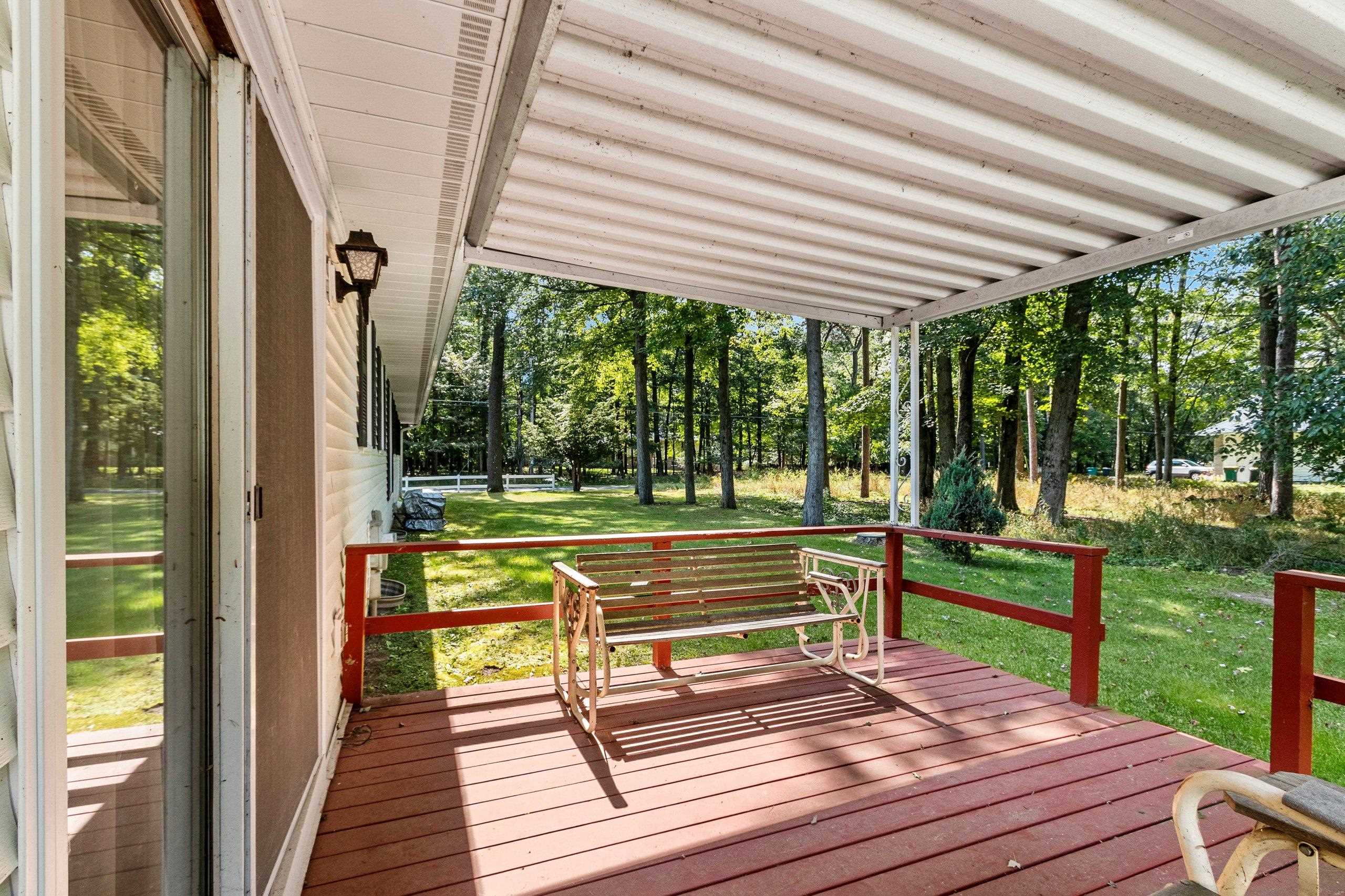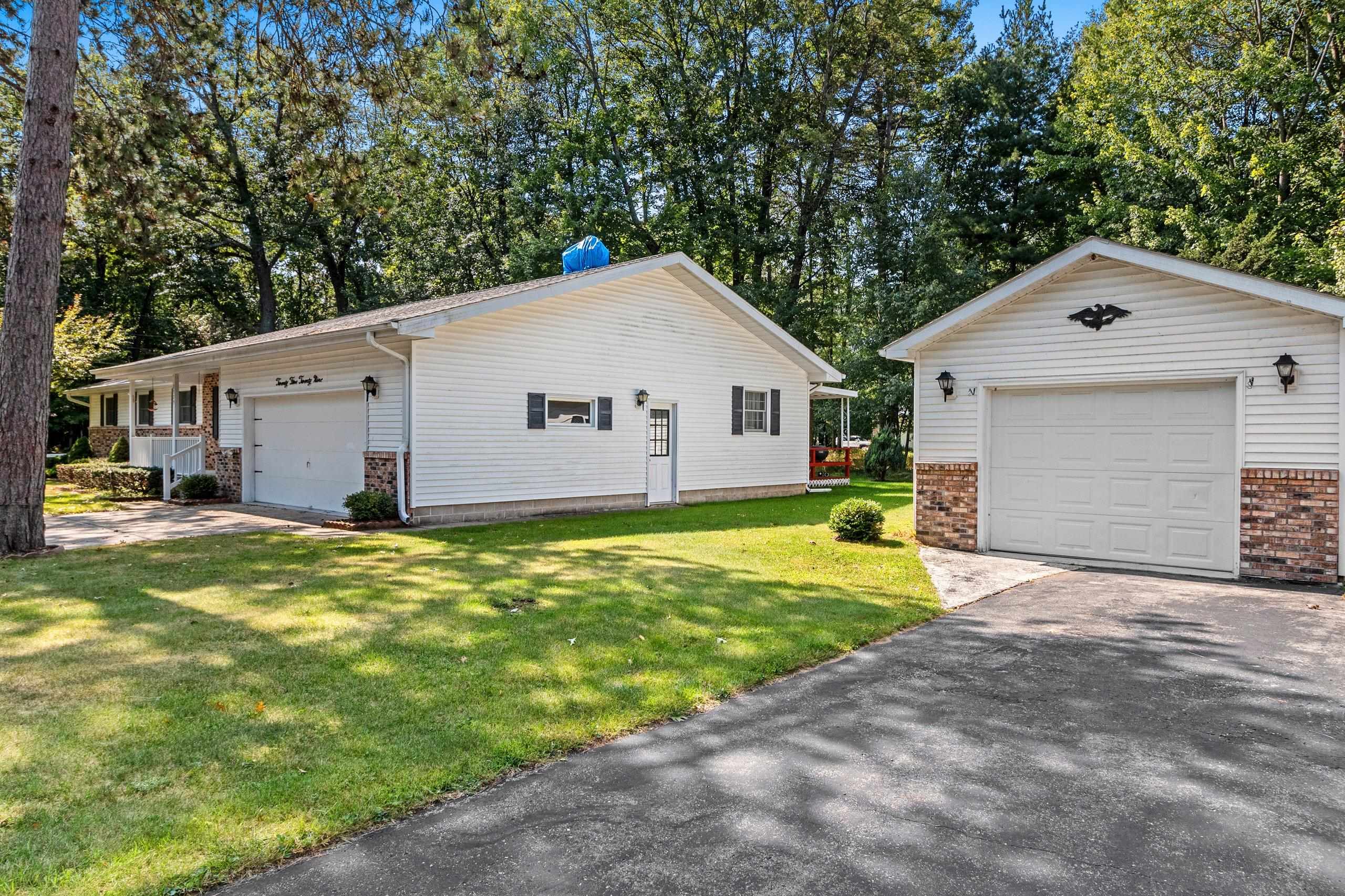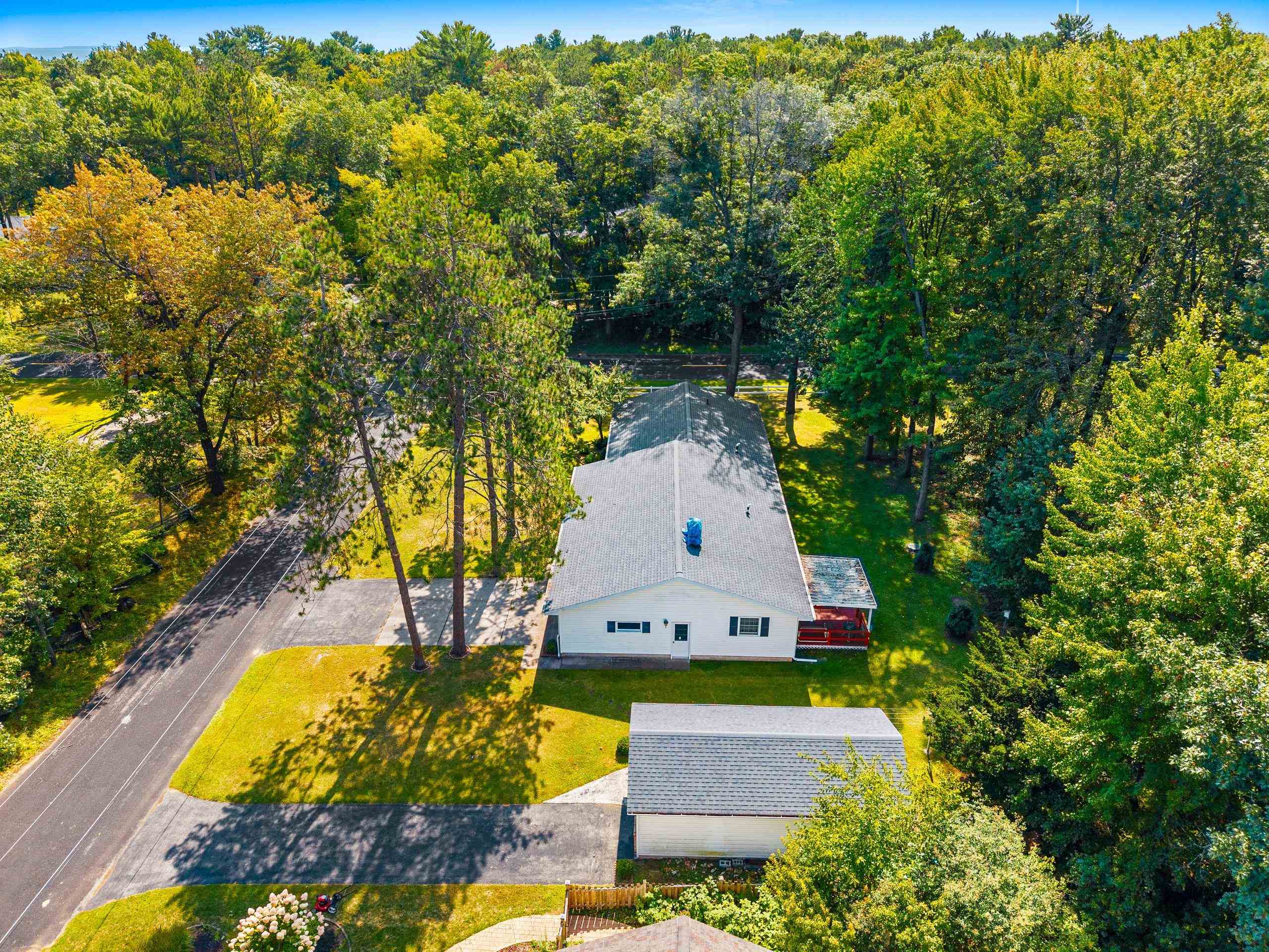 Breathtaking .70-acre wooded lot, 3-bed, 2.5-bath, 1950 sq ft ranch home offers serene privacy & natural beauty. Towering trees surround the property, creating a tranquil oasis great for nature lovers. Enjoy the spacious primary suite, wonderful layout, & covered back deck. Well-maintained, it includes a 2.5-stall garage plus a bonus 15x30 garage for extra storage. This home is steps from the Bay of Green Bay & local parks, blending convenience w/a retreat-like feel. **Property is being sold As-Is by Trustee. Almost all furniture & personal items will be incl in sale. Fam members have right to remove some personal items prior to close at their discretion - Please allow 48 hours for binding acceptance. No binding on wknds. Chimney brick needs repair & there is an Unused fuel tank in LL**