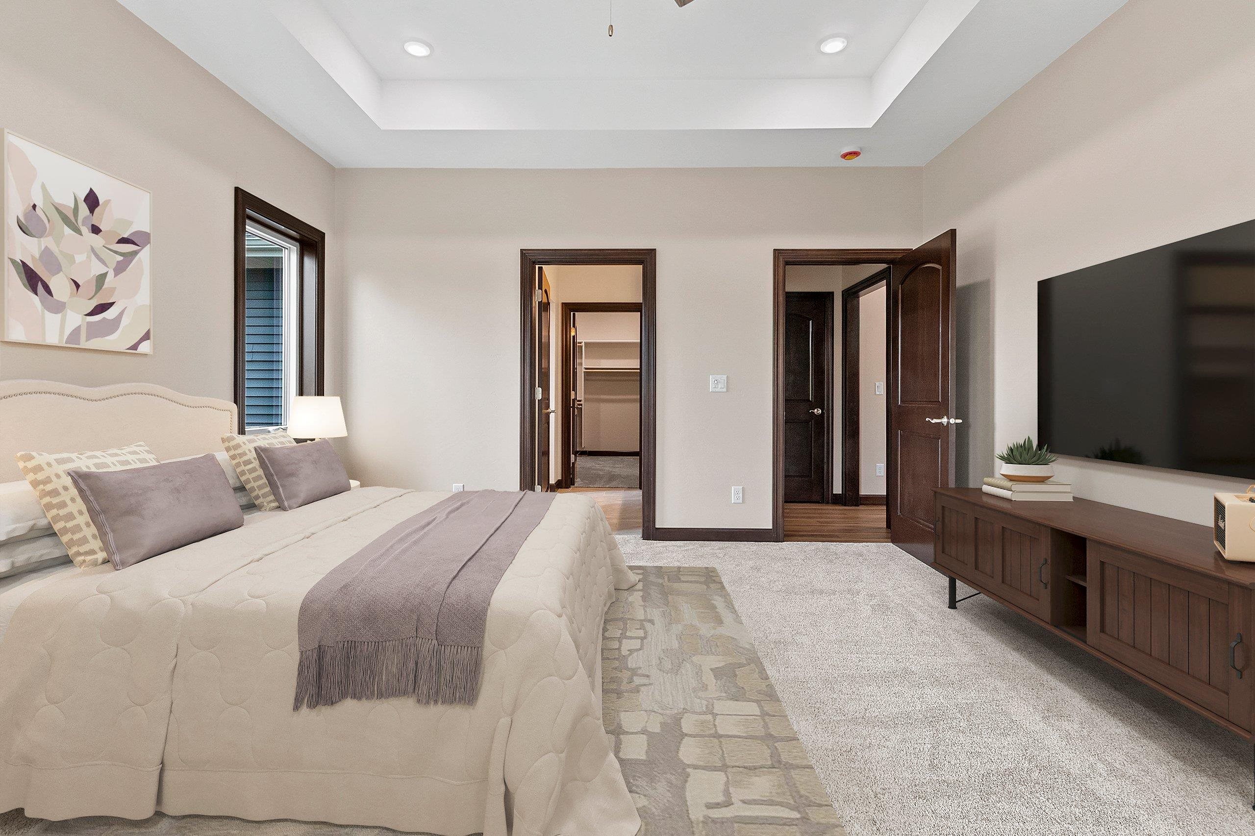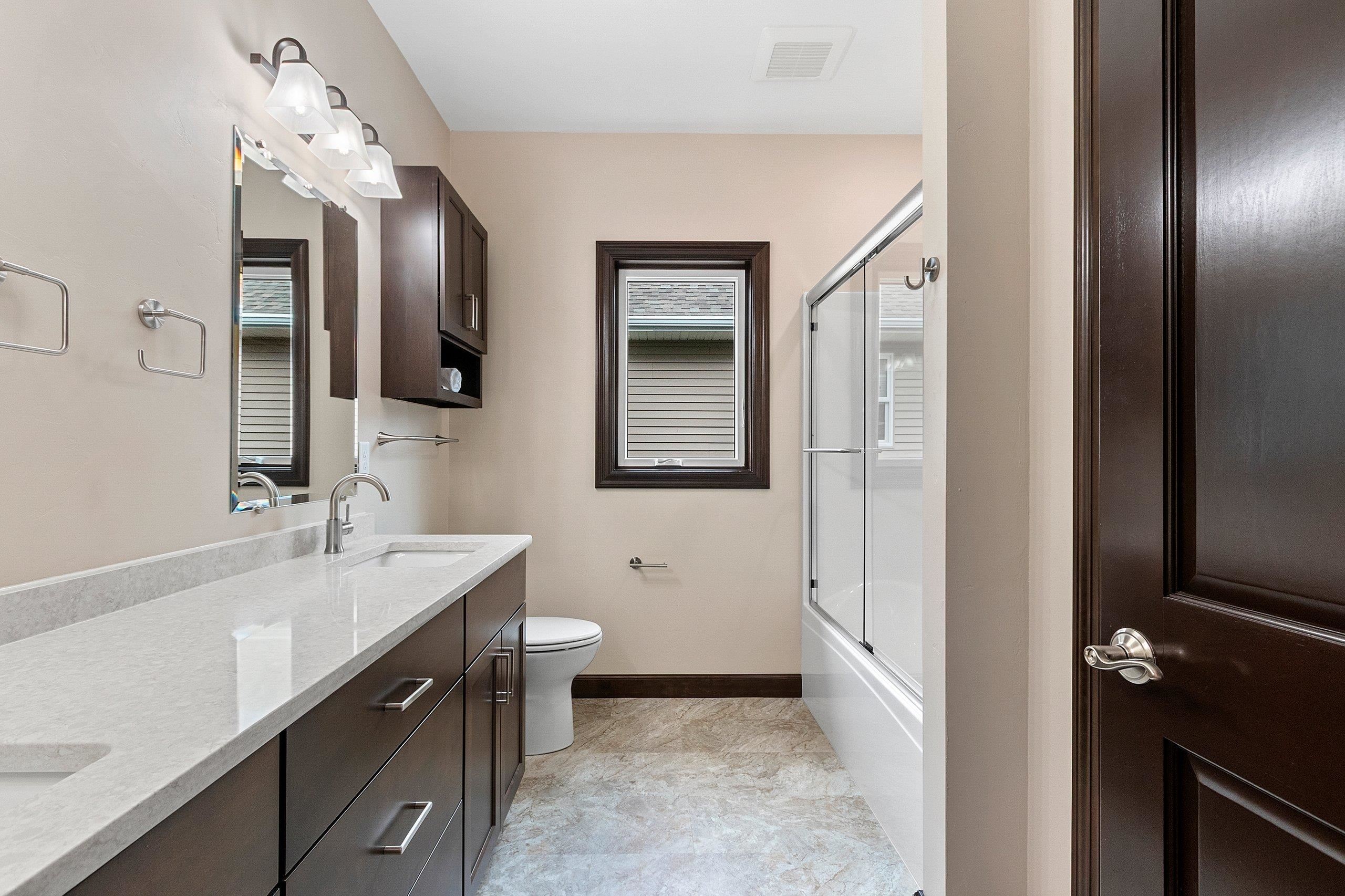Beautiful new construction available in West DePere. This gorgeous home backs up to heavily wooded city land providing a beautiful & private backdrop, w/ a buffer lot along the side of the home. You'll appreciate all the extras this home has such as a sodded yard, irrigation system, large trex deck, 4-stall finished & heated garage w/ one double deep stall, granite counters throughout, 1st flr laundry, decorative entryways, a beautiful open concept w/ split bedroom design, soaring ceilings, & stone fireplace. A generous Master Suite has a huge walk-in closet & bathroom, w/ a double vanity & tile walk-in shower. Finished lower level with 2 beds & full bath, huge family room w/ a great wet bar area. Request your showing today! 48 hr binding acceptance req, some photos virtually staged.