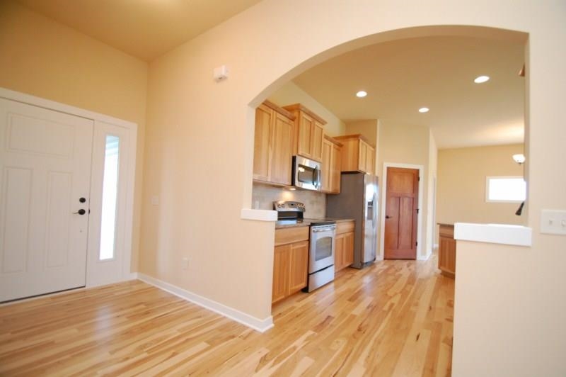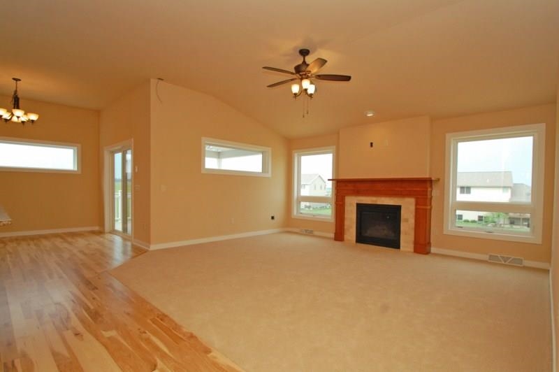 completion August 15, 2014. Stunning ranch by Ambiance Homes Inc, open floor plan, great room with fireplace, custom hickory cabinets in kitchen with soft close doors & drawers, granite counter tops in kitchen & baths, stainless steel appliances, hardwood floors, tile in baths & laundry, 3 car garage, covered front & rear porch, concrete drive, seeded yard, central air, softener and more... $319,900 or finish lower level family room w/fireplace, 4th bedroom and 3rd bath for $344,900