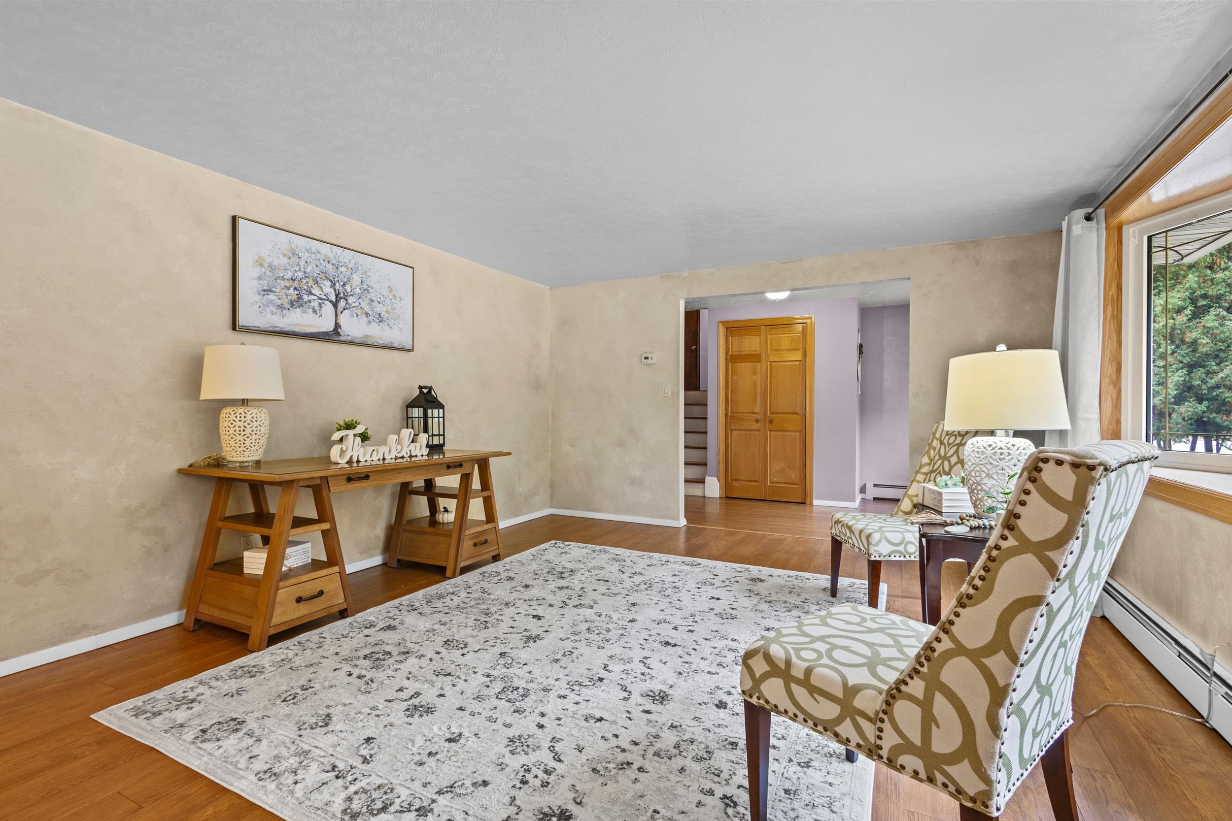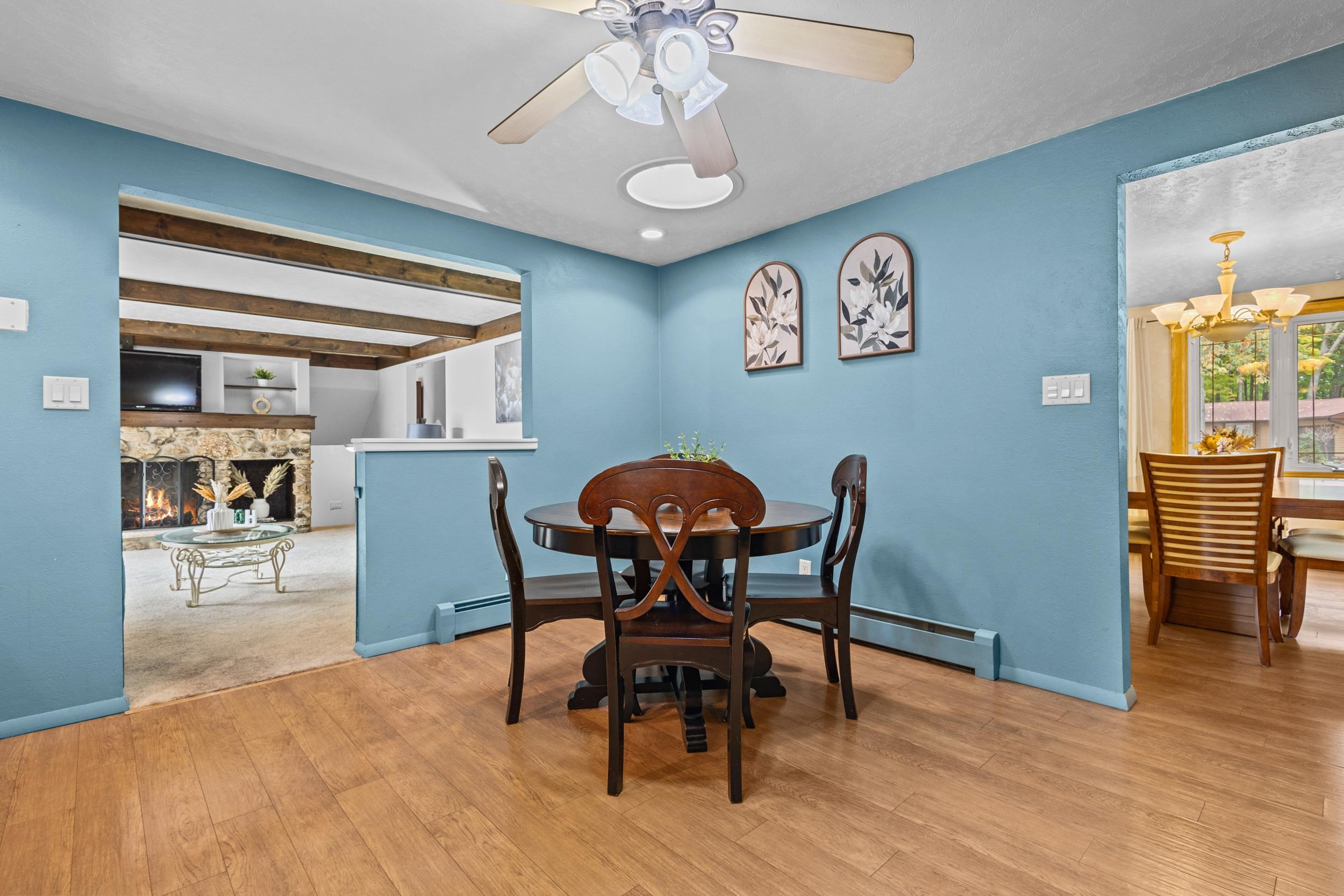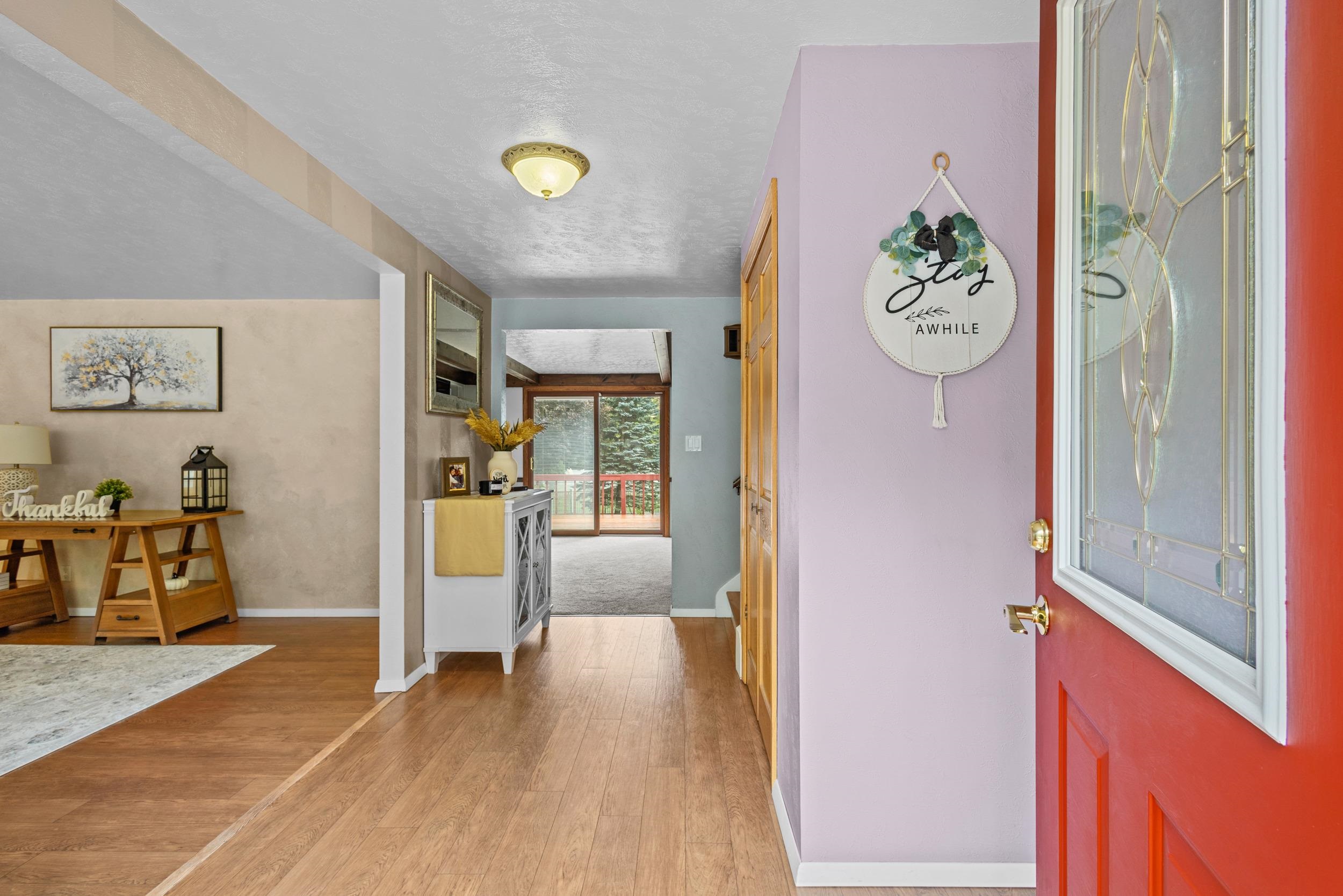 Discover a home wonderfully secluded with wooded setting, where nature and privacy meet popular living. This inviting home greets you with striking curb appeal and a welcoming entry, opening into a spacious interior designed for comfort and gatherings. Generous, open living spaces with beautiful flooring on the main level. Refined Maple cabinets in the kitchen, complemented by a warm, carpeted family room featuring a wood-burning stone fireplace. Upper level offers three bedrooms, including a tranquil primary suite for restful retreat. Finished basement provides versatile living space, storage, or additional recreation areas. A beautifully landscaped backyard offers a parks-like feel. Seller is offering a home warranty up to $450. Seller is reviewing offers 10/22/2025
