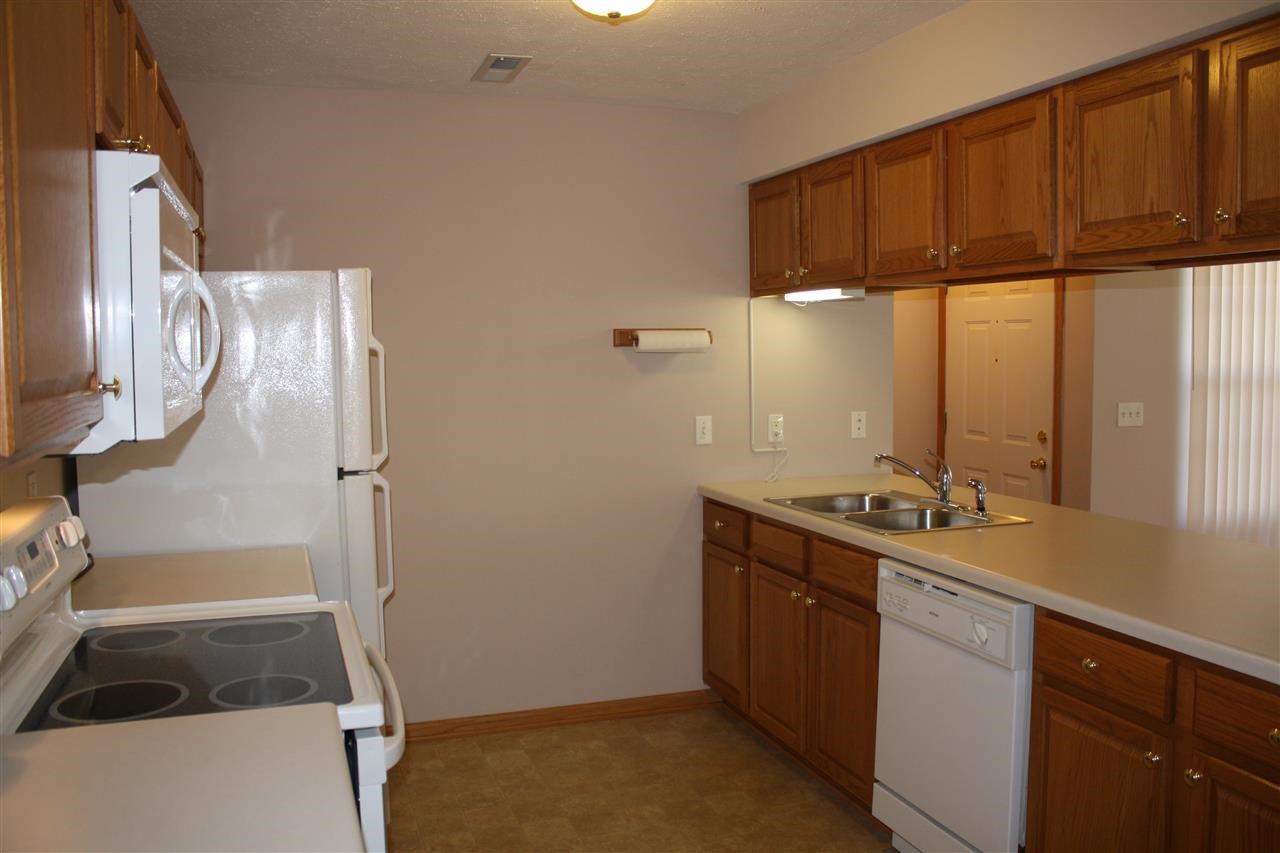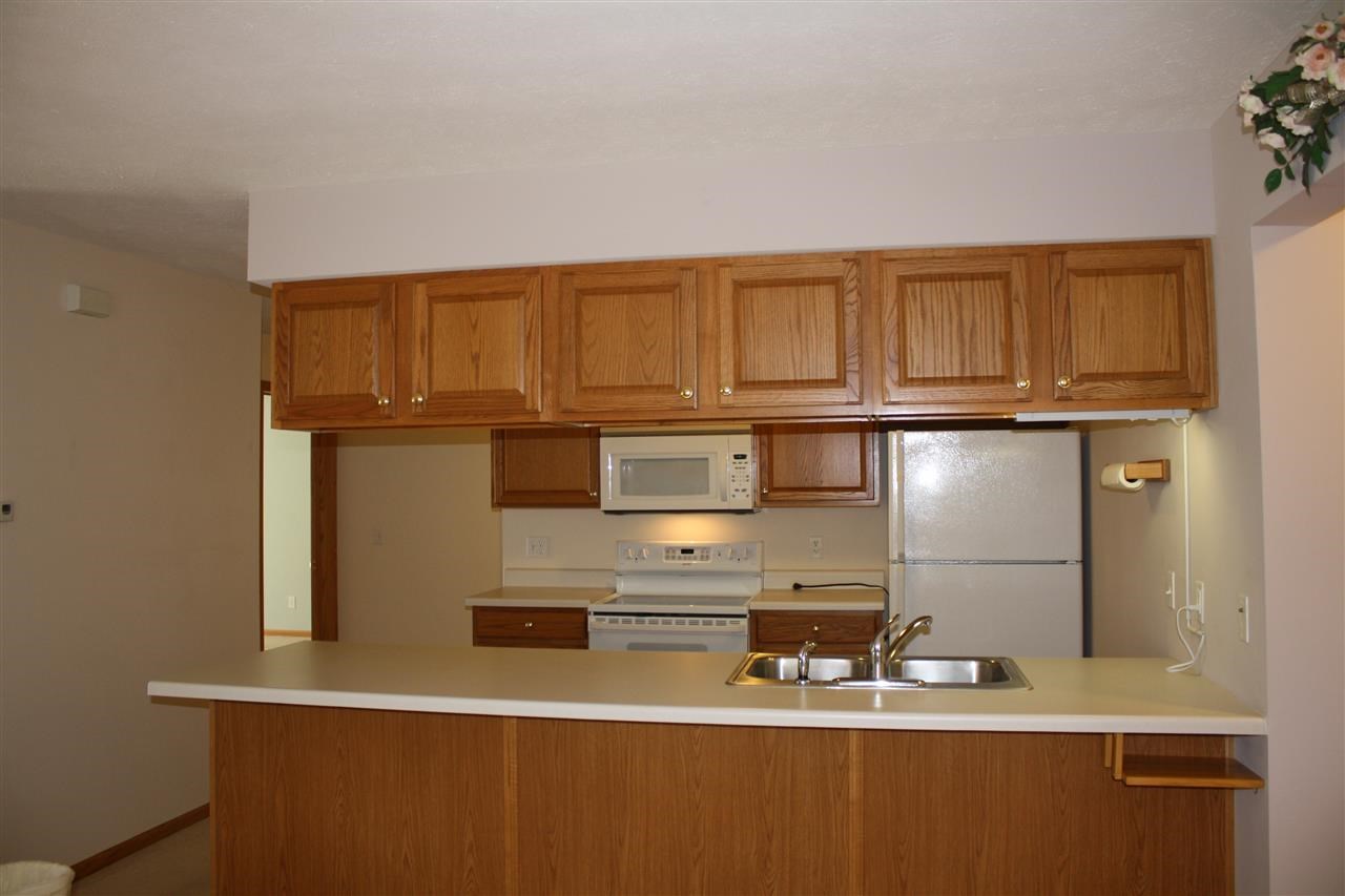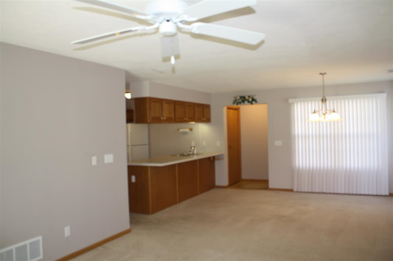 Move in ready and super clean !! Carpets professionally cleaned. Living / Dining room combo w/ gas fireplace. Master with WIC and full bath -Grab bars in both bathrooms. Kitchen has new microwave and lots of cabinets with pull outs, large breakfast bar and pantry. Tons of closet space. All appliances and window treatments included. Convenient laundry area. Nicely finished 2 car attached garage. Backyard patio that overlooks bike trail - quiet area with a great wooded view.
