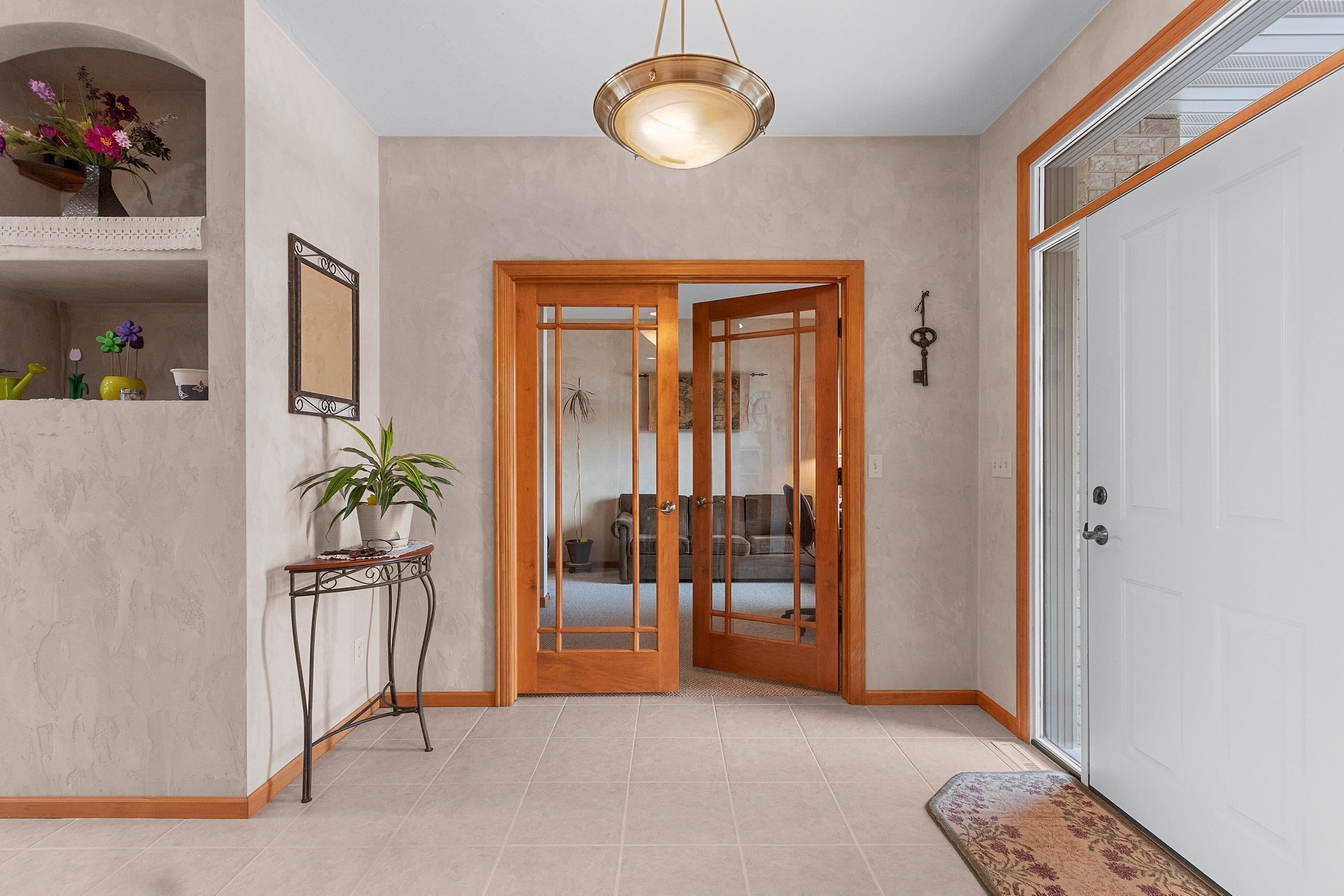 Spacious 3 bedroom, 2 full & 2 half bath home on 1.546 acres in West De Pere Schools featuring a 3.5-stall attached garage plus 15x15 shop. Open concept main level offers hardwood floors, updated kitchen with quartz countertops, and seamless flow to dining and living areas. Main level also includes office, first floor laundry, separate half bath, and locker system off the garage. Primary suite features walk-in closet, dual sinks, and tiled walk-in shower with dual shower heads. Finished lower level includes family room, exercise area, wood-burning stove, and half bath. Enjoy the backyard with low maintenance deck, 7 apple trees, and 1 peach tree. A rare combination of space, function, and setting.