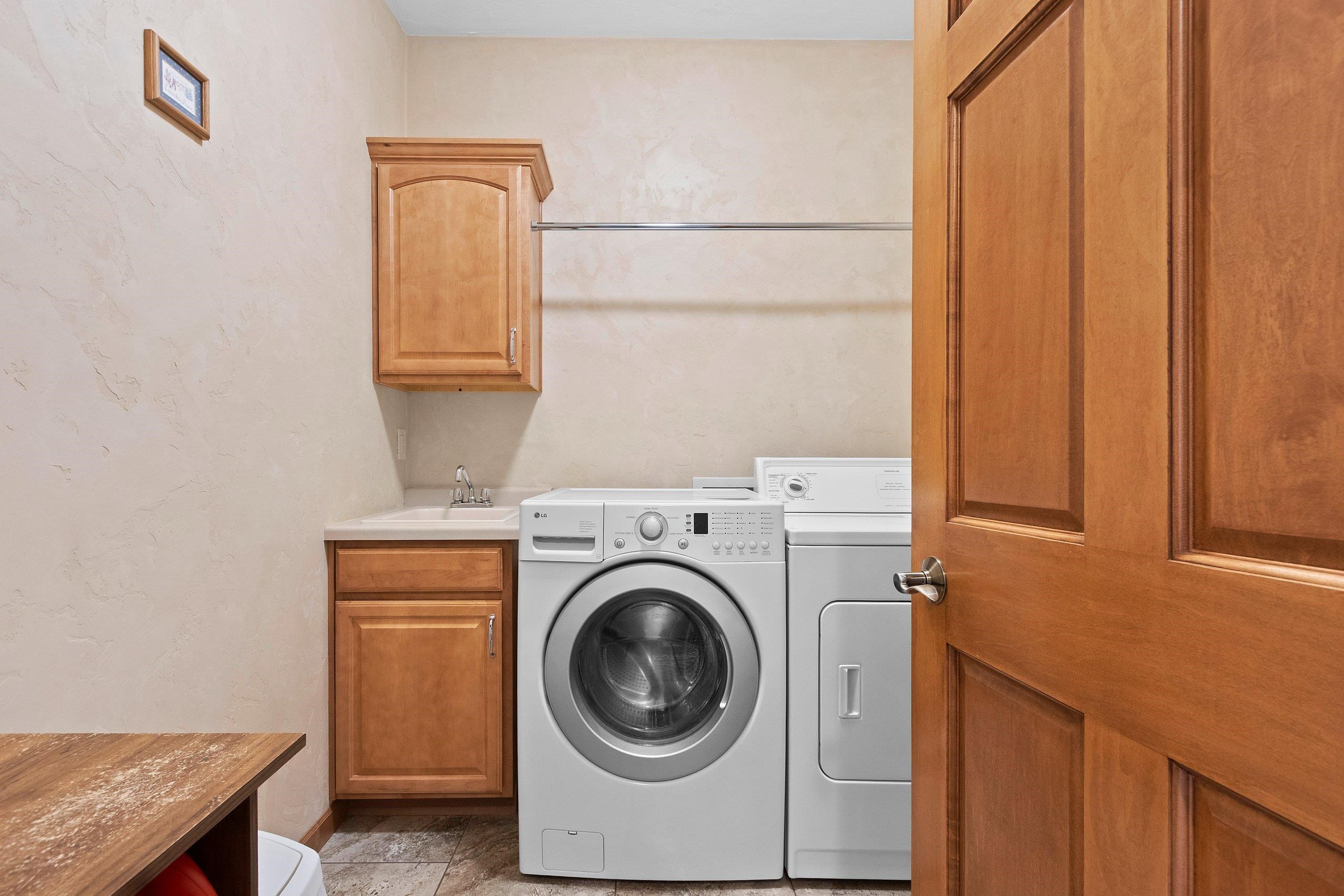 refrigerator, stove/oven, microwave, dishwasher, washer, dryer