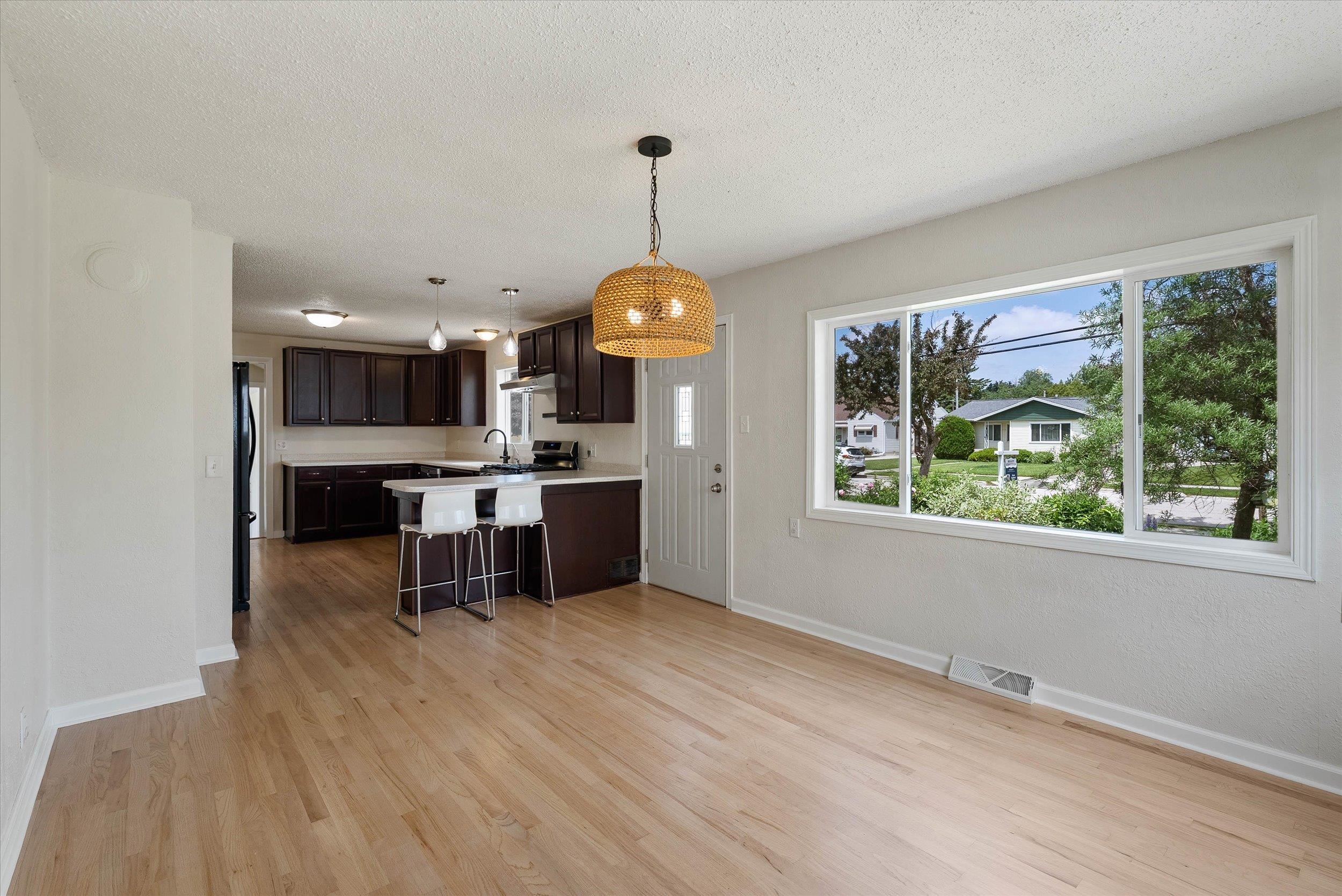 This thoughtfully expanded Cape Cod delivers space, comfort, and flexibility well beyond expectations. Situated on a spacious, fully fenced 0.65-acre lot, the home offers 4 bedrooms, 2 full baths, and a convenient half bath designed to suit a variety of lifestyles. The open kitchen boasts ample counter space and storage, flowing seamlessly into a large dining area ideal for everyday living or entertaining. The main-level primary suite provides a private retreat with added convenience. Downstairs, the full lower level presents endless possibilities and is already equipped with egress windows for two future bedrooms—perfect for adaptable bonus living areas. Outside, a gardener's dream!. Some rooms virtually staged.