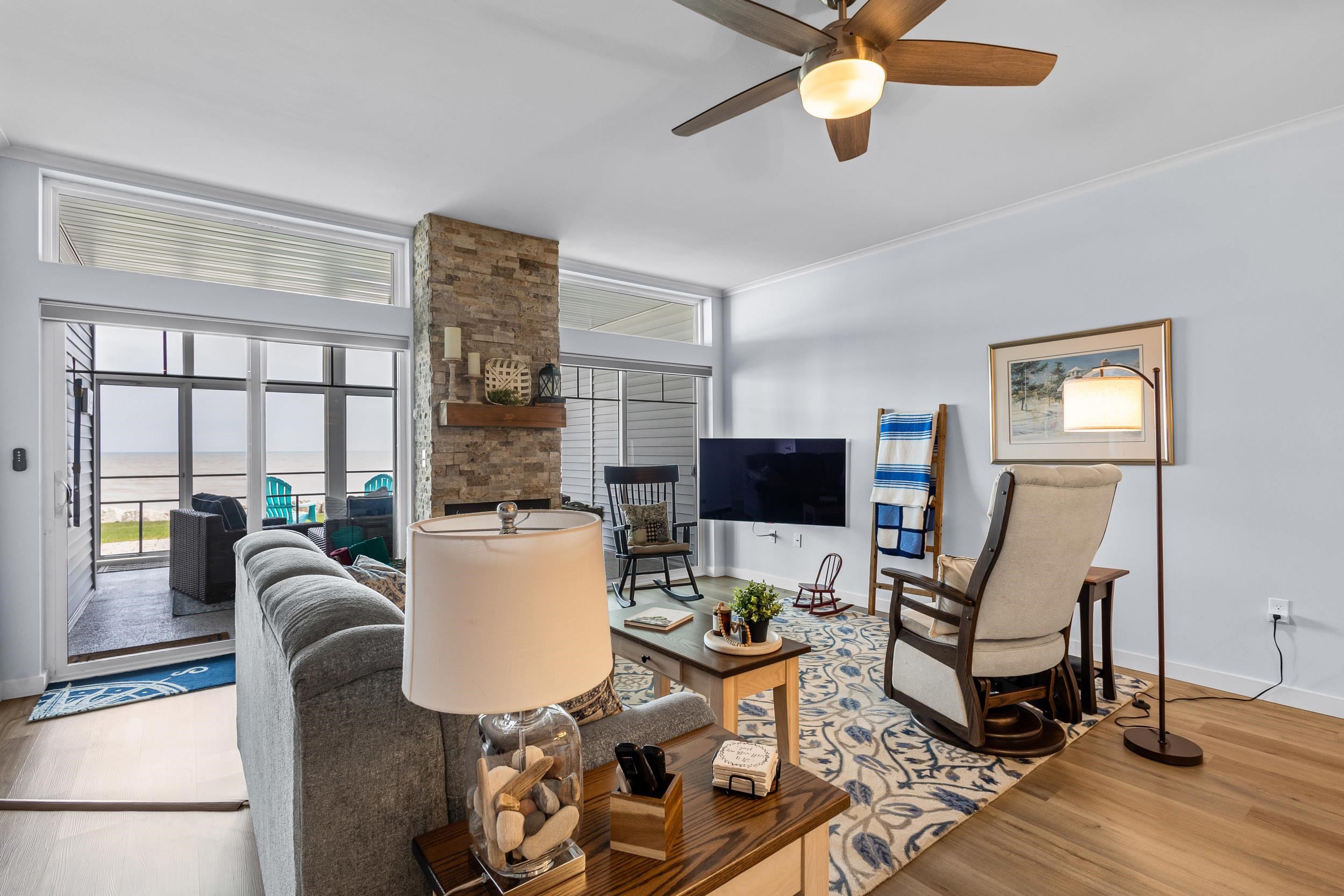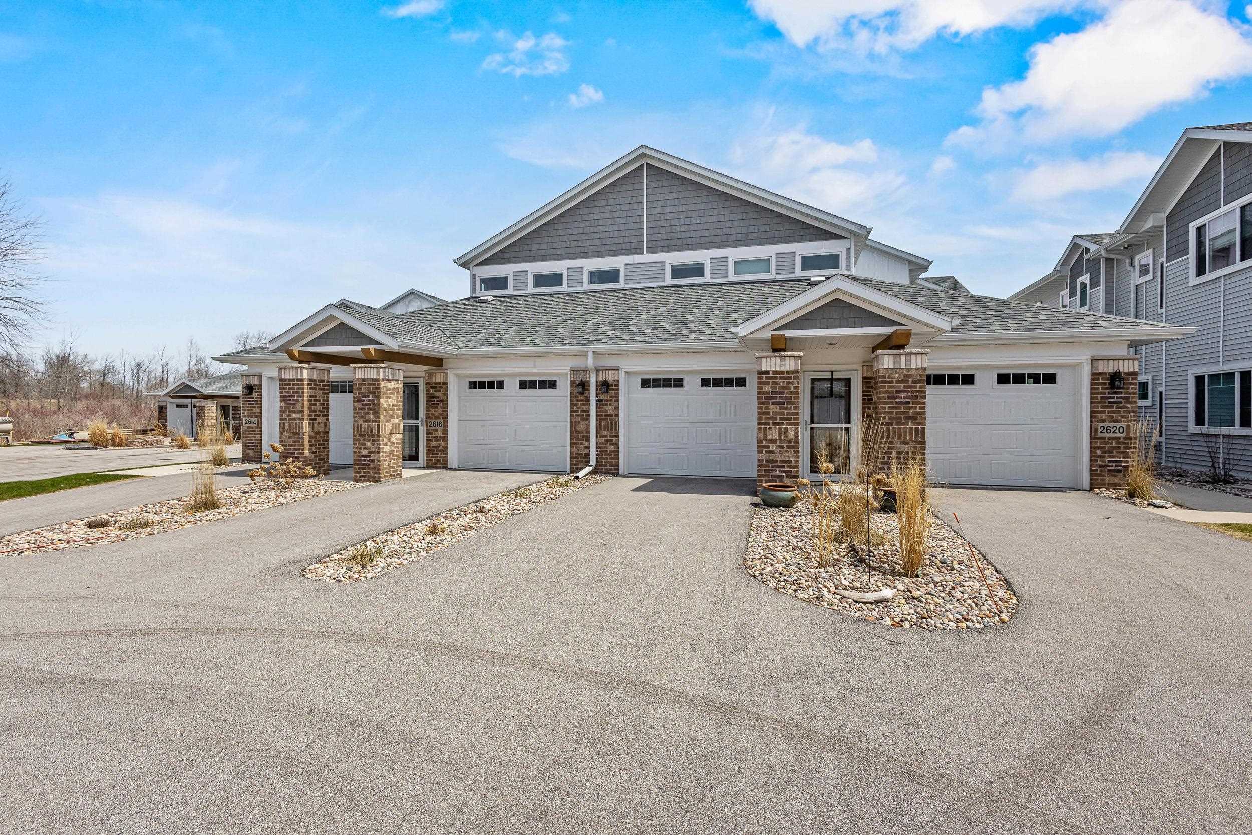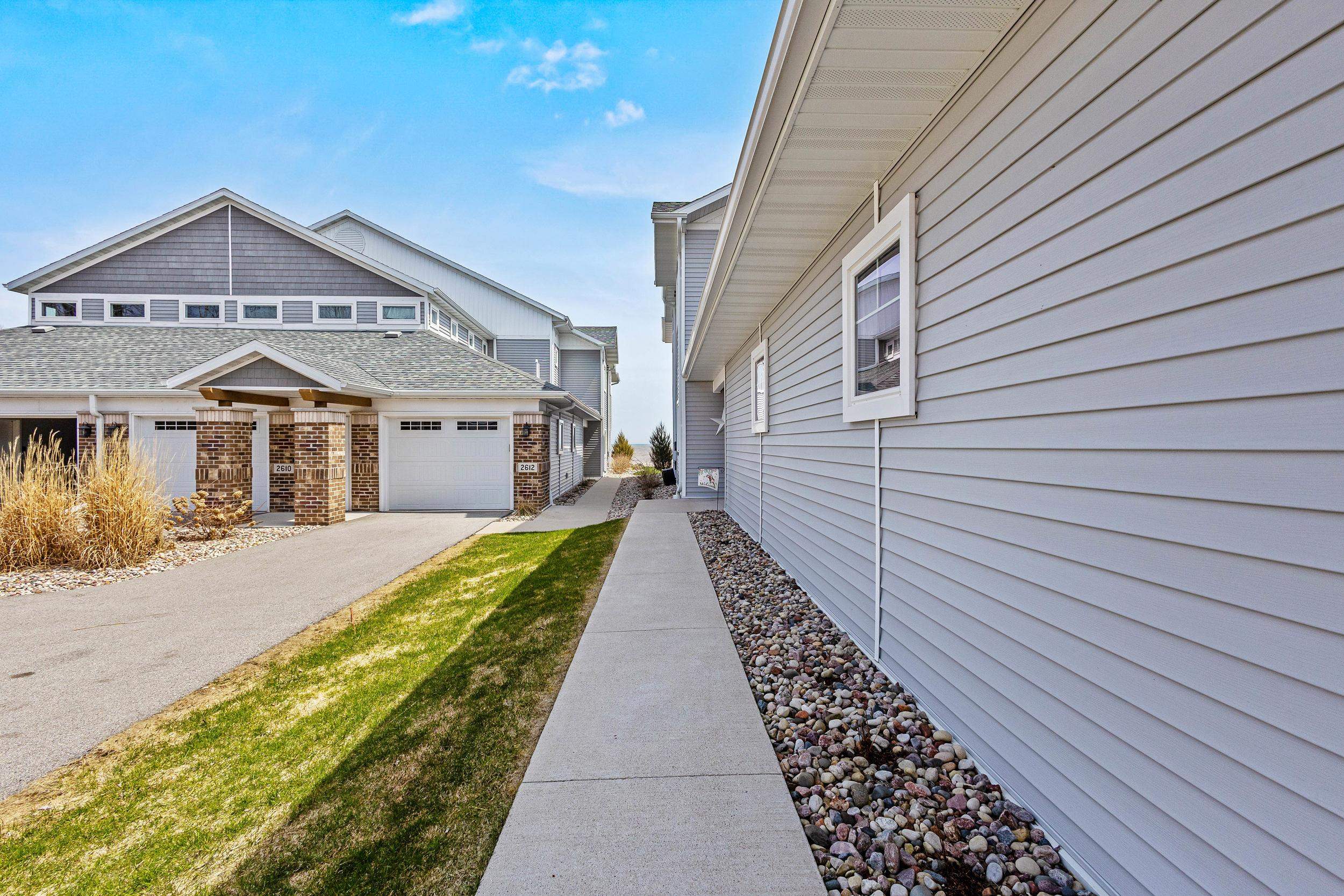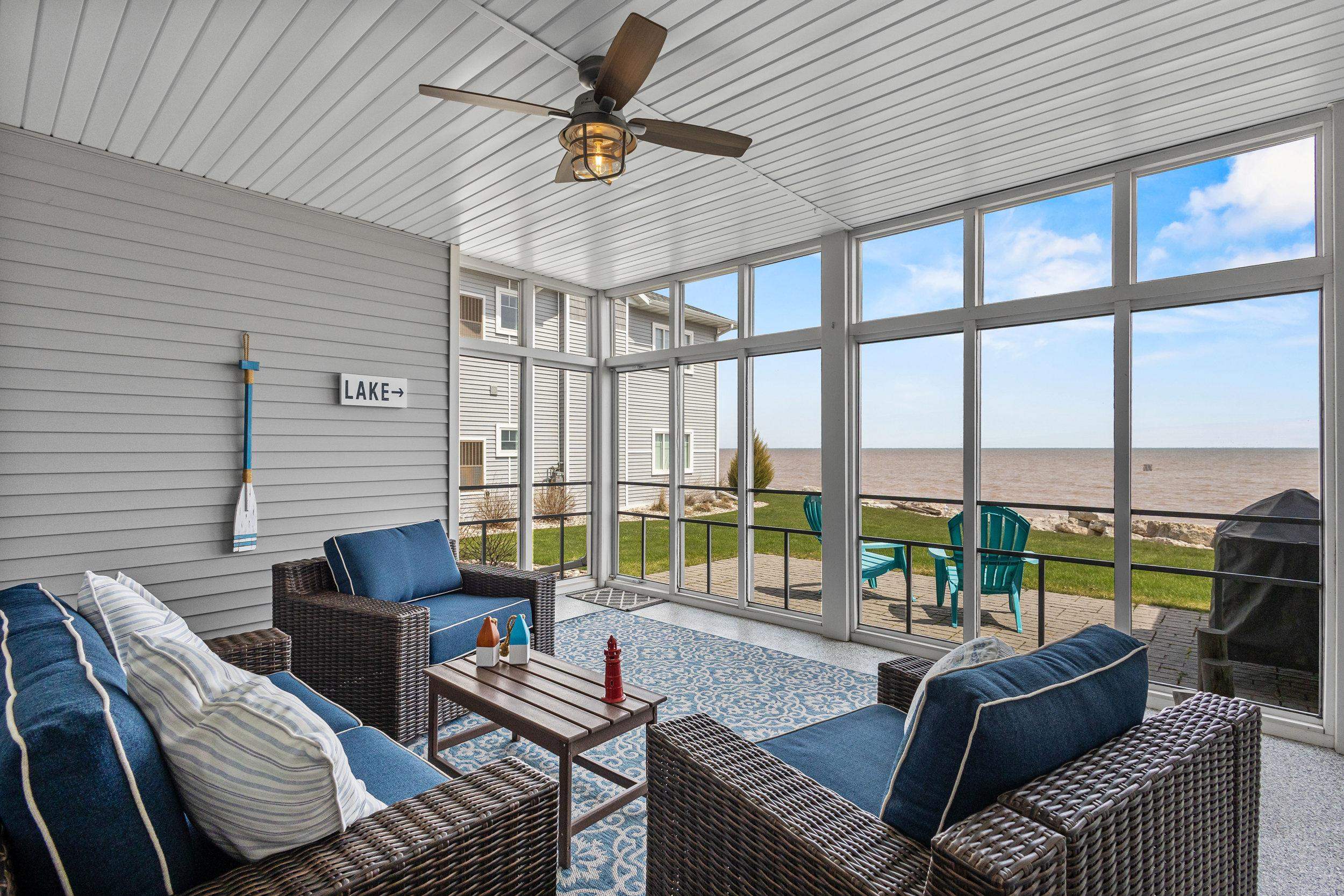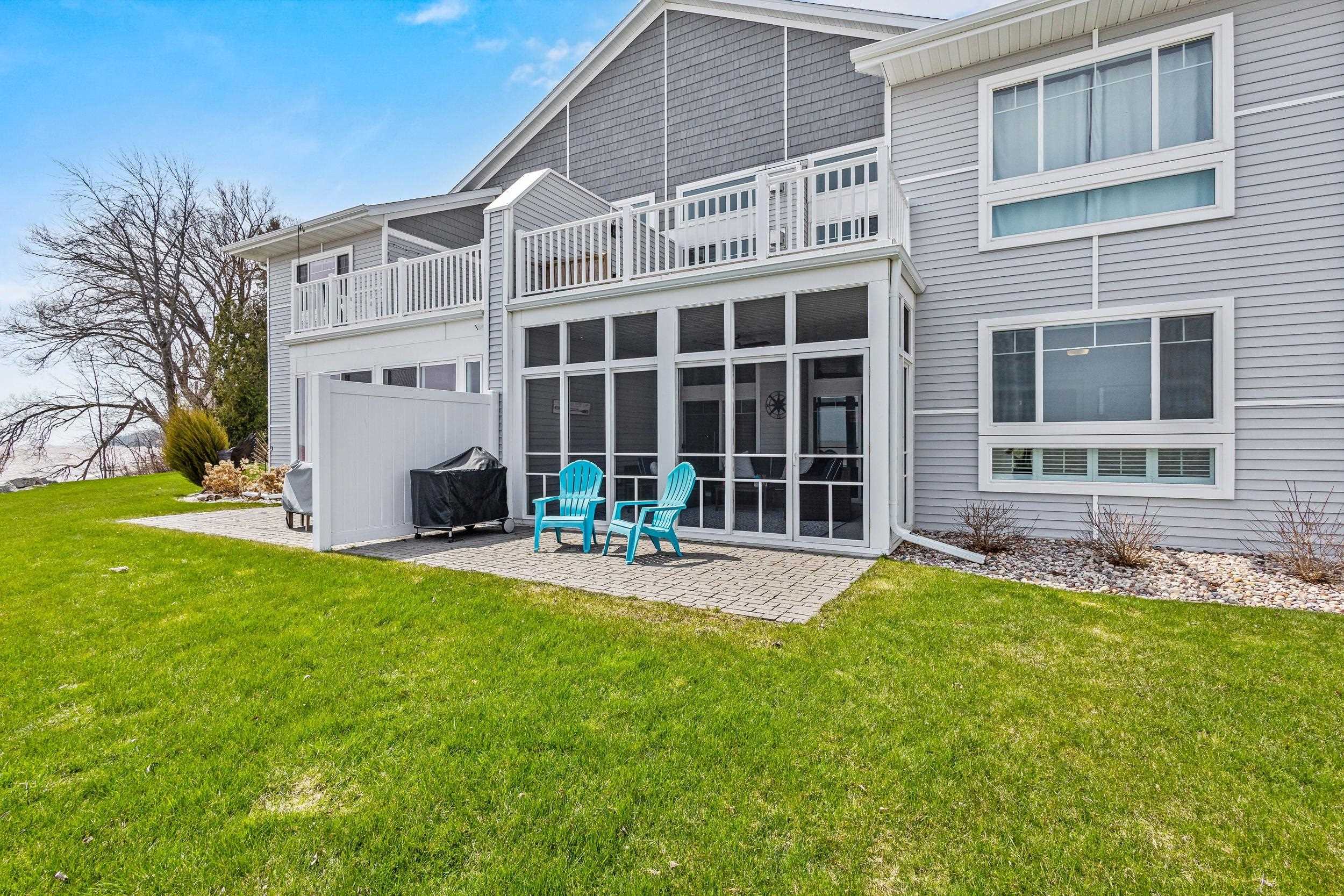 Welcome to The Waterfront Nantucket Nook on the shores of Lake Michigan! Sunrise, sand beach, stroll to the Historic Downtown Wine venues. Kick back in this chill condo & lounge on the breezy screened-in porch. Whip up meals in the custom kitchen with an island perfect for noshing & hosting. Cozy up by the fire for those blissful, warm nights. The Owner's Suite features a grand picture window, a walk-in closet big enough for a car , dual sinks, fog-free mirrors for the perfect selfie, a walk-in shower, & a private throne room. This 2-bed, 2-bath home is all on one level, with a tandem garage, a laundry room, & a foyer closet. Plus, the first garage stall is ready to flex into whatever you dream up! Furry friends welcome. No rentals. Sellers need a short rent-back and to close by 6/5/2026.