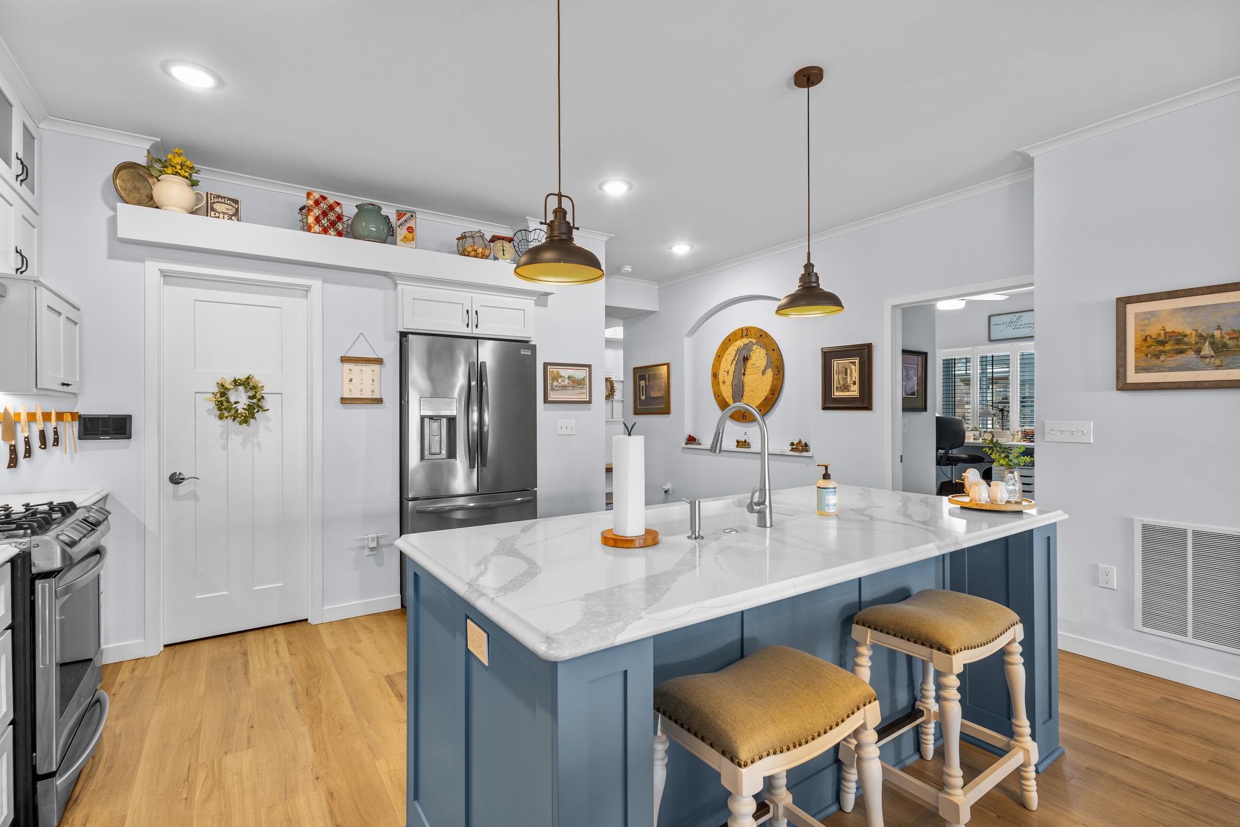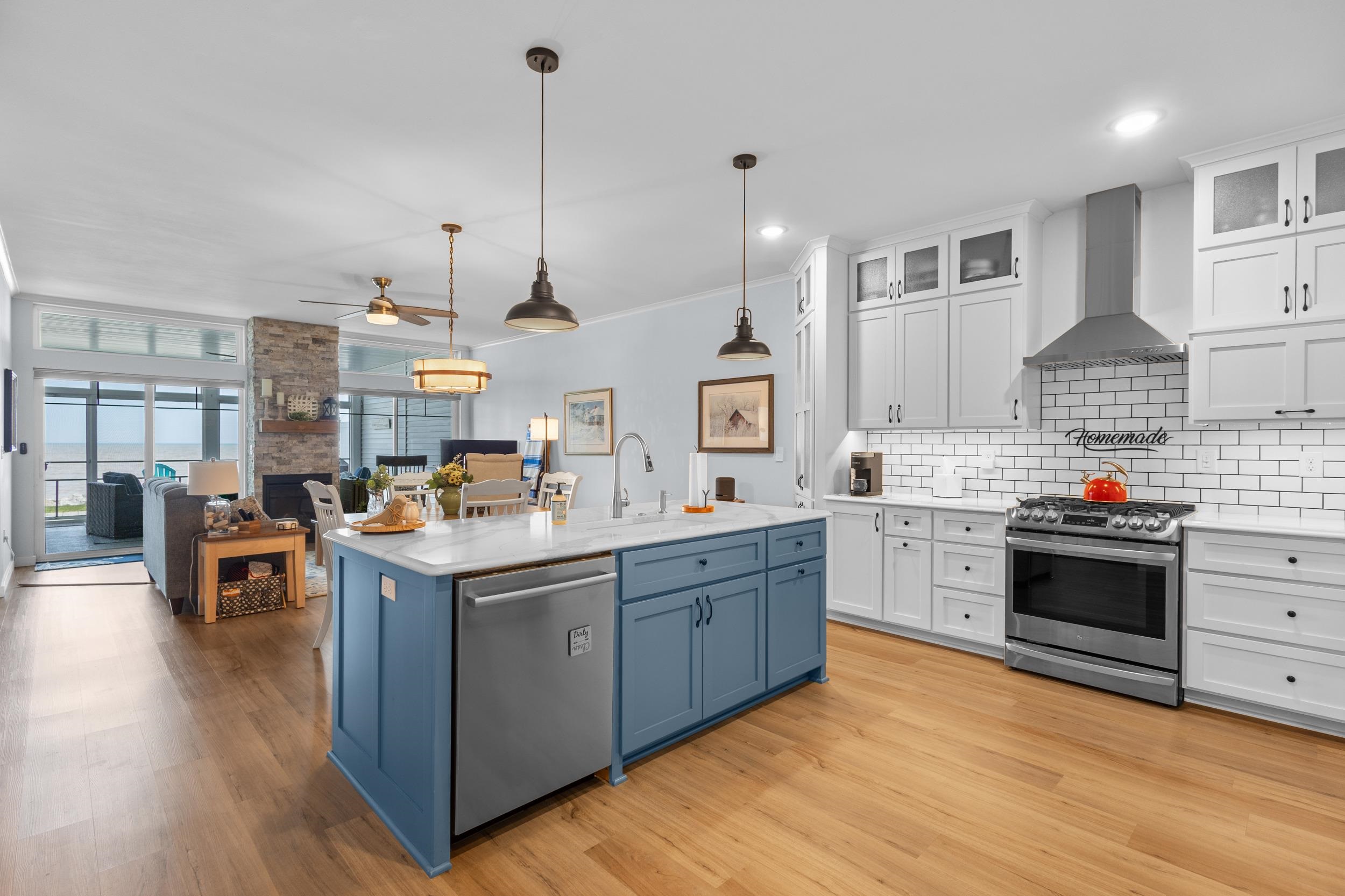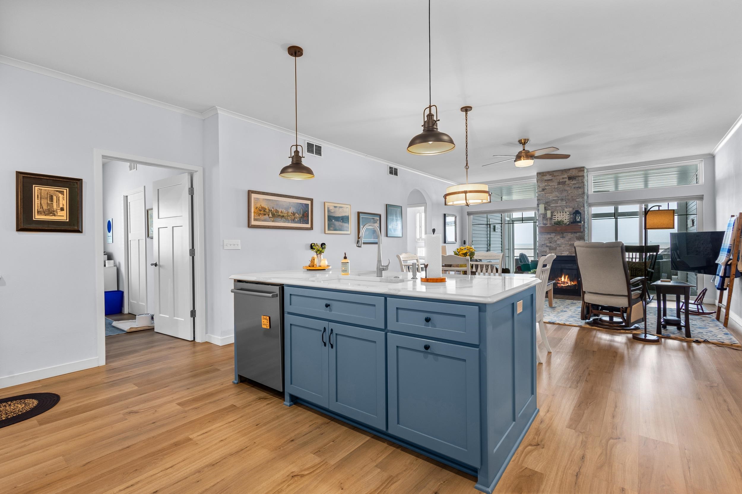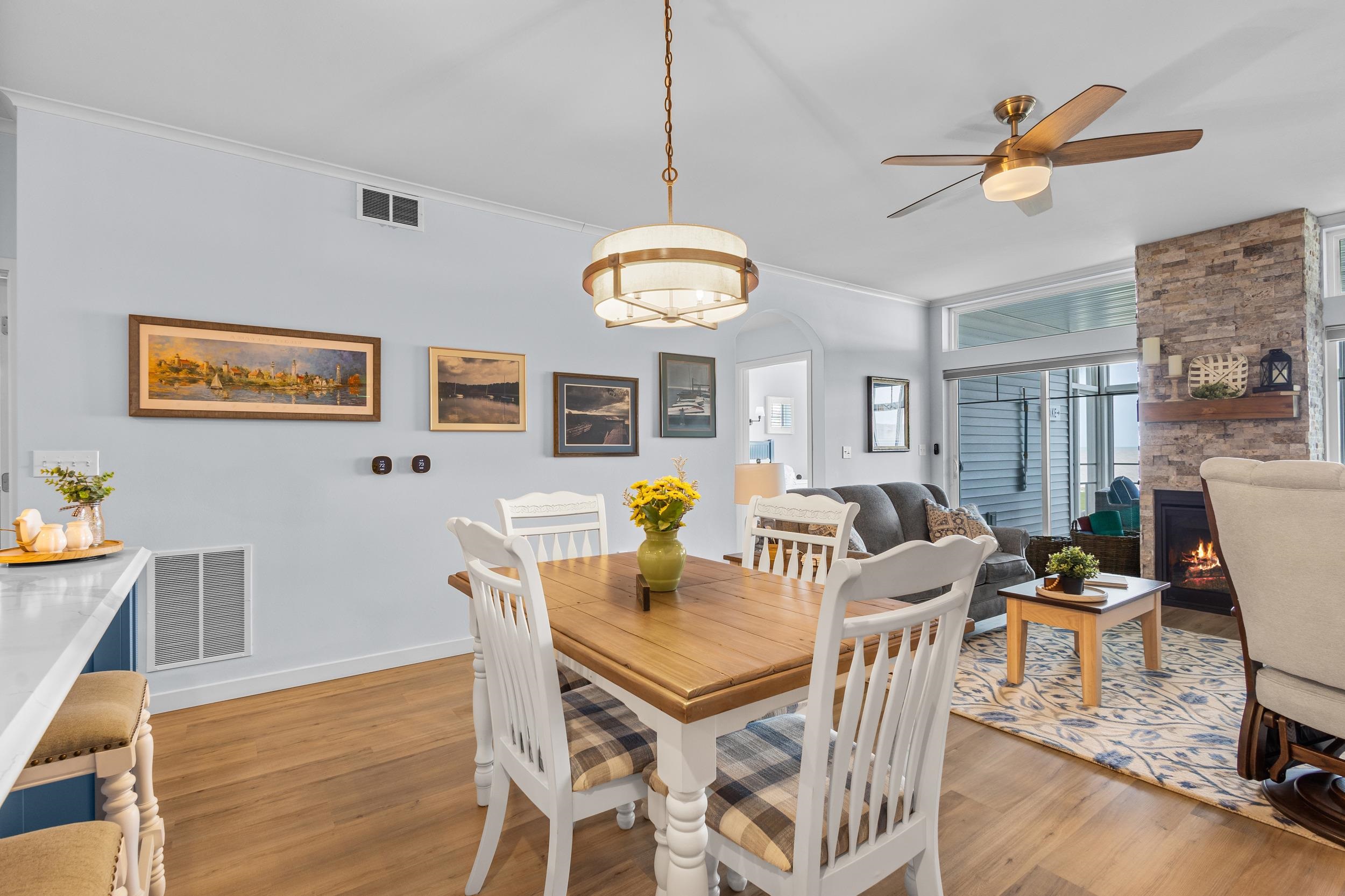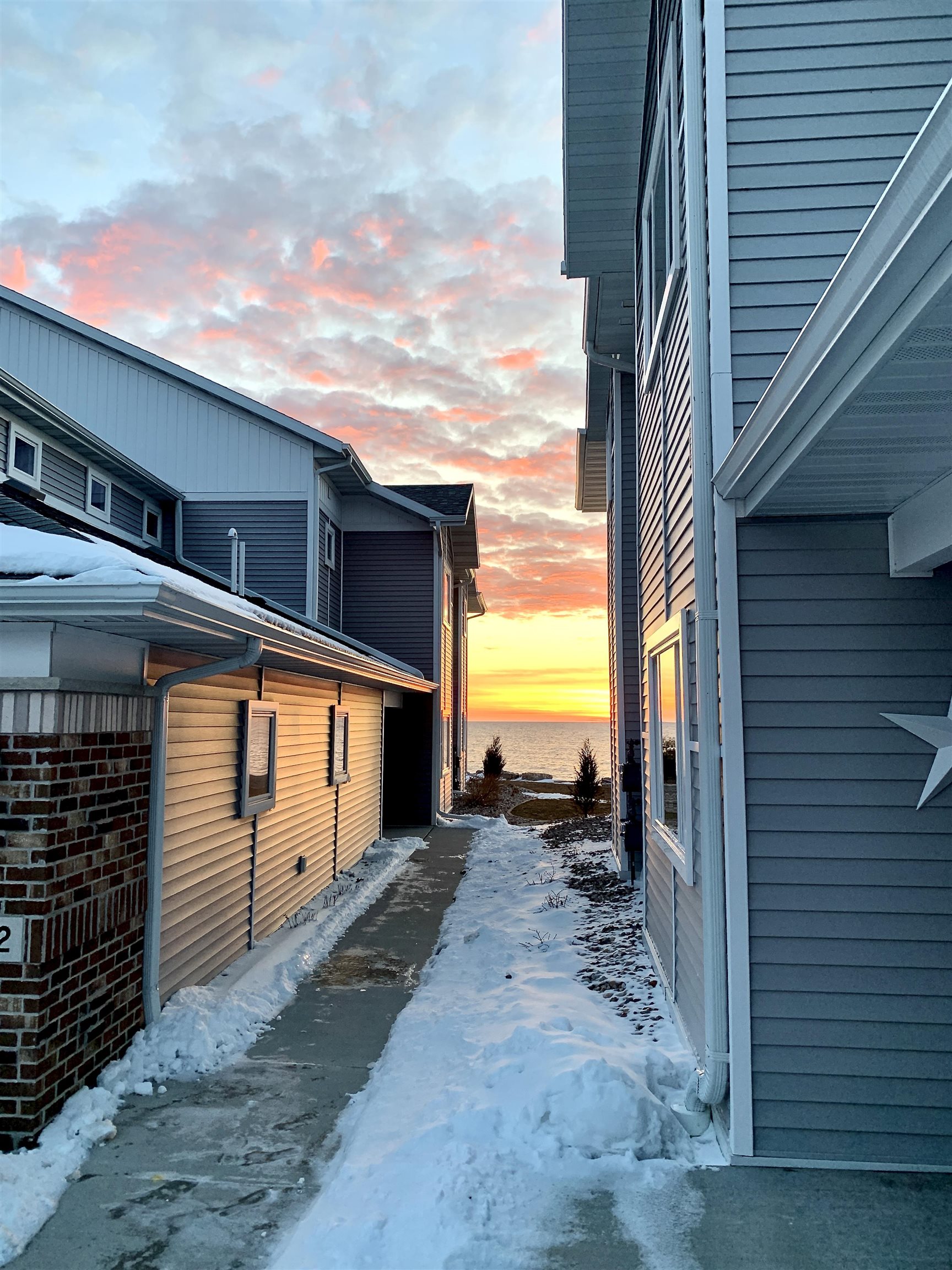 Welcome to The Waterfront Nantucket Nook on the shores of Lake Michigan! Sunrise, sand beach, stroll to the Historic Downtown Wine venues. Kick back in this chill condo & lounge on the breezy screened-in porch. Whip up meals in the custom kitchen with an island perfect for noshing & hosting. Cozy up by the fire for those blissful, warm nights. The Owner's Suite features a grand picture window, a walk-in closet big enough for a car , dual sinks, fog-free mirrors for the perfect selfie, a walk-in shower, & a private throne room. This 2-bed, 2-bath home is all on one level, with a tandem garage, a laundry room, & a foyer closet. Plus, the first garage stall is ready to flex into whatever you dream up! Furry friends welcome. No rentals. Sellers need a short rent-back and to close by 6/5/2026.