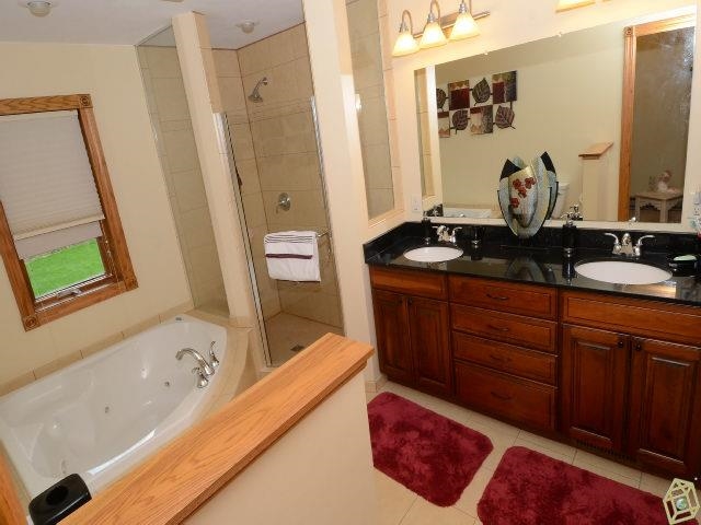 Gorgeous ranch home w/ many upgrades - the kitchen has newer counters, lots of cabinets/pantry, wood laminate floor & 6-panel doors. There is a main-level master suite, double closets, dressing area, plus a 9x13 master bath, double sinks, jetted tub & separate tile shower. The lower level offers a large finished rec room with wet bar game area, an office, a workshop area, plus a full bath. The family/sunroom is total windows to enjoy the beautiful backyard with a deck & patio. New roof 2012 and more.
