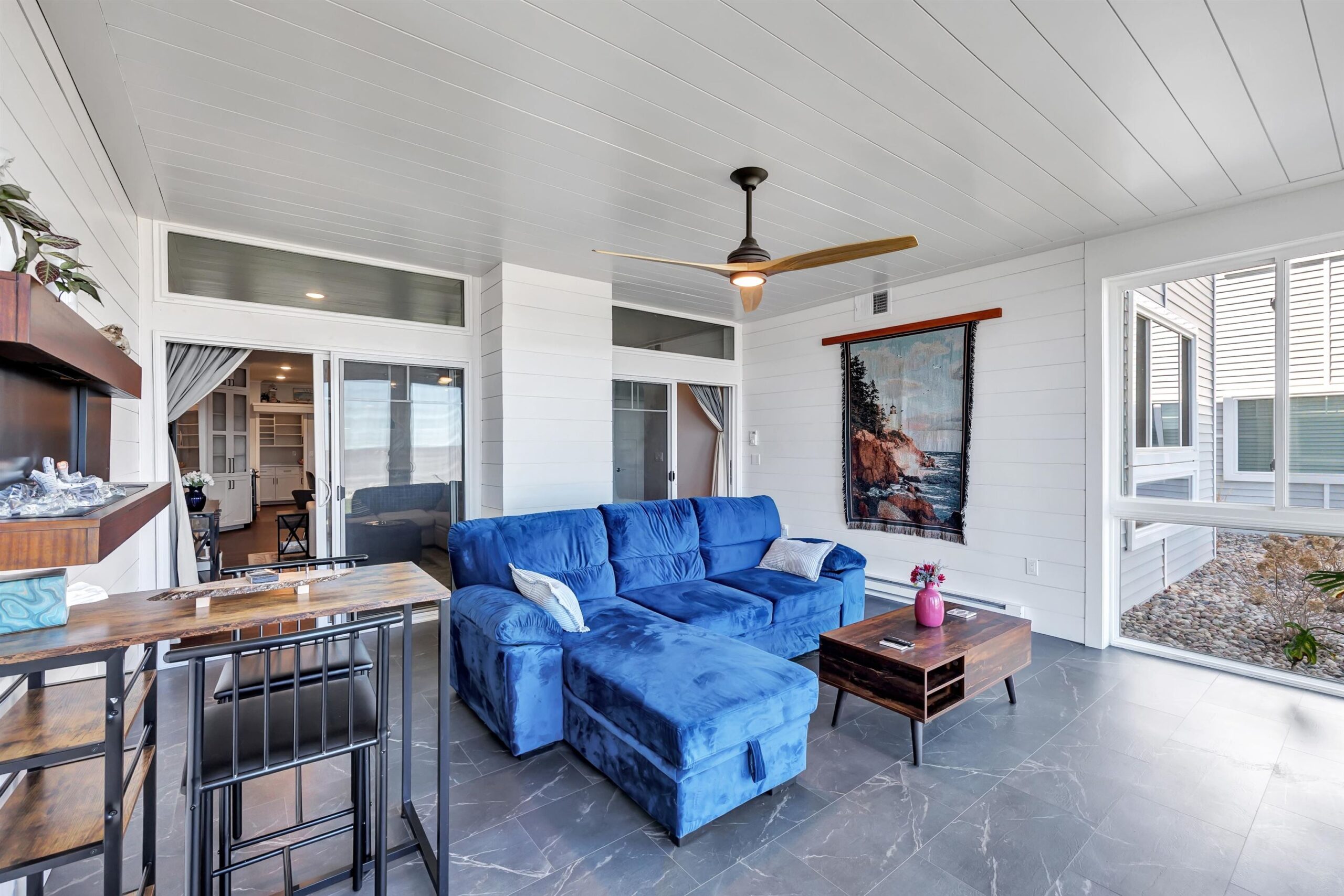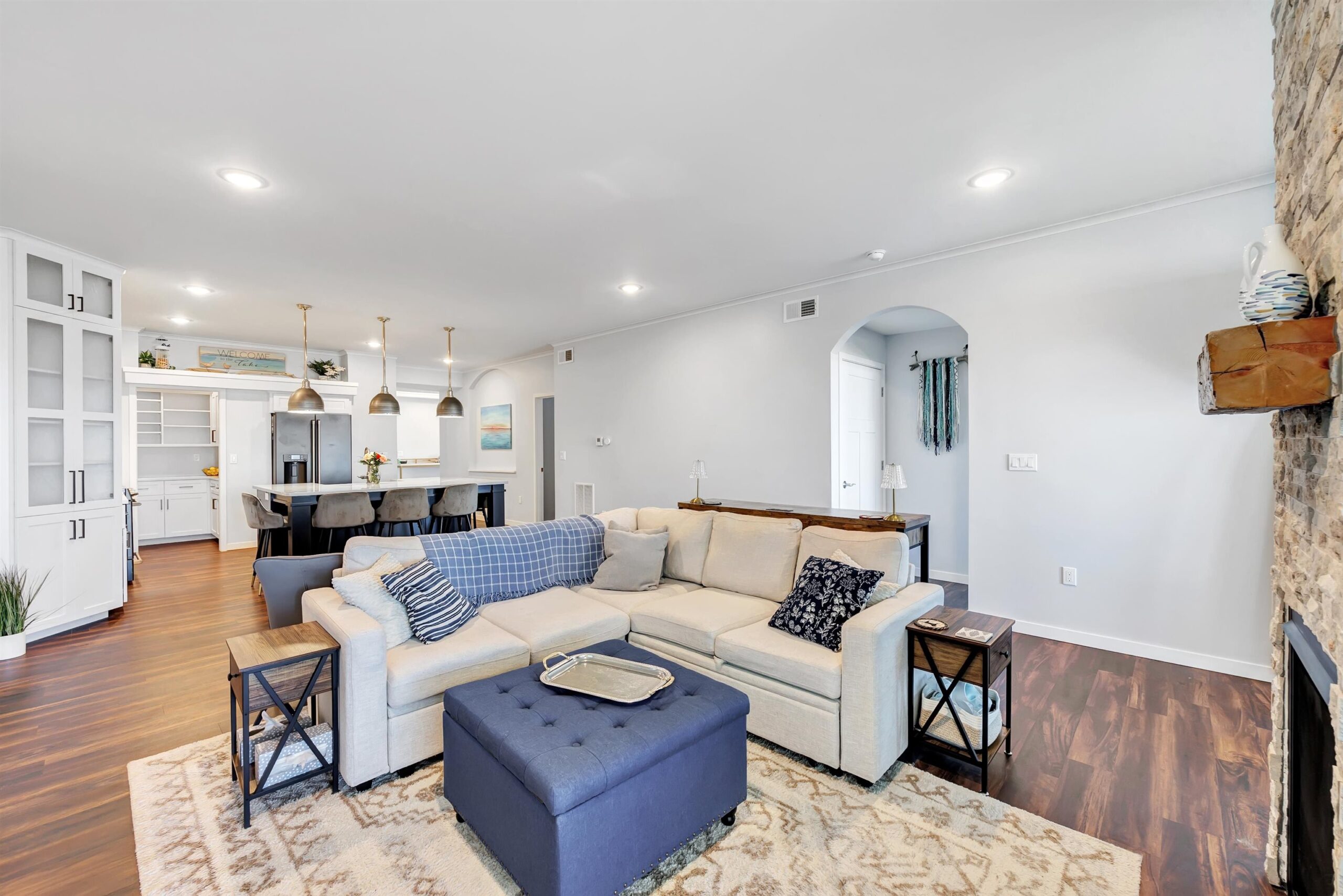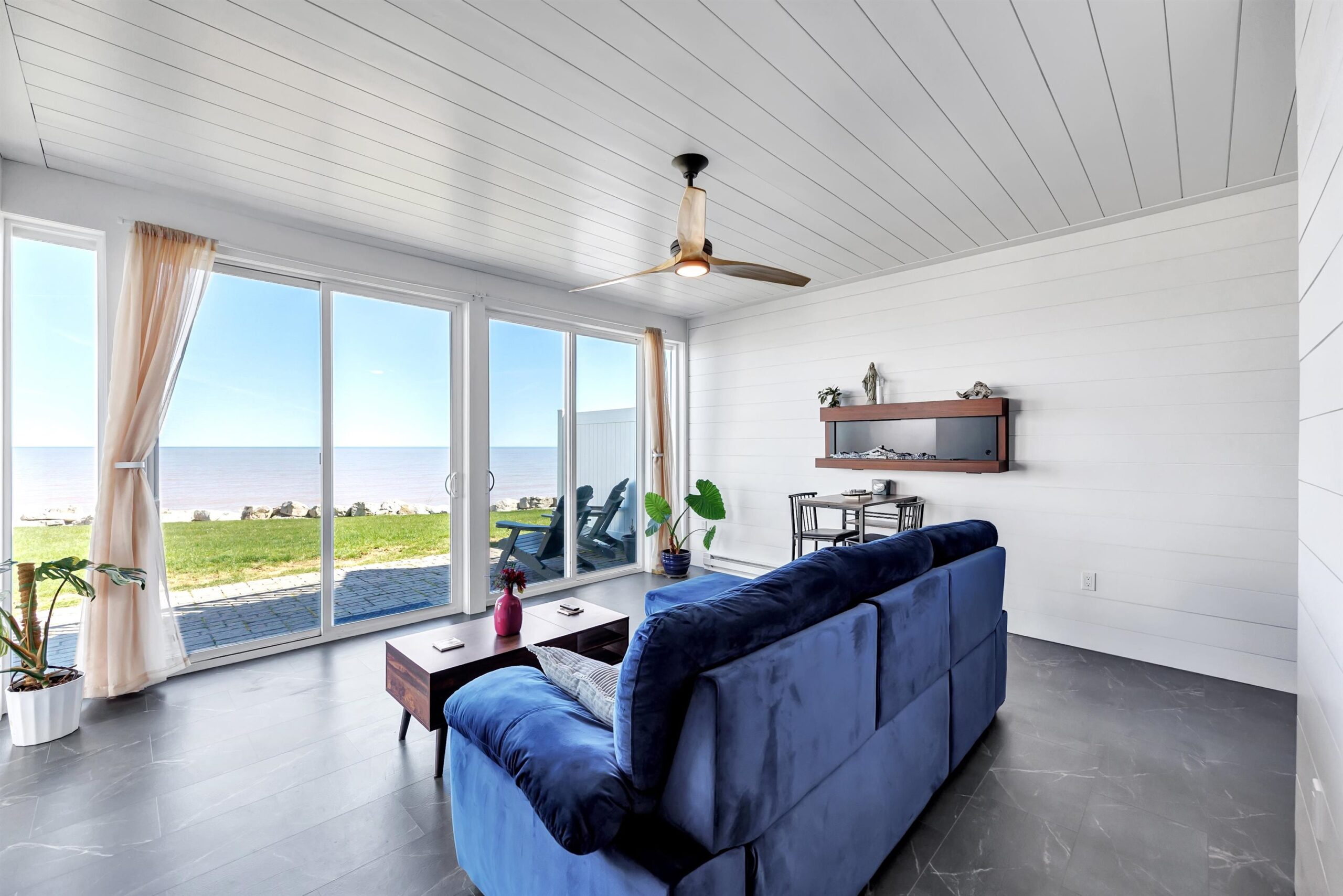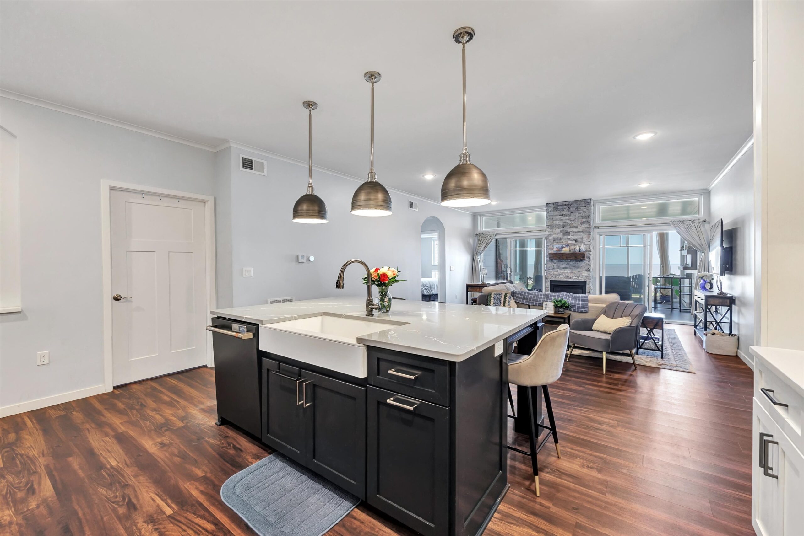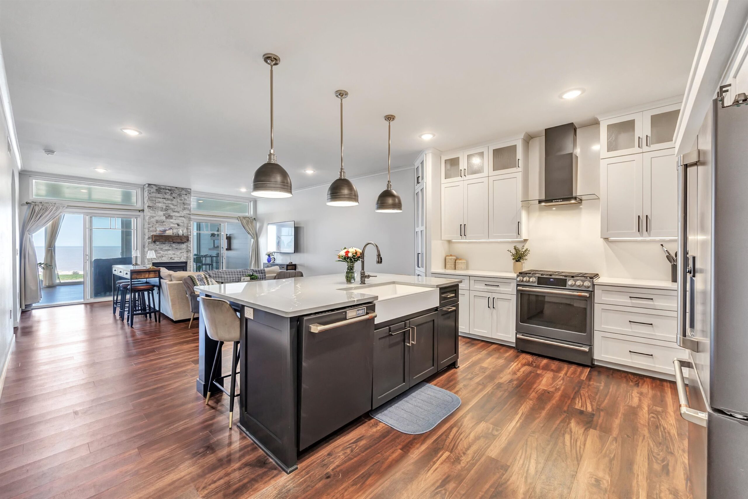 Experience tranquil lakefront luxury at Bell Harbour! This rare 2022 Showcase unit is just 50ft from Lake Michigan. Spanning 1800+ sq ft of one-level luxury living, it offers a generous 3 beds, 2 baths, vaulted ceilings, maple cabinetry & in-floor radiant heat to keep your toes toasty. The open-concept living area features a stone-faced gas fireplace. The gourmet kitchen is dreamy w/ high-end finishes, quartz counters, gas stove & w/in butler’s pantry. Relax in panoramic water views from the gorgeous 4-season room or walk to sandy Algoma beach & lighthouse. Includes an attached garage plus a 2-stall tandem detached garage, ideal for boats & gear. Enjoy the maintenance-free, "lock & leave" condo lifestyle! A great getaway or year-round home just 20 miles from Sturgeon Bay! Virtual coloring.