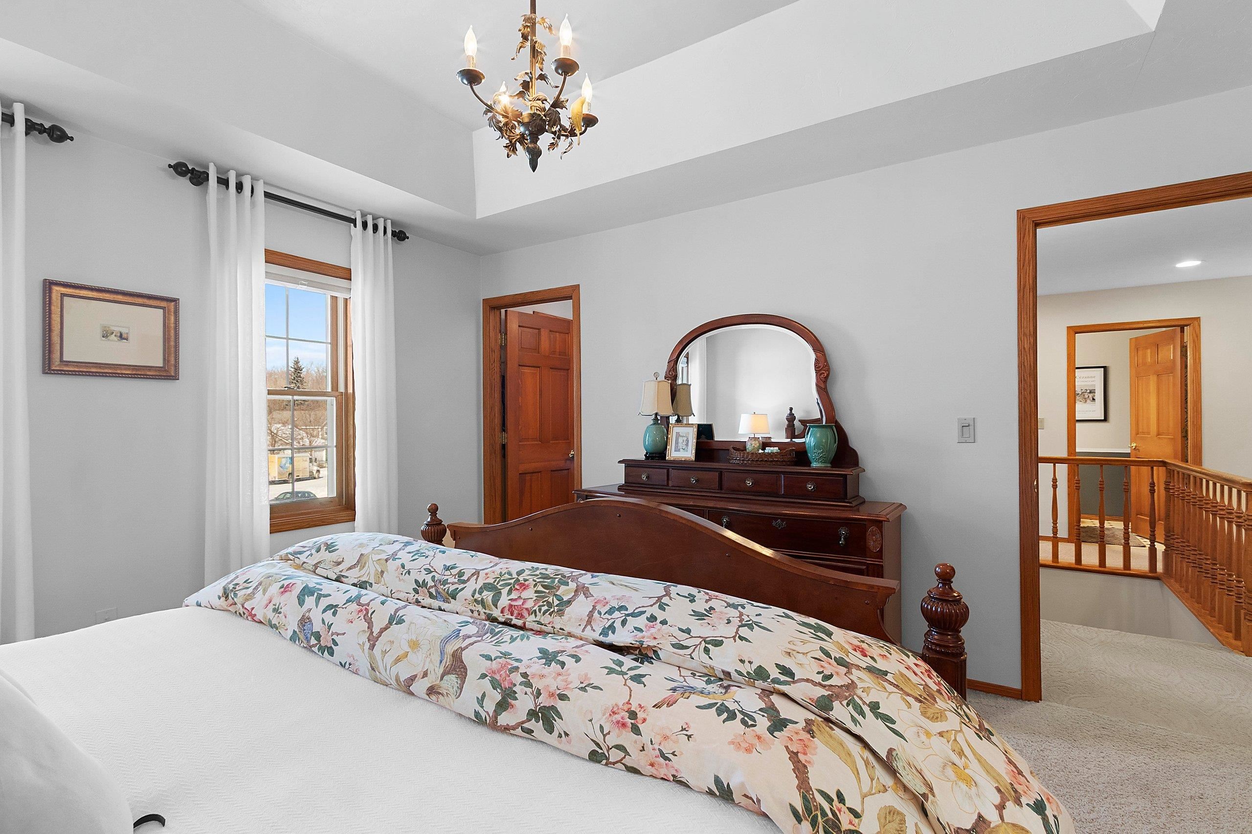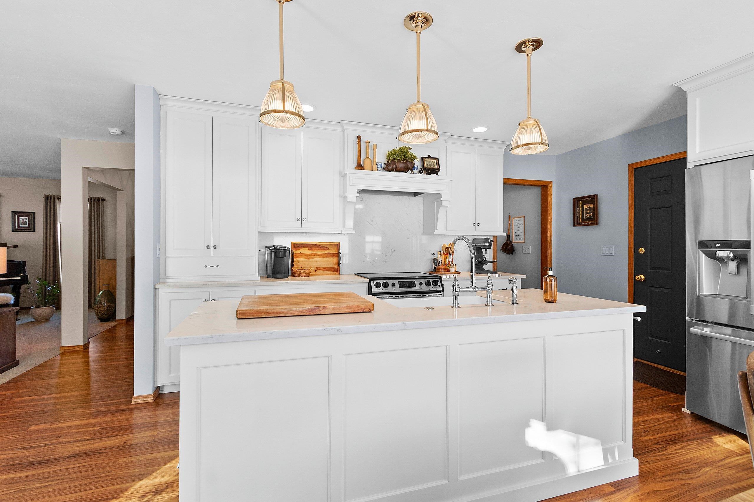 Welcome to this stunning 4-bedroom, 2.5-bath home just steps from Red Smith School! This tastefully updated residence features a dedicated office with built-in cabinetry, perfect for working from home. The gorgeous kitchen showcases painted white custom cabinets, quartz countertops, and a large center island flooded with natural light. Relax by the oversized fireplace in the spacious living area. Retreat to the primary suite with private bath featuring a relaxing whirlpool tub. The three-car heated garage provides ample storage. Step outside to your 12'x32' composite deck overlooking a backyard gardening oasis with raised garden beds, potting table, and charming garden shed. Whether you're an avid gardener or enjoy outdoor entertaining, this beautifully landscaped retreat is perfect