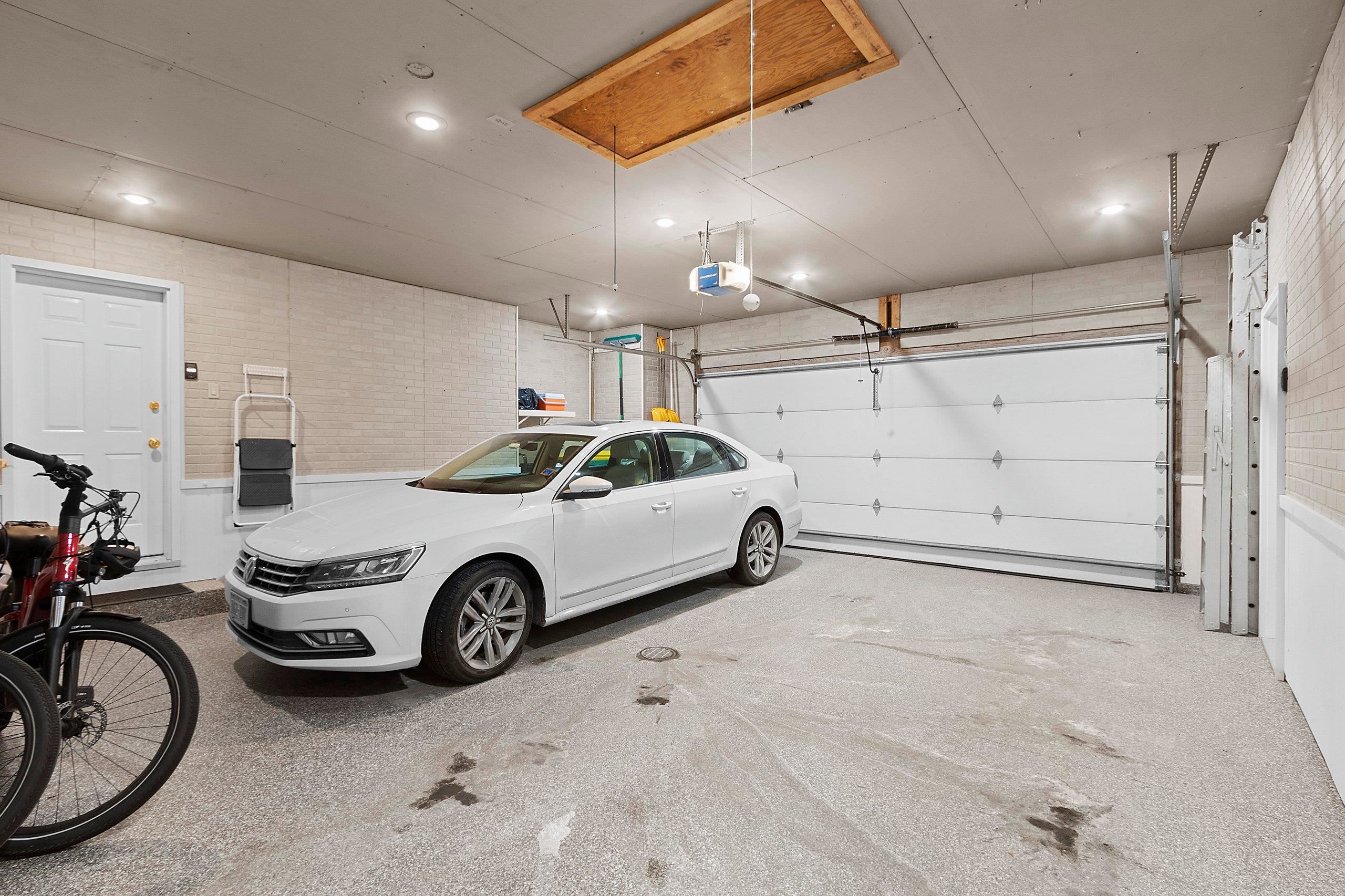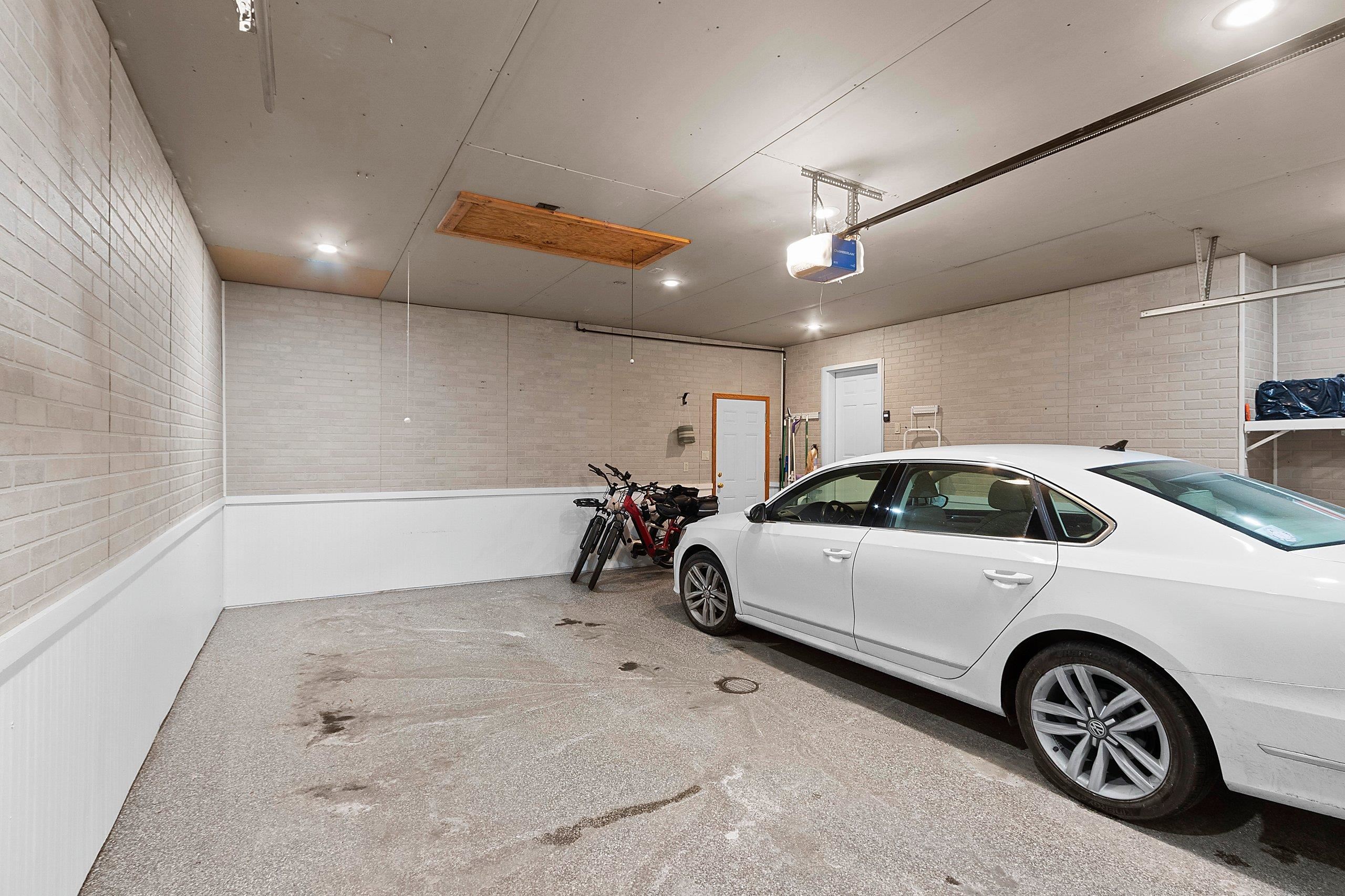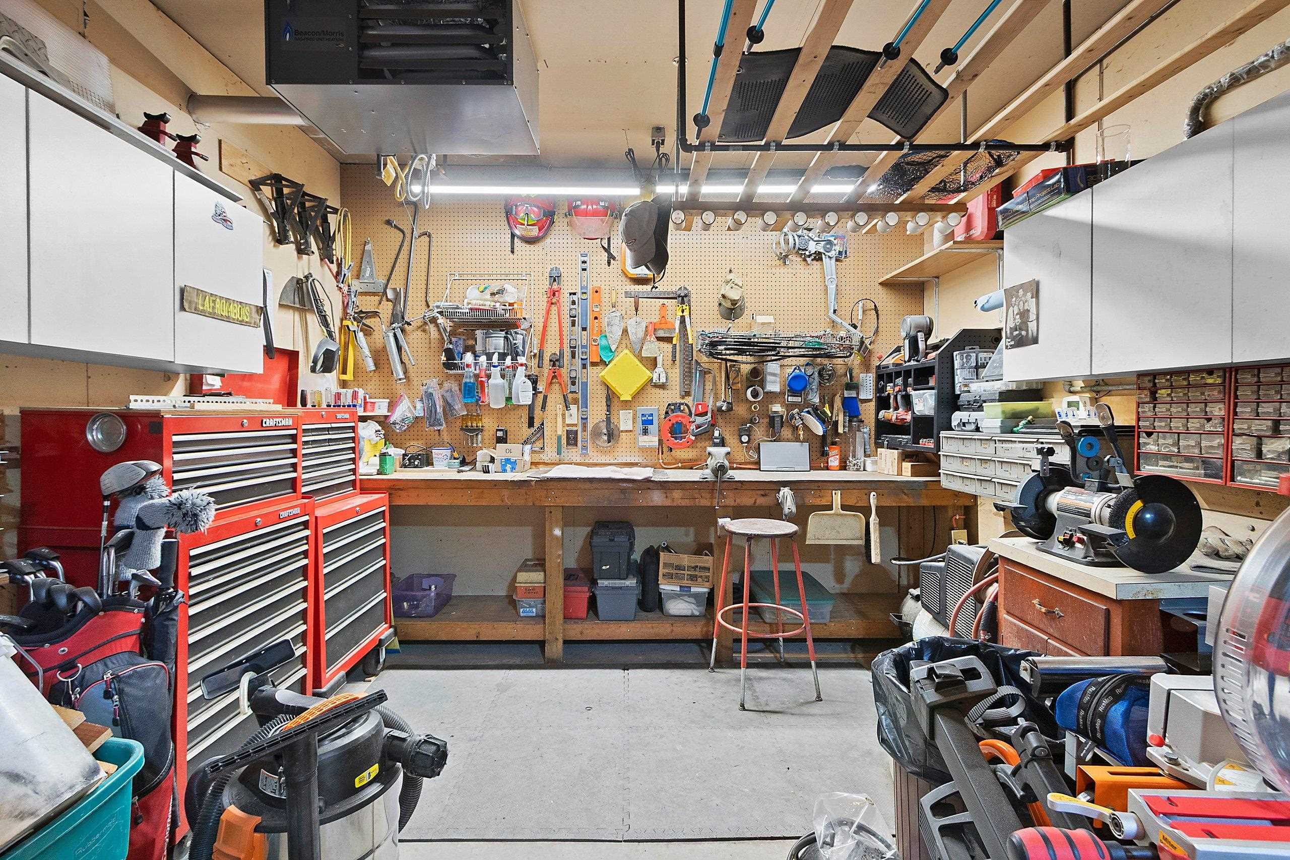 Range, refrigerator, dishwasher, washer, dryer, door openers with two remotes, work bench in garage, attached garage cabinets, garage heater