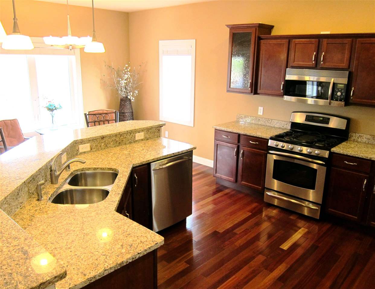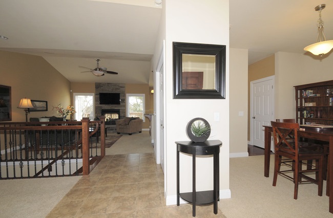 JUST LISTED! Stunning Custom Design and built Ranch. Up-scale amenities. Great room w/ 2-way interior/exterior fireplace, cathedral ceilings. Opens to Gourmet kitchen-stainless appliances, granite counters & breakfast bar, gorgeous cabinets, flooring. 9 ft. ceilings both levels. Master-spacious, walk-in closet, walk-out to deck, bath w/artistic tile, granite, double vanity. Main level office/3rd bedrm. Big entertainment rm - wet bar/granite counters. Walk-out patio to woods.