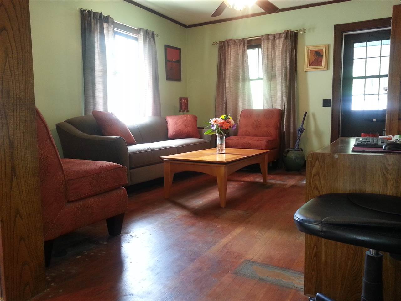 BRIGHT, OPEN and ADORABLE, this 3-bedroom bungalow exudes charm! It features loads of windows, hardwood floors, a main-floor bedroom, a one-car garage, large, sunny, 3-season front porch and an expansive, shady back deck. Although move-in ready, with a little TLC and your personal touch it could really sparkle. Home is being sold "as is" and measurement are approx. Showings: 800-746-9464