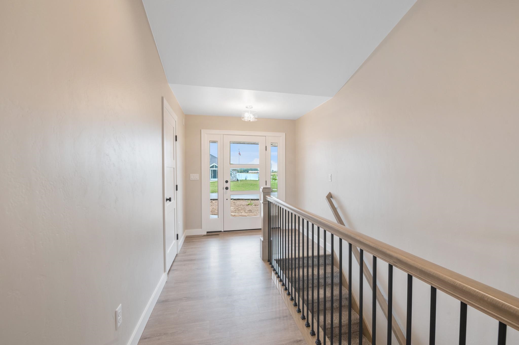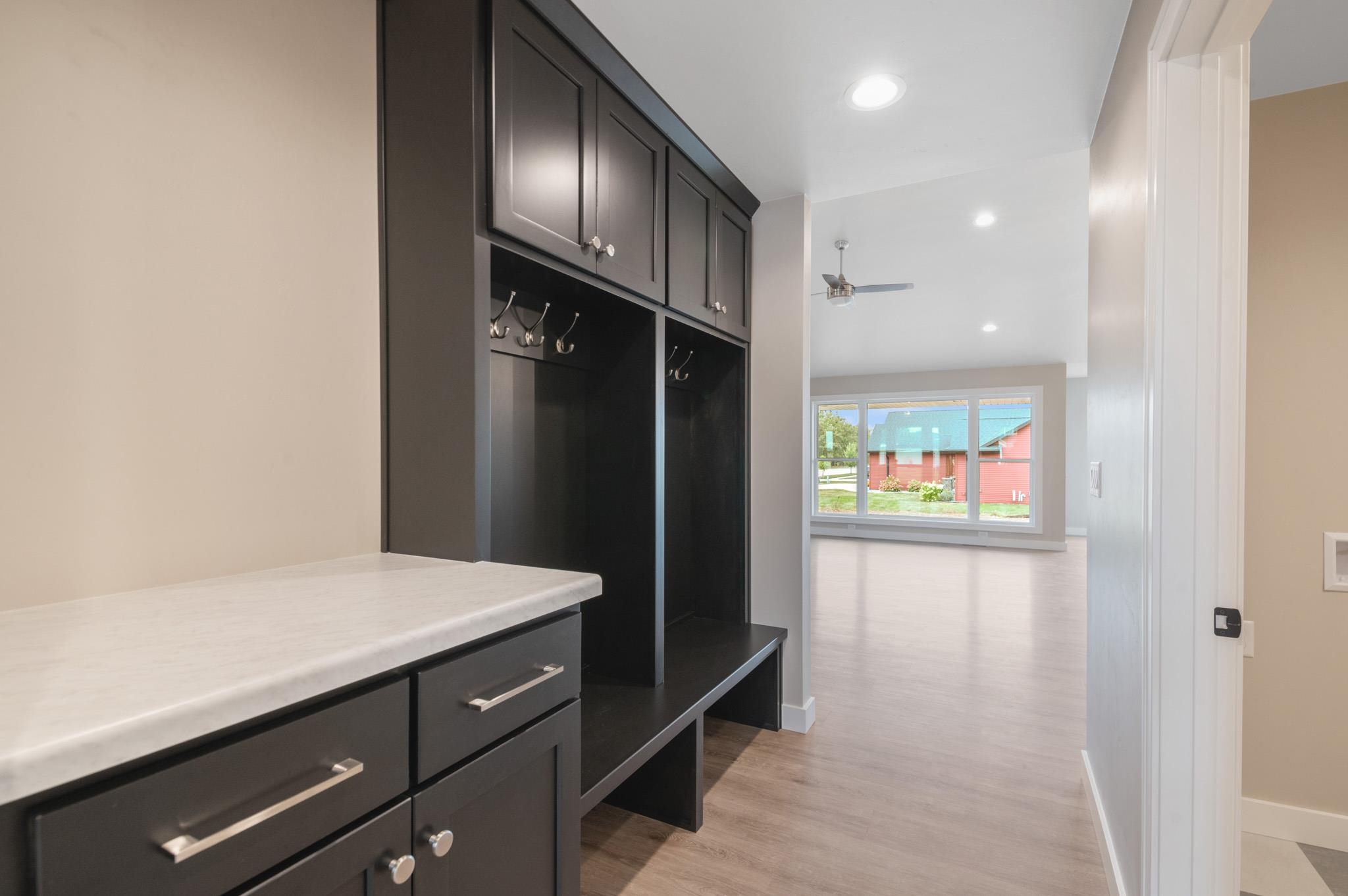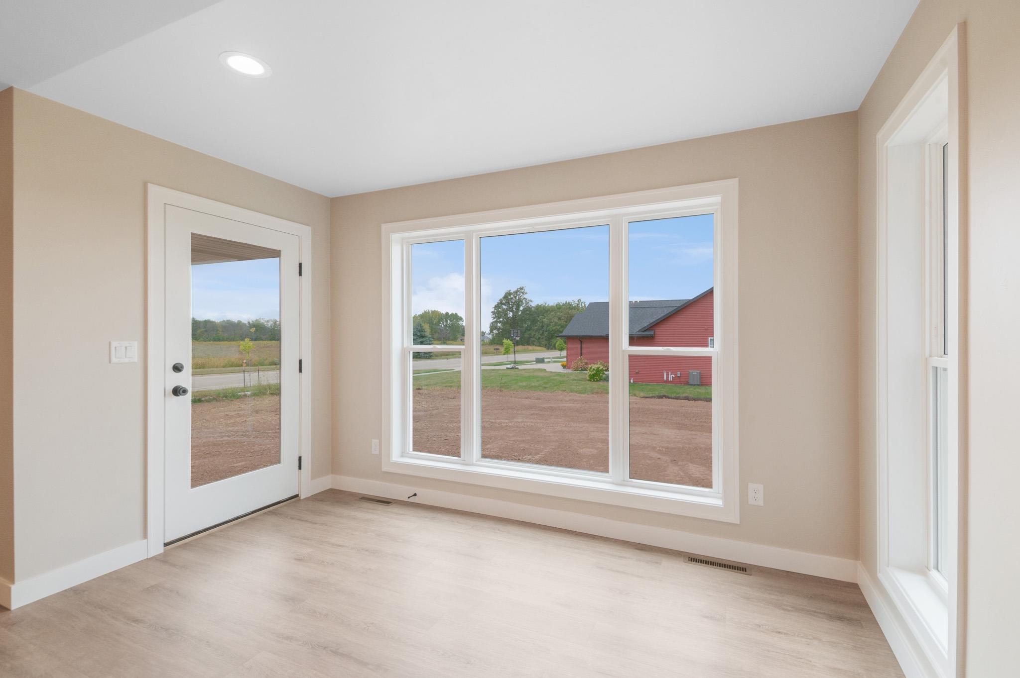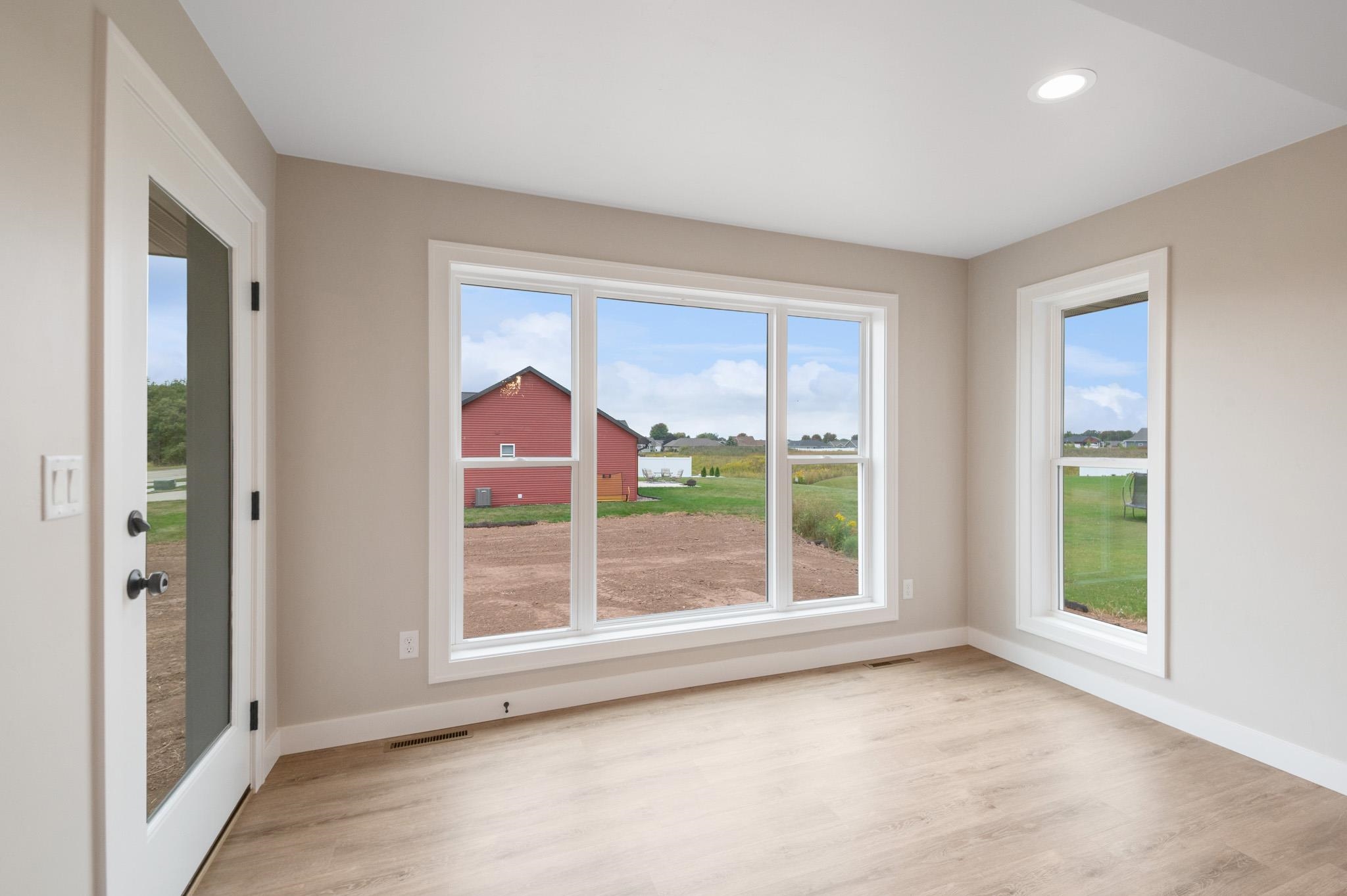 Welcome to the beautifully designed Oakdale Model! Step inside to an open concept layout filled with natural light, highlighted by large windows, a cozy gas fireplace, and a designated dining area that flows seamlessly into the living space. The spacious kitchen boasts high-end finishes including quartz countertops, a sleek tile backsplash, and a generous 6x8 walk-in pantry ideal for storage. Thoughtfully designed with a split-bedroom layout, this home includes a convenient locker system, laundry room, and a half bath with direct access to the oversized 3-stall garage. The luxurious primary suite features custom tile shower and walk-in closet. The lower level is prepped for future expansion with plumbing for a full bath and an egress window. 12x12 composite deck included!