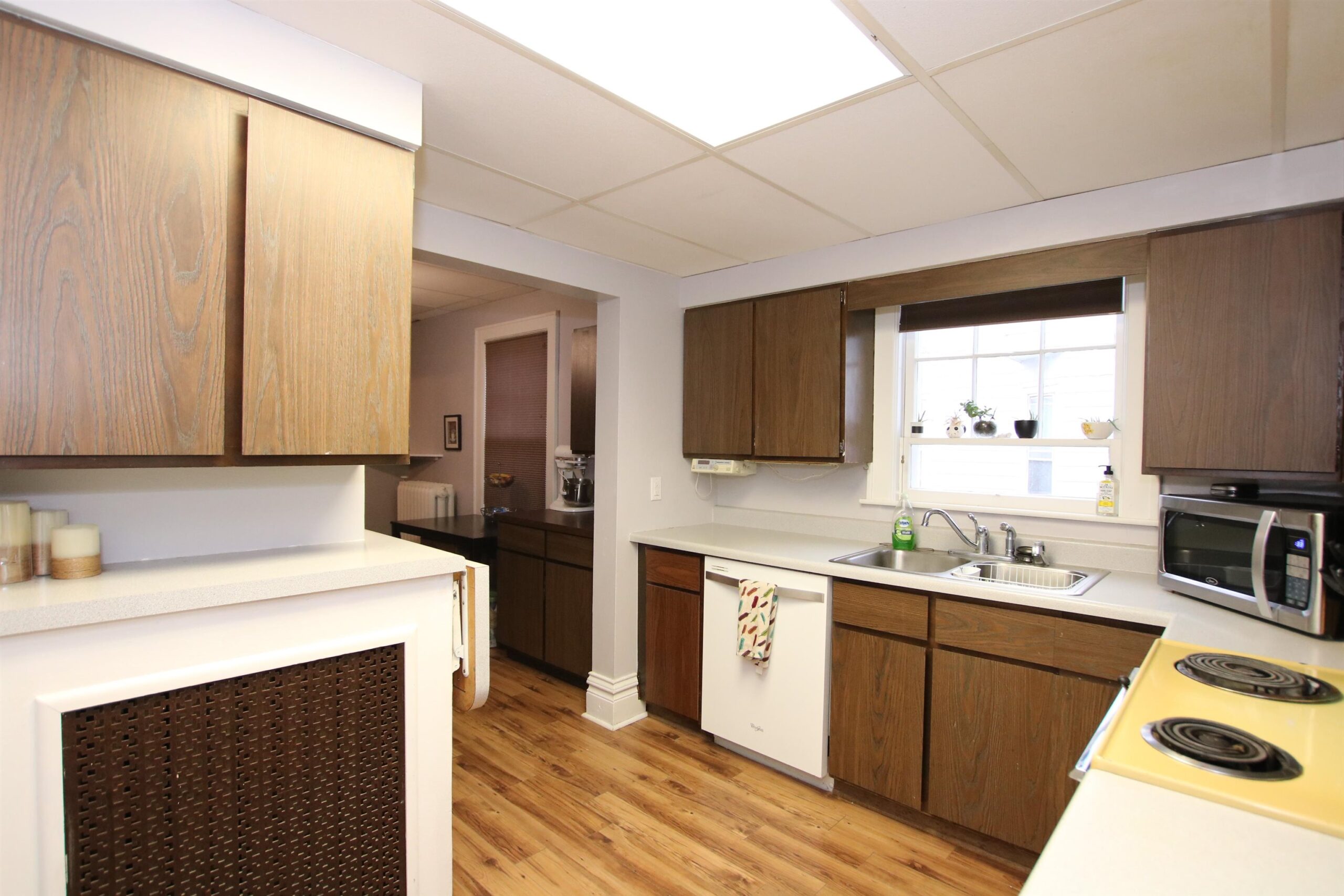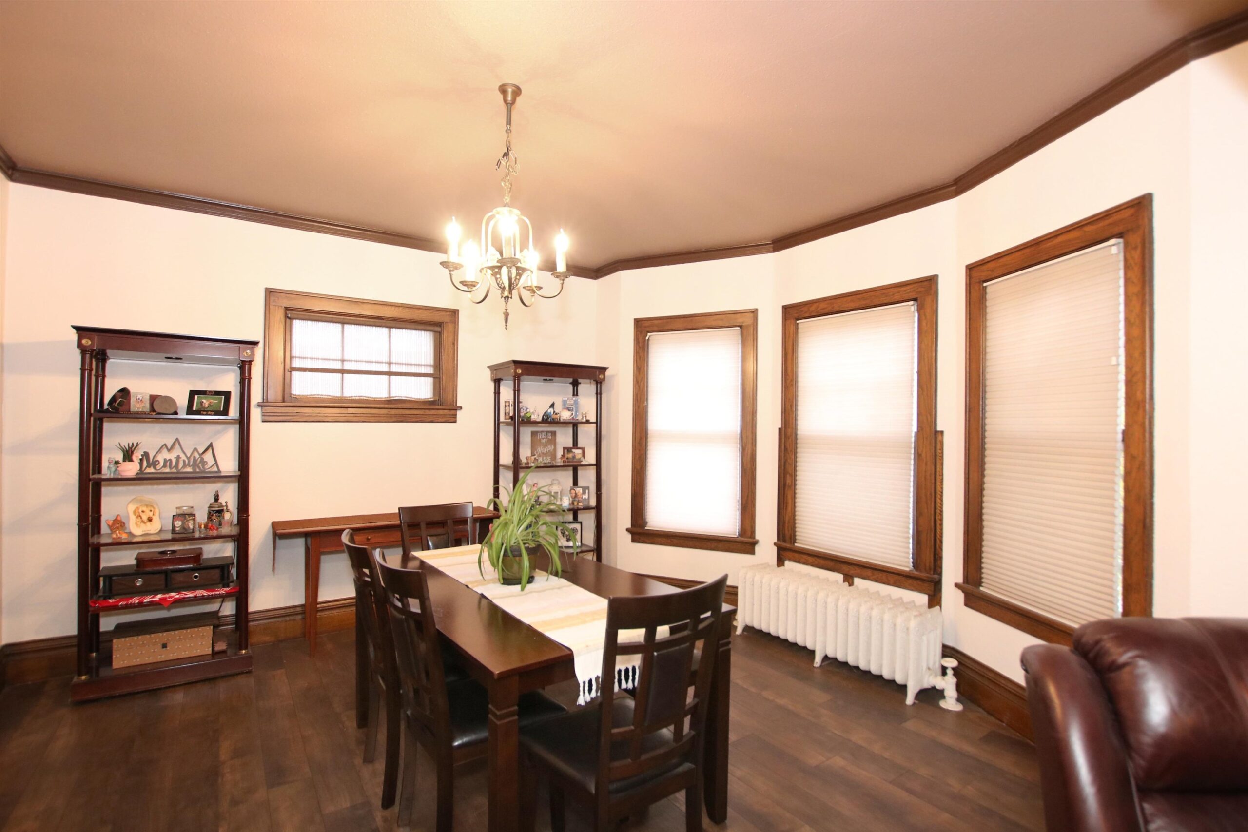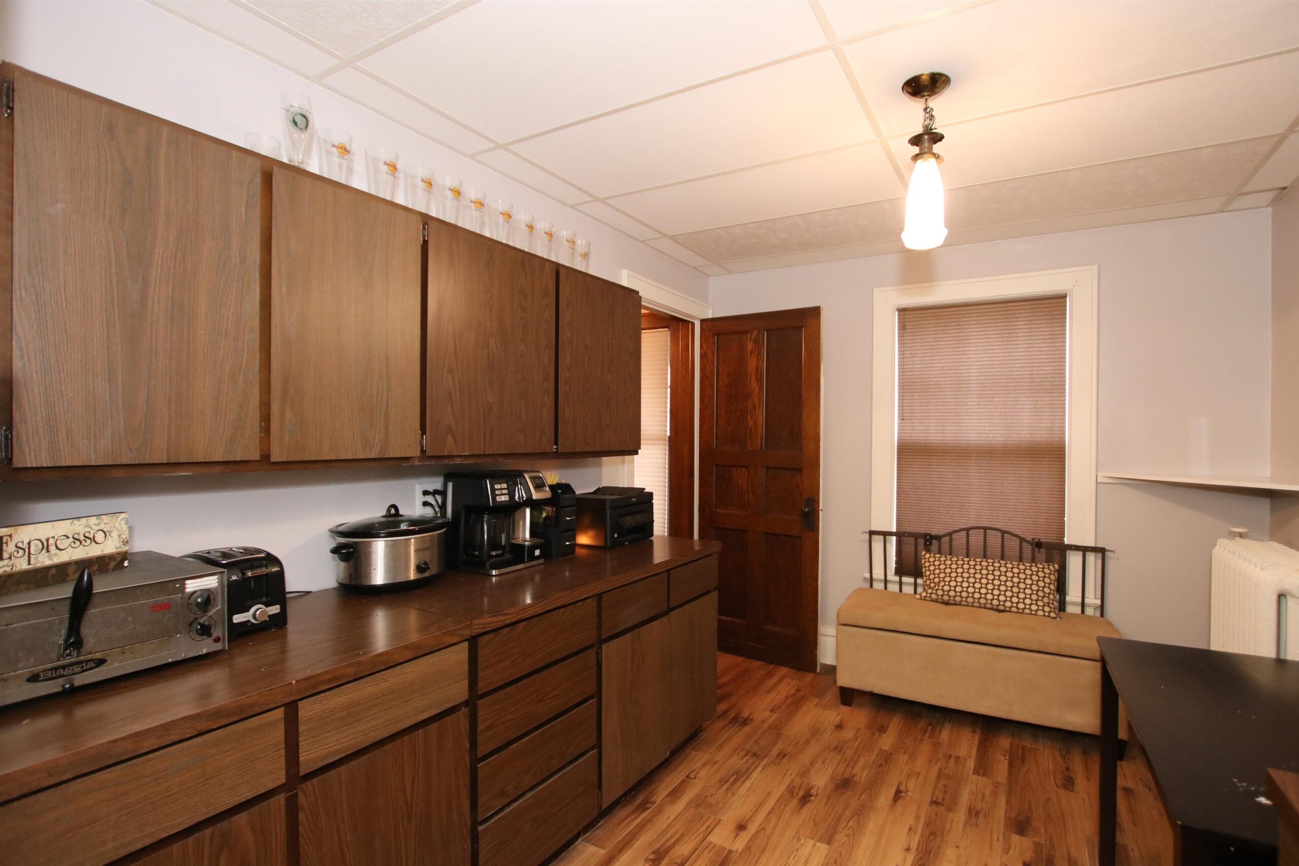 This 4BR, 1.5BA has so much charm and character! Main level has newer laminate flooring, spacious living room, formal dining room and half bath. Just off the kitchen you will find a kitchenette that would be perfect for a coffee nook and storing all those crockpots! Hardwood floors in most of the bedrooms. Walk-up attic provides more than enough storage! Wrap around front porch oversized 1.5 car detached garage.