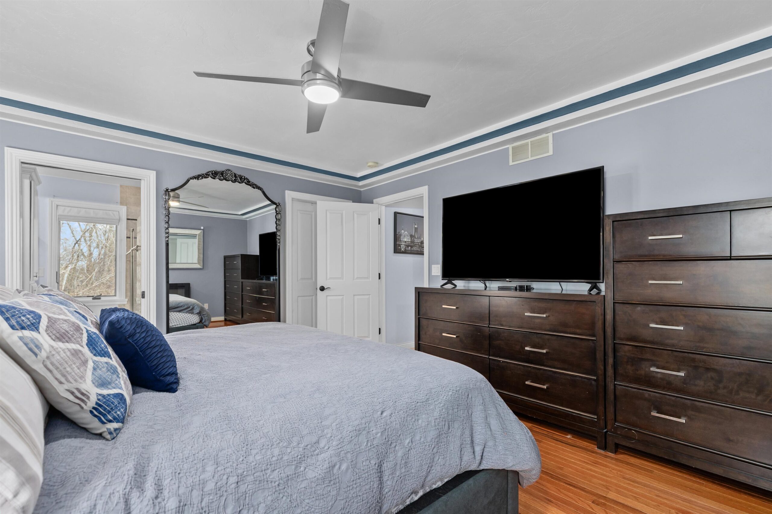 Beautiful former Parade home on a quiet cul-de-sac w/ a rare wooded back lot. The cook’s kitchen features granite countertops, white cabinetry & opens to the dining area & Great Room w/ high volume ceilings & deck access. Perfect for entertaining or relaxing. Main floor includes an office, laundry & half bath. Upper level offers a spacious primary suite w/ walk-in closet, dual sinks & tiled shower, plus two add bedrooms & a full bath. The walk-out LL expands your living space w/ a bright Rec Room featuring daylight windows, a cozy gas fireplace & an add half bath. Movie nights are a dream in the fun theater room, complete w/ projector, screen & seating—all ready for you to enjoy. Lg 3 car garage & close to Patriot Park. Offers being presented Tuesday evening. Offers due 3/31 by noon.