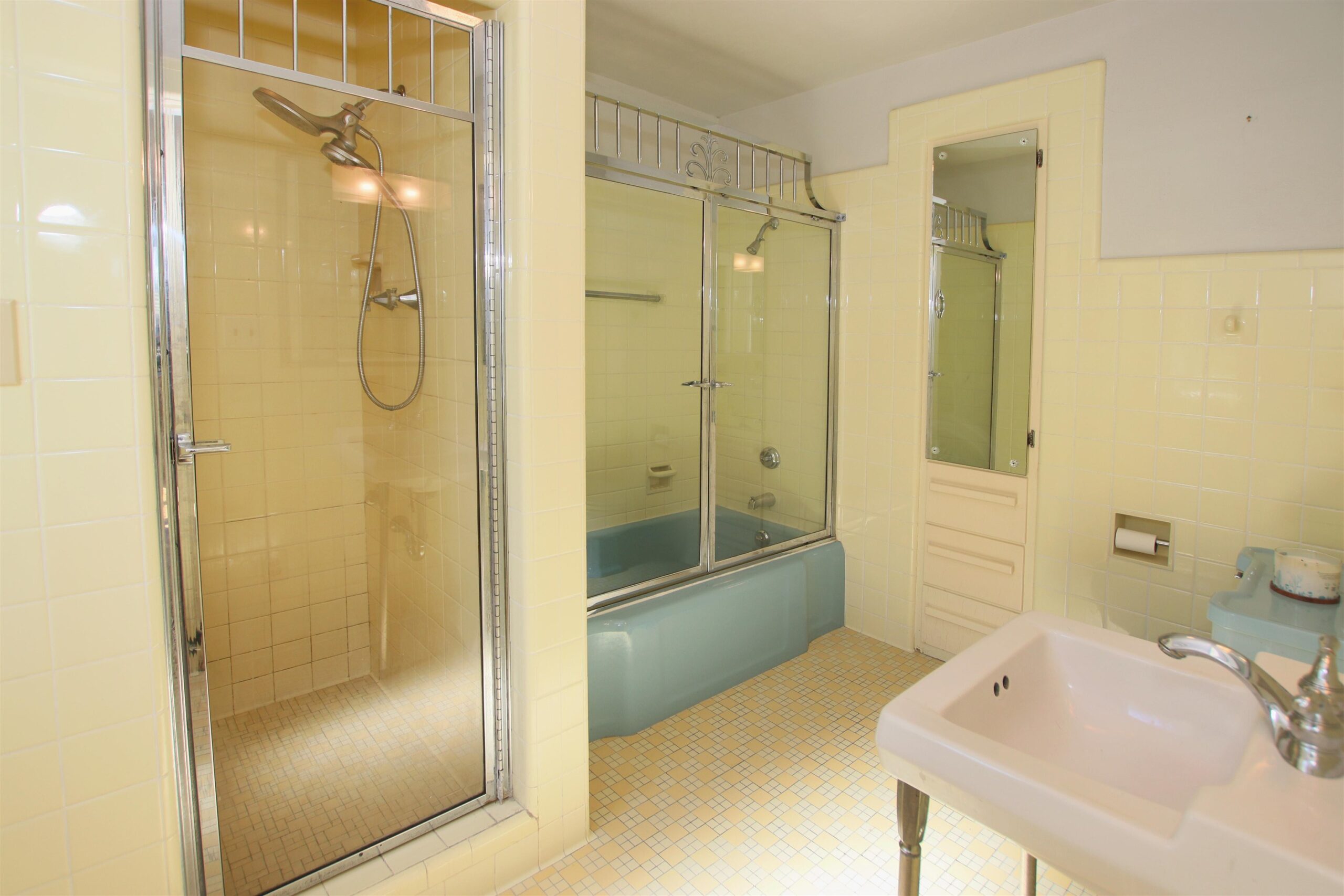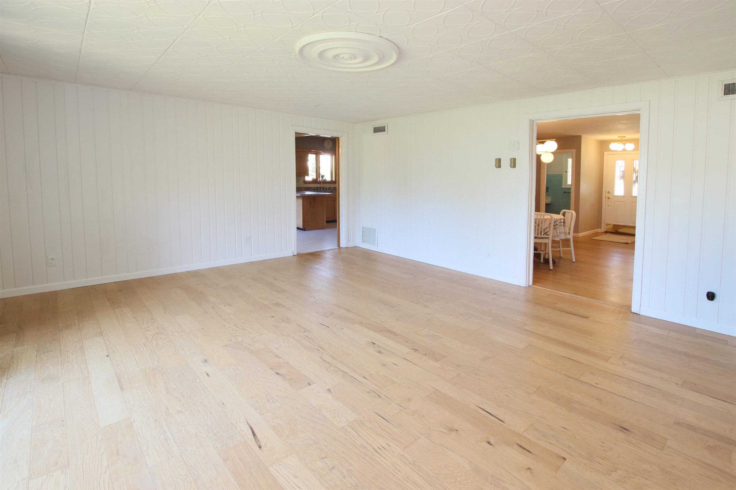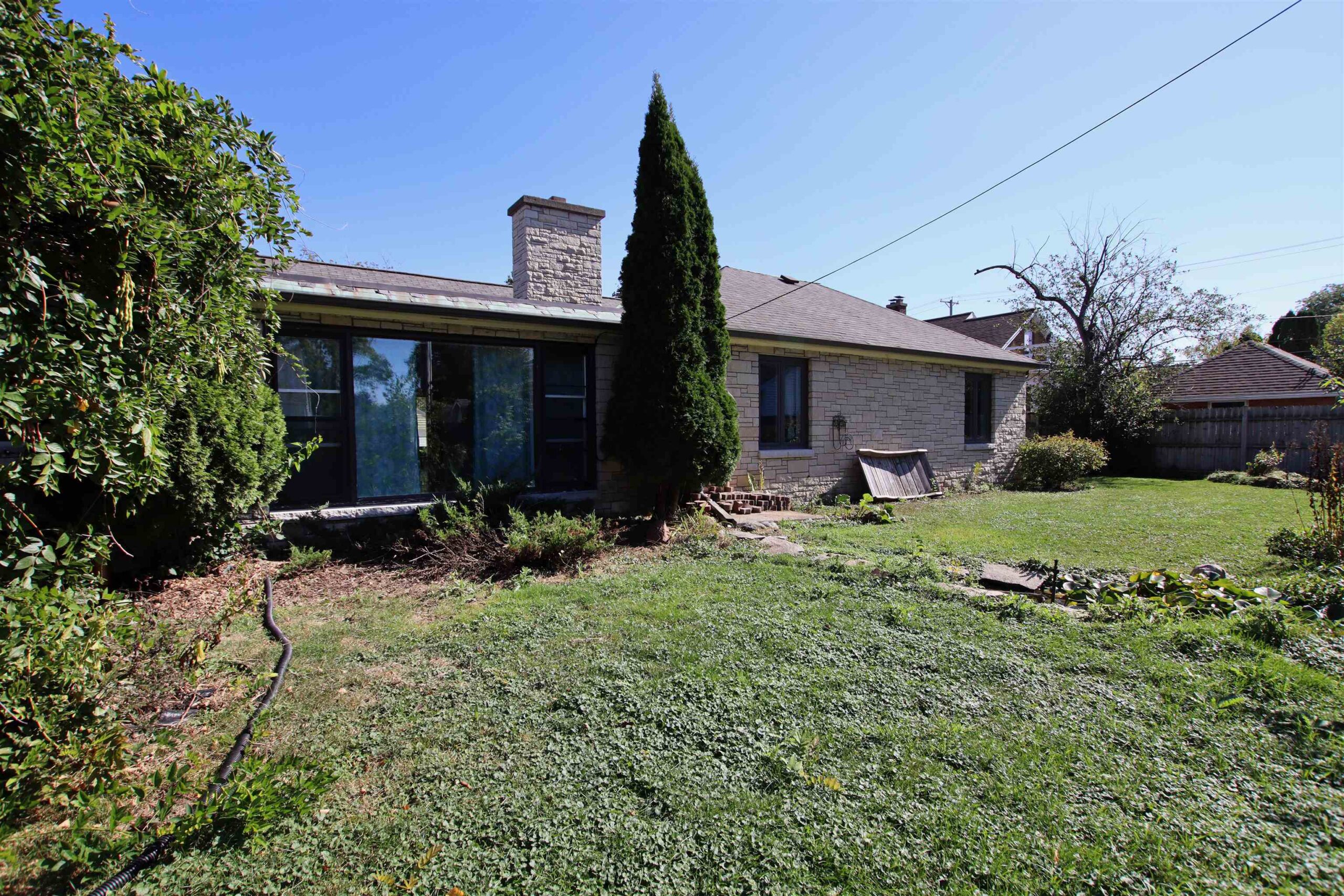 Looking for a character filled mid century ranch home? This 4bed/3bath 2466 sq ft stone house has it all! Step inside to a huge front living room/ dining area with a charming wood burning fireplace, beautiful engineered white oak, wide plank wood floors throughout the main level, updated light fixtures, family room with built in shelving, heated floor, large window overlooking a very private, fenced in backyard, spacious eat in kitchen with room for a dining table. Large Primary bedroom has a private full bath with lots of closet space, 3 more nice sized bedrooms and 2.5baths with all original tile from the 1940's. Rec room in LL for extra living space with painted concrete flooring. Stone exterior and an attached 2 car garage make this home easy to care for!