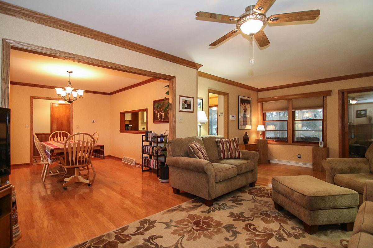 No showings until open house at 1 pm, Sunday 4/12. Looking for a home in the country yet convenient to town? Where you can comfortably experience the outdoors from the expansive year-round sunroom? Hardwood floors, nicely updated spacious kitchen with a retro stove, large den with private entrance, large dining room, 3 bedrooms and 2 updated baths, partially finished, clean, dry basement, & large driveway with extra parking space? You need to check out this fabulous home! UHP Warranty included.
