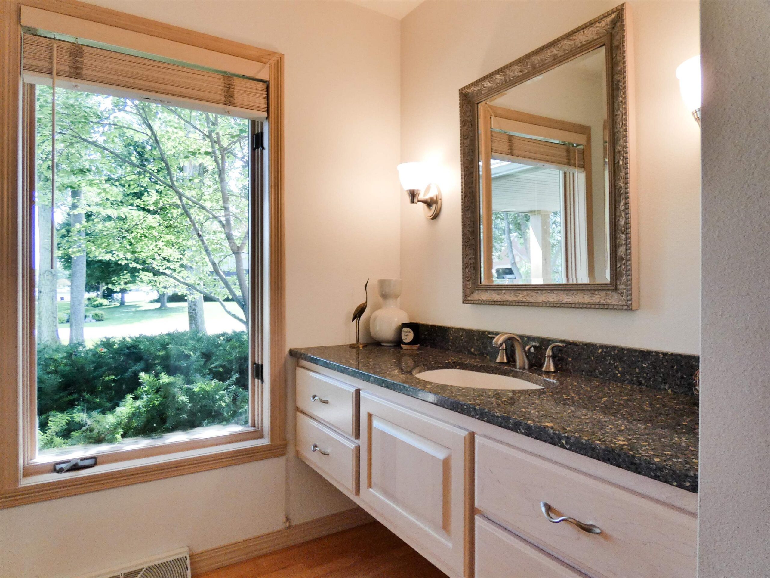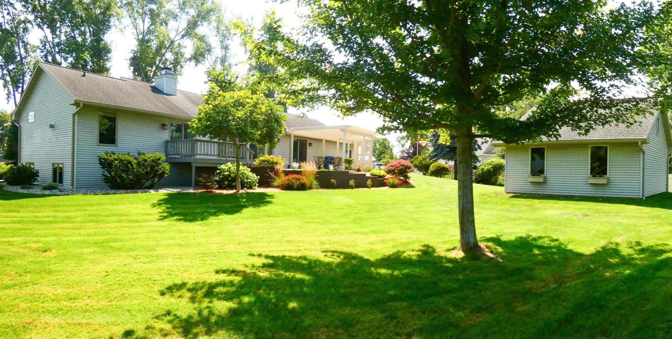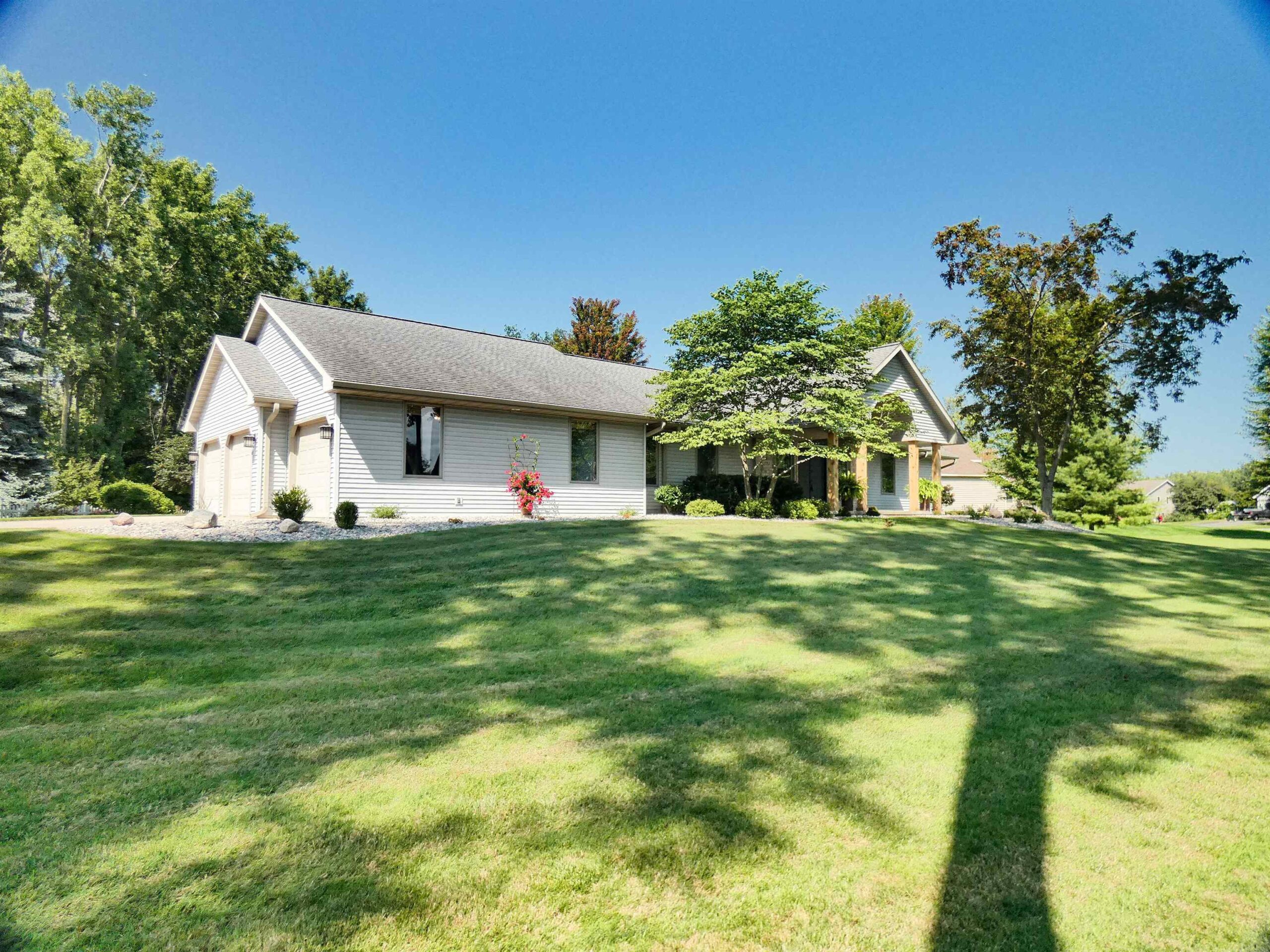 Impeccable Ranch Home w/ access to swimming & boating on Lake Leone. Breath taking Gem w/ beautiful updates & perfect landscaping. Double doors open to pillars, arches, vaulted ceilings, recessed lighting, transom windows, daylight galore! Hardwood floors, wide patio doors, Herringbone tile Primary bedroom fireplace. Heated slate floors (in laundry room), Heated tile floors (in primary bath). Granite counters, islands, & vanities. Subway tile backsplash. Deck, Patio, and Pergola. Garden shed that's the envy of the neighborhood (OH door, Loft storage, 100amp service). A botanical paradise of Perennials. LL Sq Ft per seller.