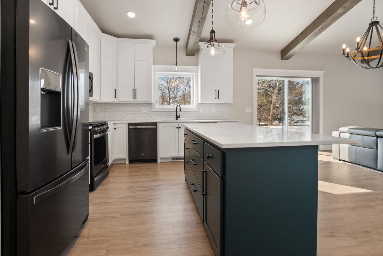 Enjoy low-maintenance condo living with this quality built new construction with 4 bedrooms and 3 full baths! Quality amenities throughout. Conveniently located just 20 minutes from Green Bay and only 10 minutes from Suamico’s popular restaurants and shopping. this beautiful condo offers easy highway access and zero-entry into both the home and heated garage. LVP, quality cabinetry, and two fireplaces with stone surround with wood beamed vaulted ceilings in the living room and wood beamed tray ceiling in primary bedroom. The primary suite includes a walk-in closet, dual sinks, and a tiled shower First-floor laundry. Finished lower level offers extra living space and a built-in bar, gas fireplace, 2 bedrooms with egress windows and a full bathroom