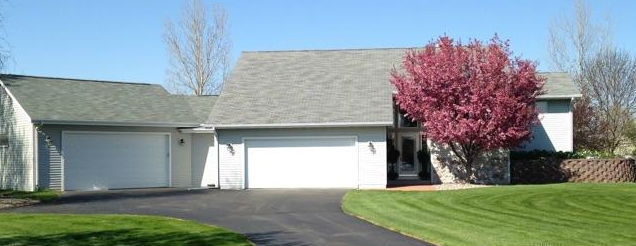 Former Parade Home with many updates includes addition to garage to make it a 4+ garage with phenomenal storage. 10x18 shed, gardens, with. big deck overlooking beautiful lot. Kitchen with granite counters on island. Plentiful cabinets for the experienced chef and open to chat with family. Lower level offers fireplace in rec room & 3rd & 4th bedroom, full bath & large closets throughout. WIC's in 2 bedrooms. Open floor plan. contemporary design with cathedral ceilings on a quiet rural street.