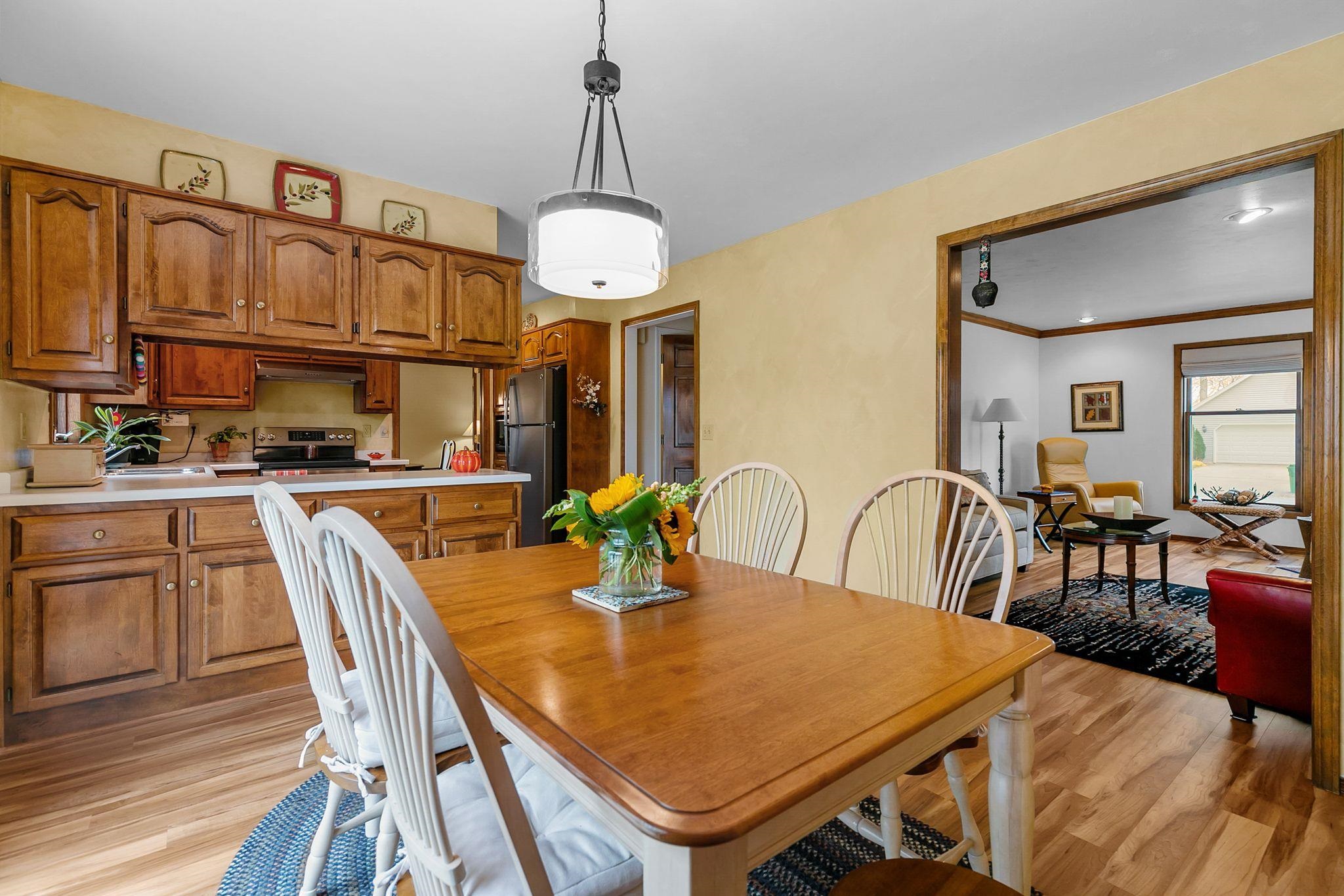 This beautifully preserved two-story, 3-bedroom, 2.5-bath home has everything you’ve been looking for! The main floor offers both a cozy family room and a welcoming living room featuring a stunning wood-burning fireplace—for chilly Wisconsin evenings. Luxury vinyl plank flooring runs throughout the first floor, leading to patio doors that open to a serene backyard. Upstairs, the spacious primary suite includes a walk-in closet and ensuite bath. Two additional bedrooms and convenient attic access provide plenty of room and storage. Enjoy the partially finished basement and attached 2.5 car garage for extra space/storage. With how meticulously maintained this house has been, you will be able to move right in! Don't miss the long list of updates! Seller requests 48 hrs for binding acceptance