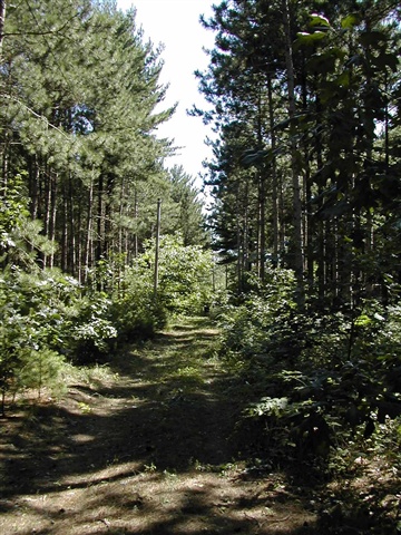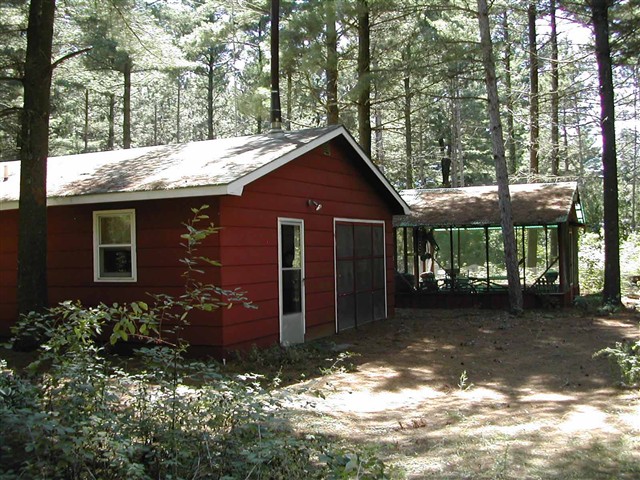 Pineland Lot with a 24' x 28' garage converted to a weekend cabin. Cabin has open floor plan Kitchen/Dinning Combo, Full Bath and area with 2 Bedrooms. Cabin has Septic, Well and Electric. Cabin needs to be winterized not a year around setup.