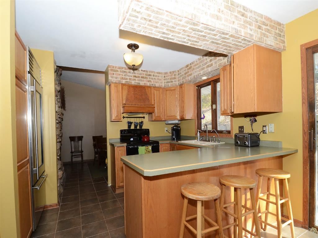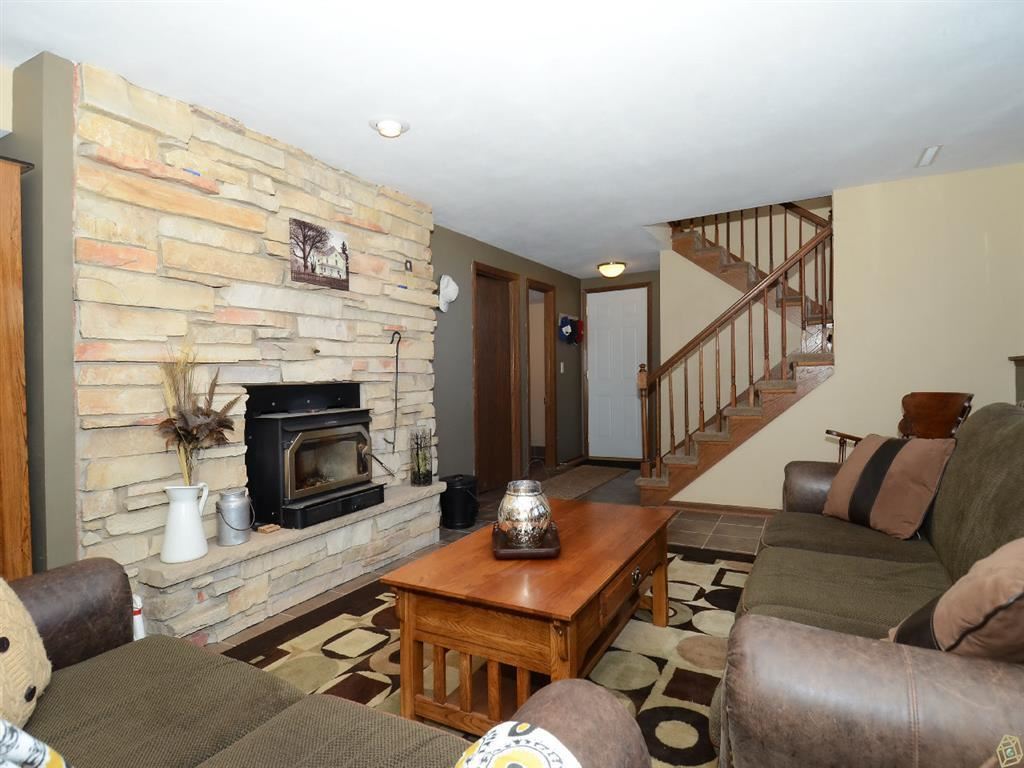 Heated mostly by not 1 but 2 Fireplaces! This efficient country estate rests within an oak grove & near 300+acres of hunting lands. The large eat-in kitchen offers privacy as does the Master bedroom-both w/patio doors to a stamped concrete patio. Formal dining, breakfast bar, westerly sunsets from 2 large family rooms, open staircase entryway to upper/lower, 3 bathrooms, oak floors,new carpets, Vltd ceiling,tiled floors & the blacktop driveway welcomes you to a heated/finished garage.SRM:$249,900-$264,900.