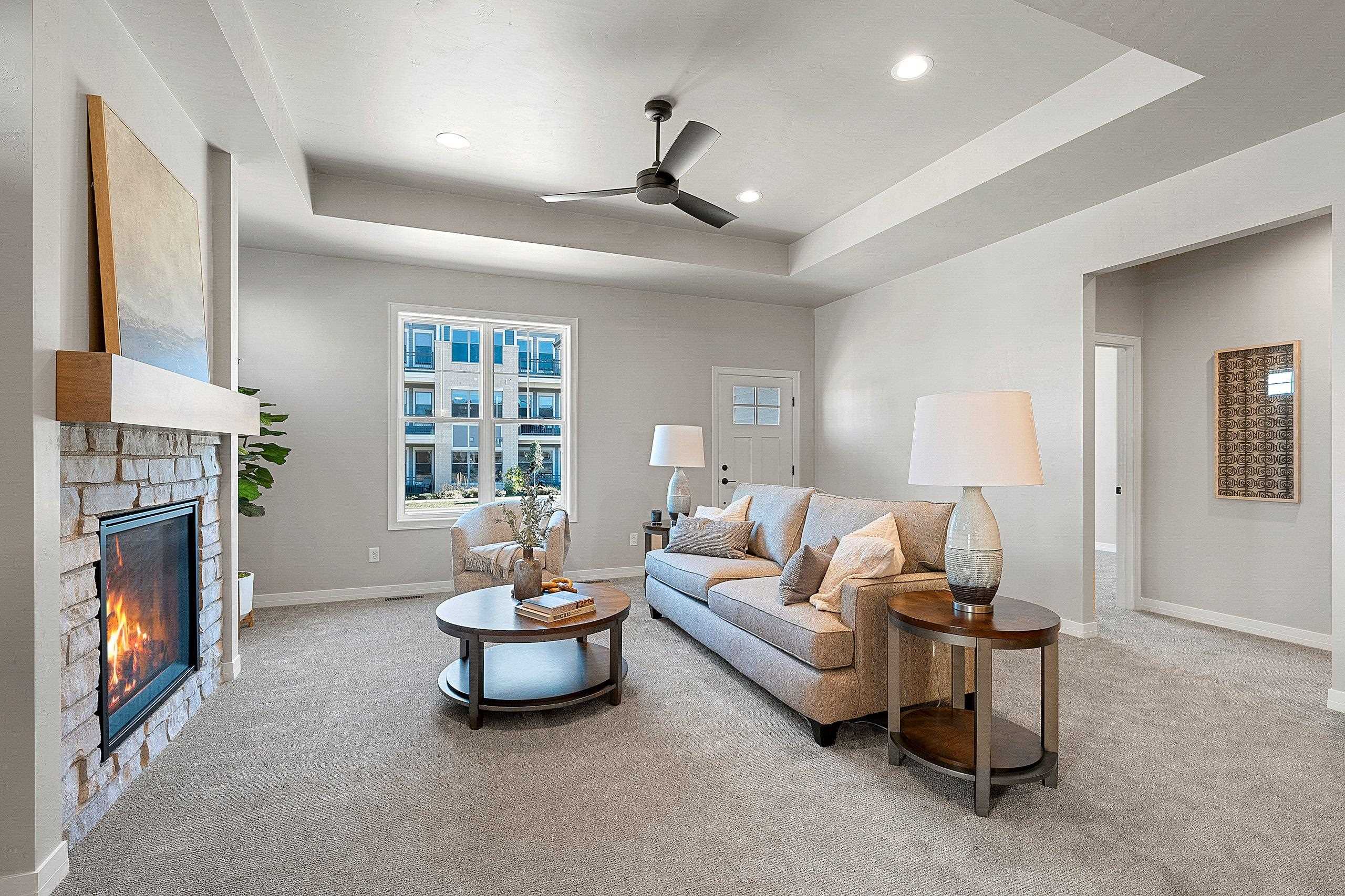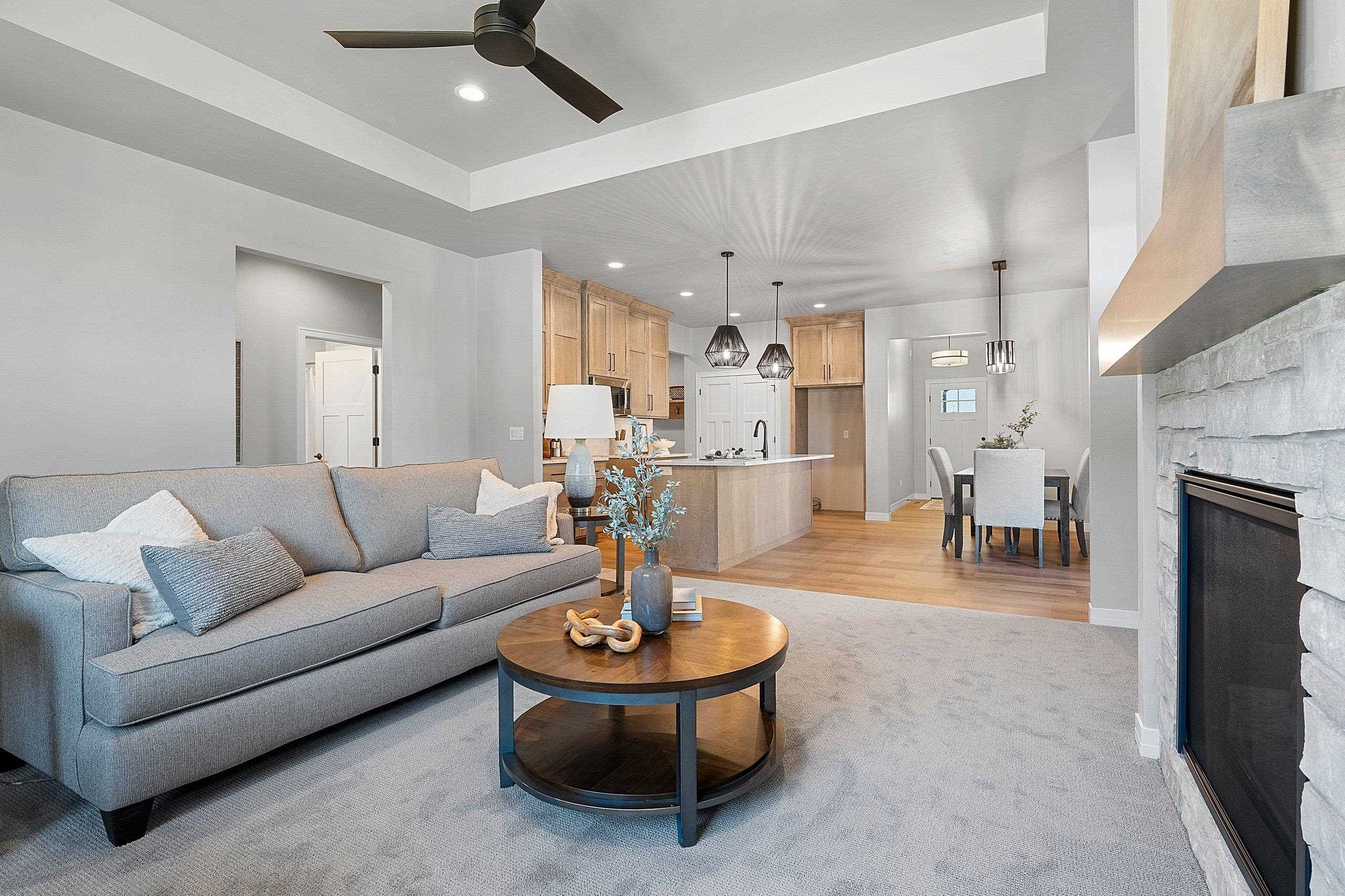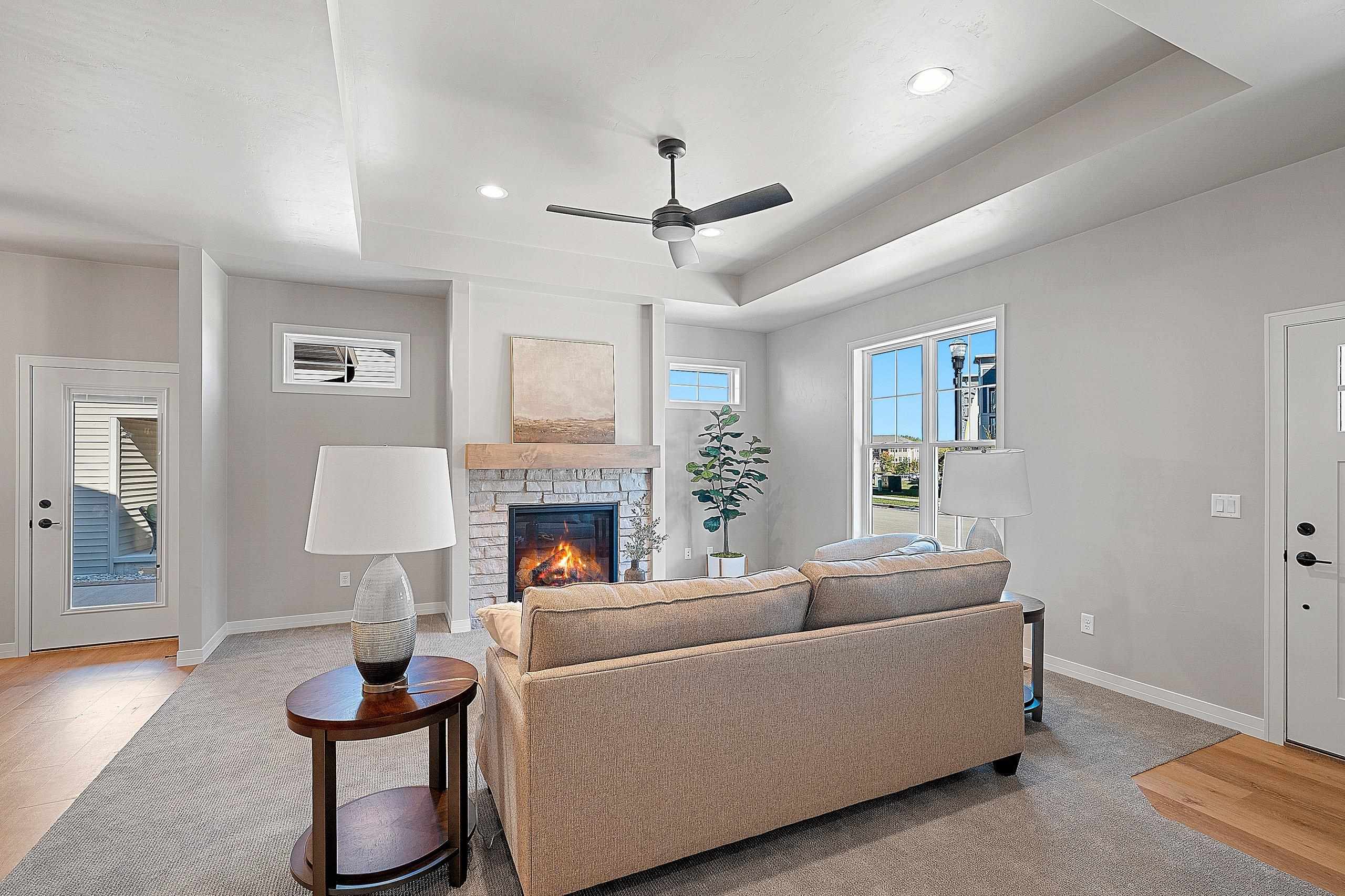 Enjoy the privacy & convenience of this impressive Townhome in desirable location near Howard Commons & walking trails! Zero-step entry w/ attached 2-car finished garage. Townhome features open concept design for entertaining along with beautiful corner fireplace in Great Room for those cozy evenings at home. Inviting kitchen offers large center island & abundant storage. Primary bedroom features an ensuite with private bath complete with dual sinks & roomy walk-in closet. Covered patio off the dining area adds desirable outdoor living space. You will appreciate the extra room to relax & entertain in the finished LL with large Rec Room, 3rd Bedroom & Full Bath. Lawn Maintenance & Snow Removal included. Zero lot line property. Move in & enjoy carefree living! 6/15/25 est. complete.