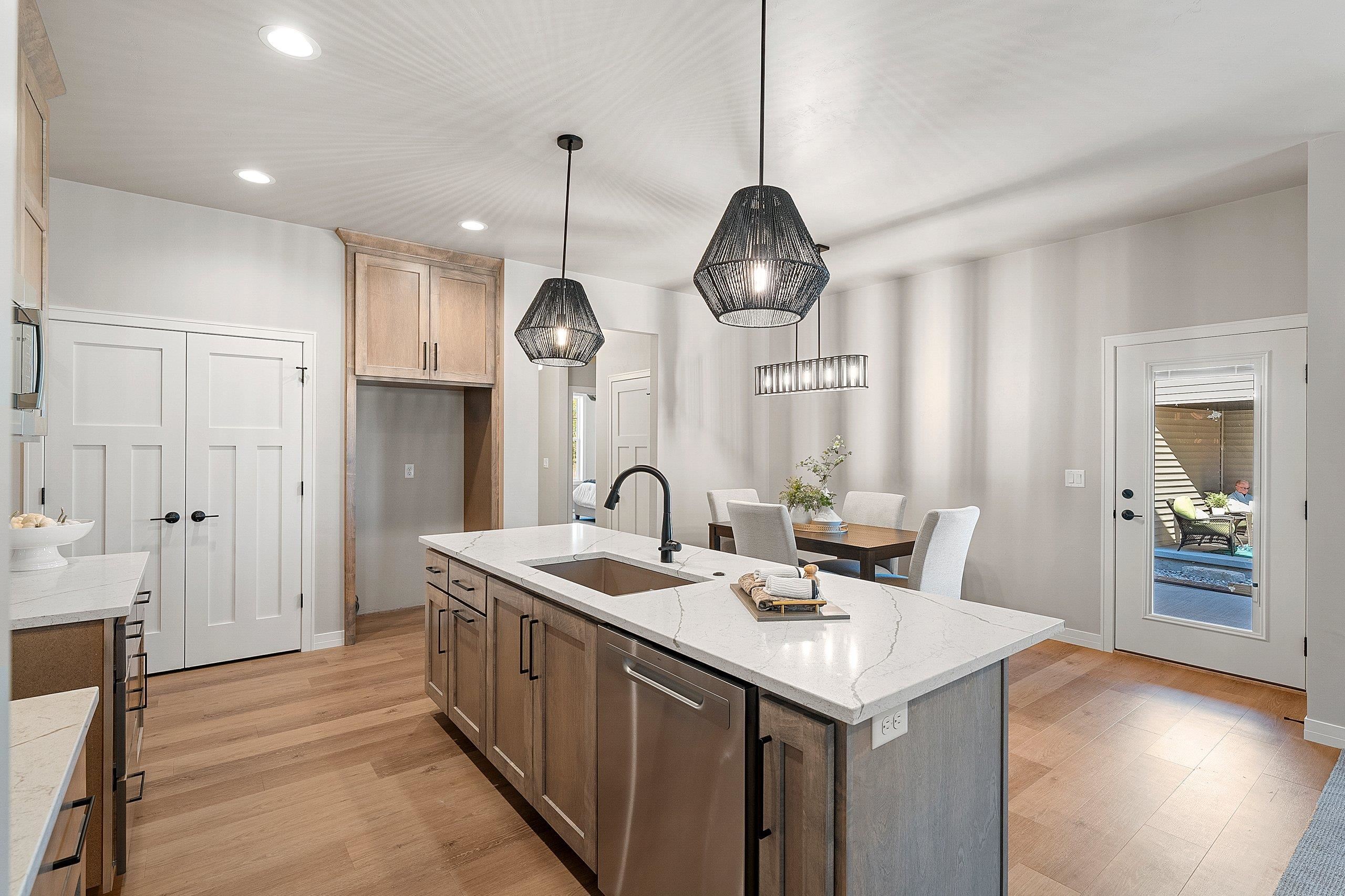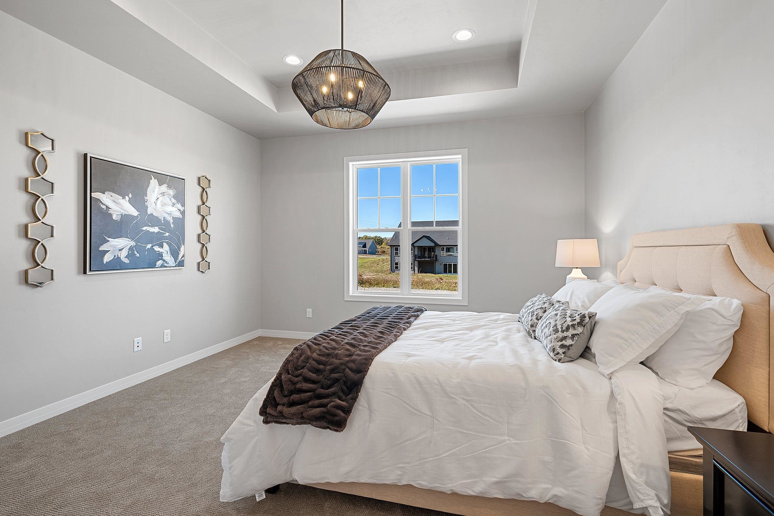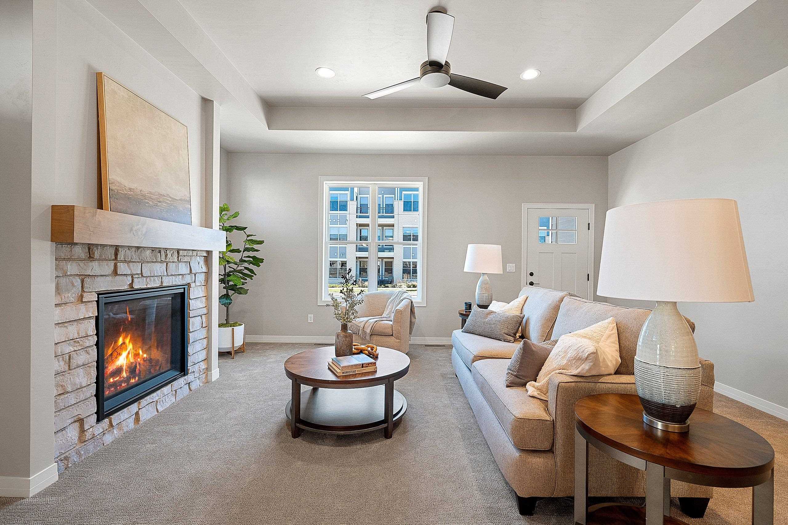 Enjoy the privacy & convenience of this impressive Townhome in desirable location near Howard Commons & walking trails! Zero-step entry w/ attached 2-car finished garage. Townhome features open concept design for entertaining along with beautiful corner fireplace in Great Room for those cozy evenings at home. Inviting kitchen offers large center island & abundant storage. Primary bedroom features an ensuite with private bath complete with dual sinks & roomy walk-in closet. Covered patio off the dining area adds desirable outdoor living space. You will appreciate the extra room to relax & entertain in the finished LL with large Rec Room, 3rd Bedroom & Full Bath. Lawn Maintenance & Snow Removal included. Zero lot line property. Move in & enjoy carefree living! 6/15/25 est. complete.