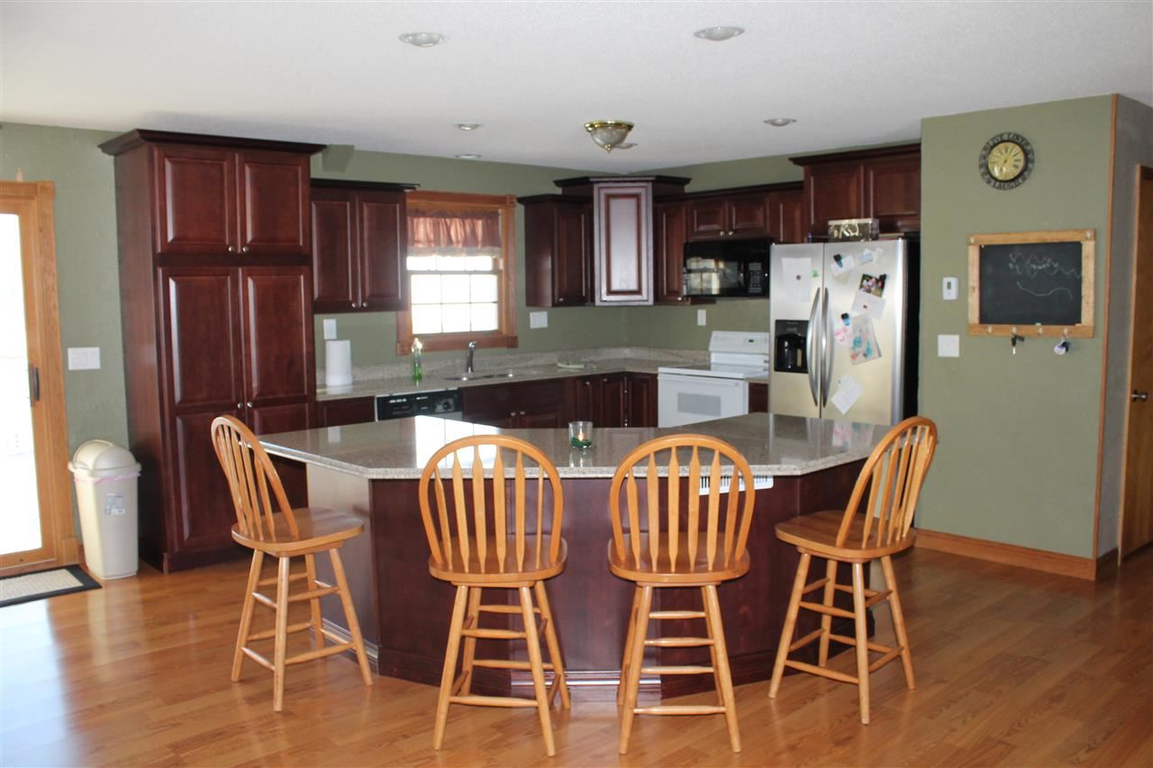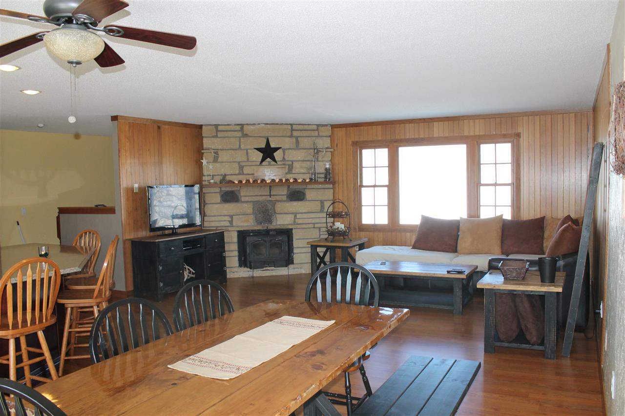 MOTIVATED SELLER!! An updated country home awaits you! Great location, quiet country setting and only minutes to town! 4 bedroom, 2 bath home features newly remodeled kitchen with cherry cabinets and solid surface countertops. Open floor plan with a wood burning fireplace makes it easy to entertain. Lower level has family/rec room with a gas fireplace, 4th bedroom and laundry access in the bathroom area. 2 car attached garage. Additional 14x42 shed with 220 amp service. SELLER WANTS OFFER!