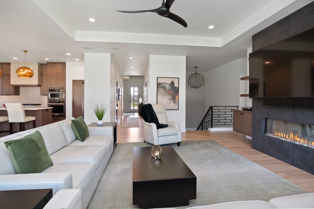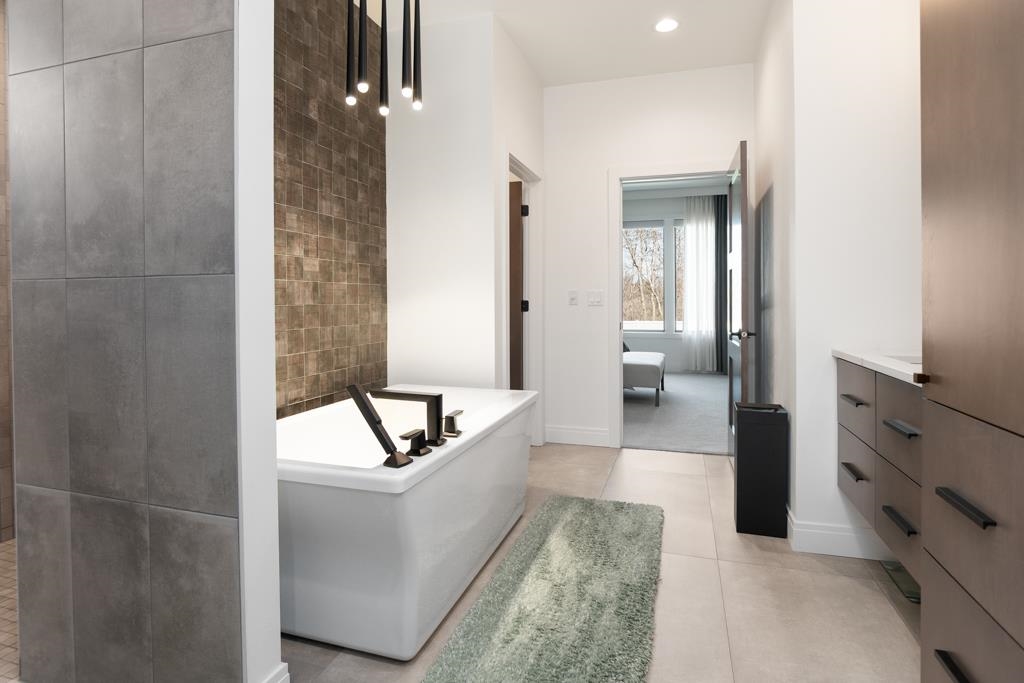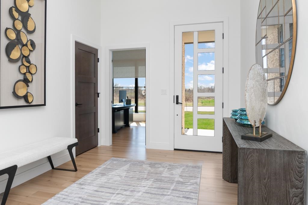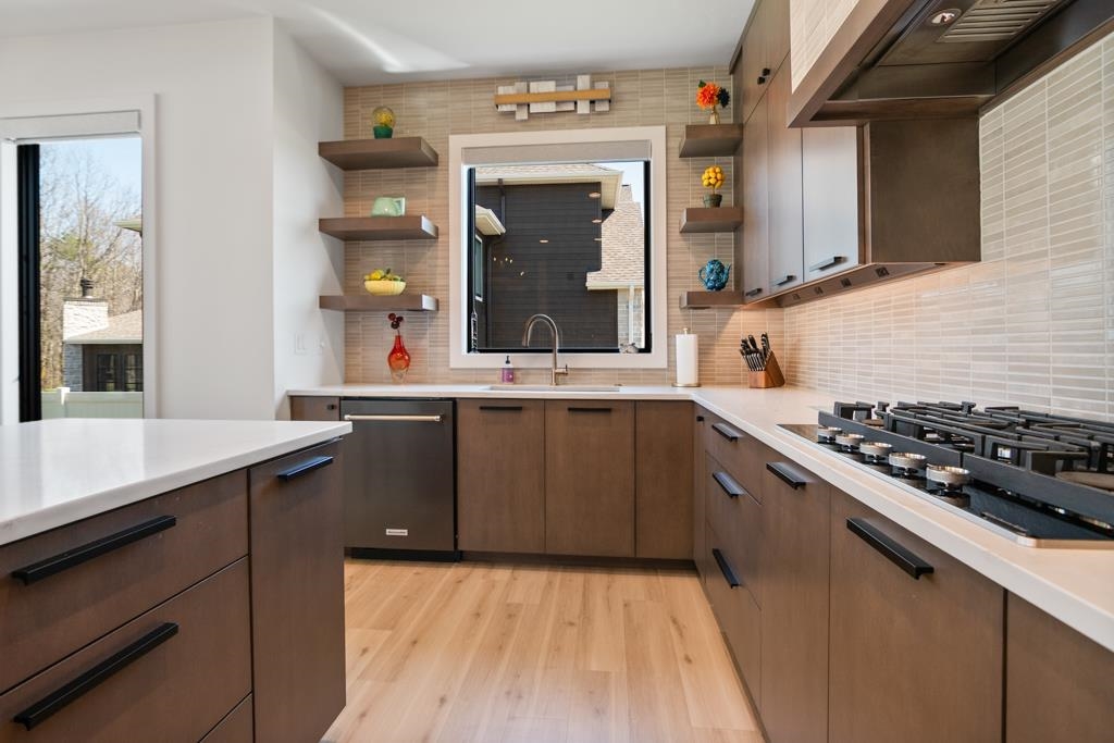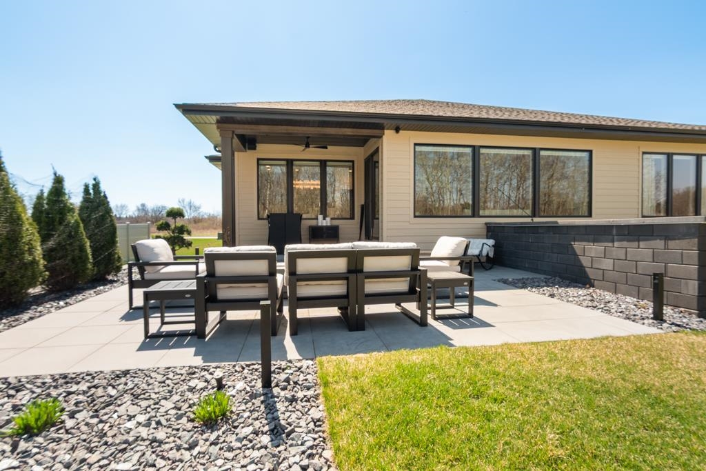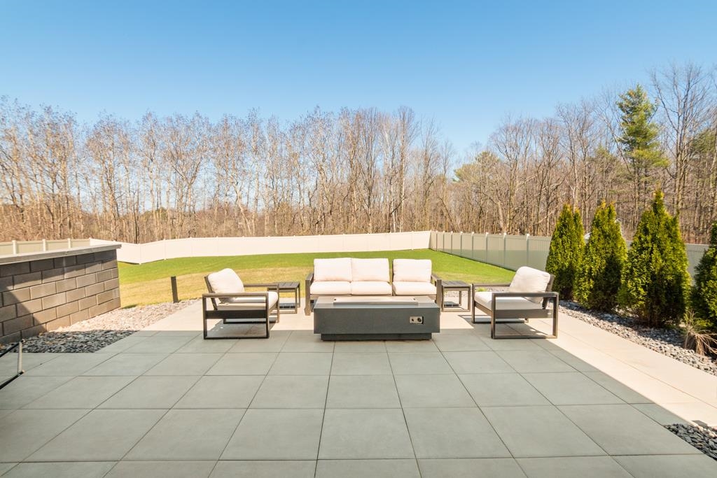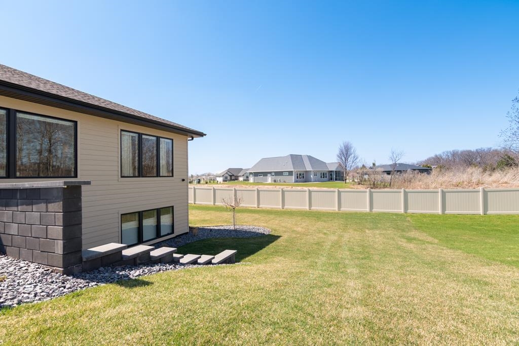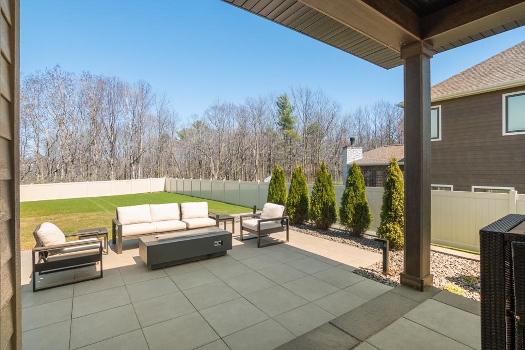 Experience modern living in this beautifully crafted ranch home built by TCD Homes. Only 1.5 years old, this home is loaded with upgrades you won't find in a new construction. Set on 1.12 acres that backs up to woods, this home offers 2223 sq ft with 3 bedrooms and 2.5 baths. The primary suite boasts views of the backyard and an en-suite with soaking tub, custom tile walk-in shower and spacious walk-in closet. Bedrooms 2 and 3 have a shared bathroom. The chef's kitchen has a large center island with Quartz counters and a tile back splash and is open to the Living Room with gas fireplace and floating shelves. There is a patio door that leads to the covered patio and fenced-in yard complete with landscaping, retaining walls and sprinkler system. Unfinished LL - can add more living space