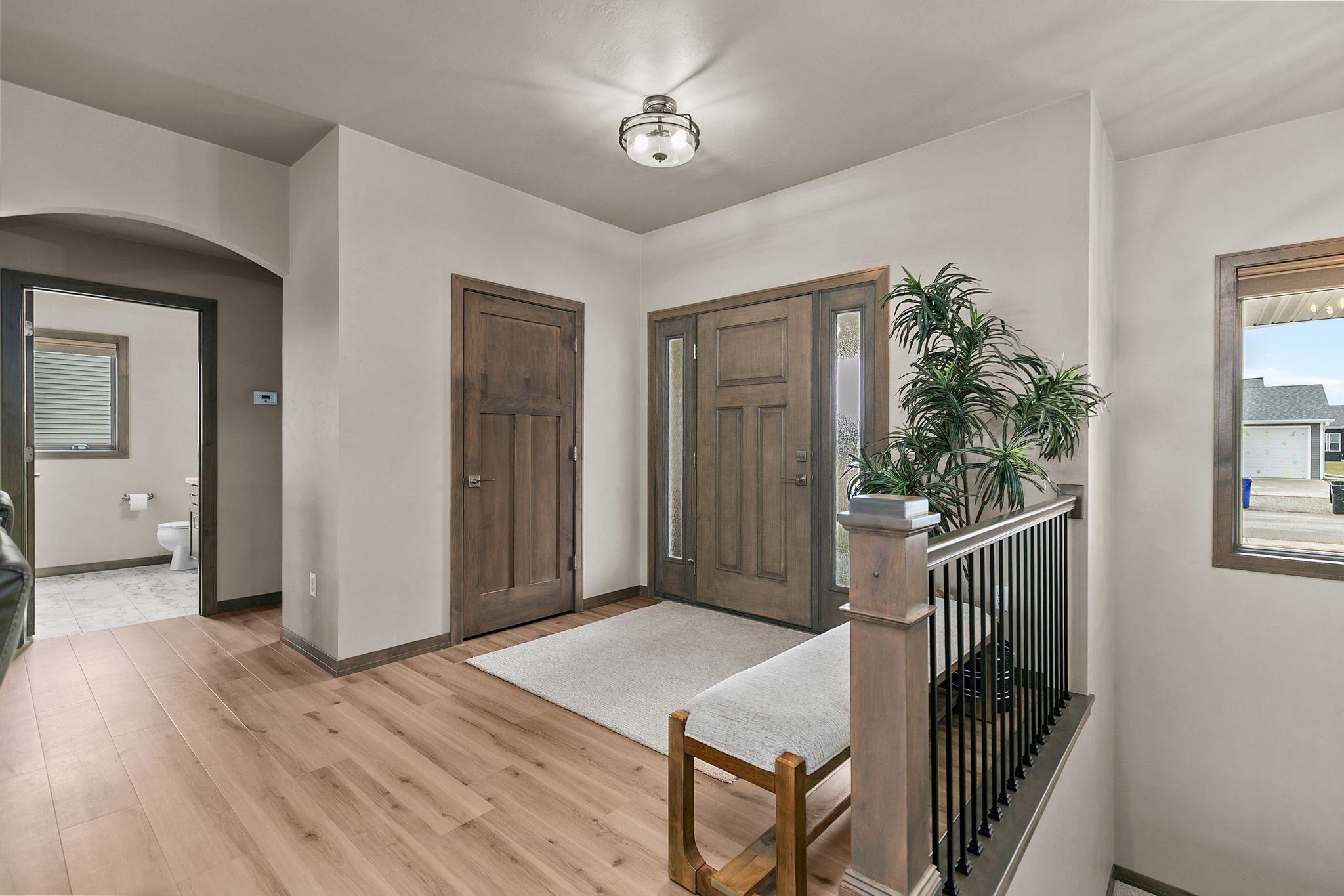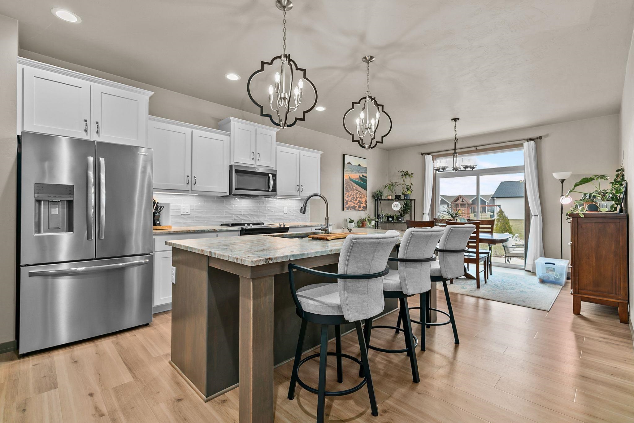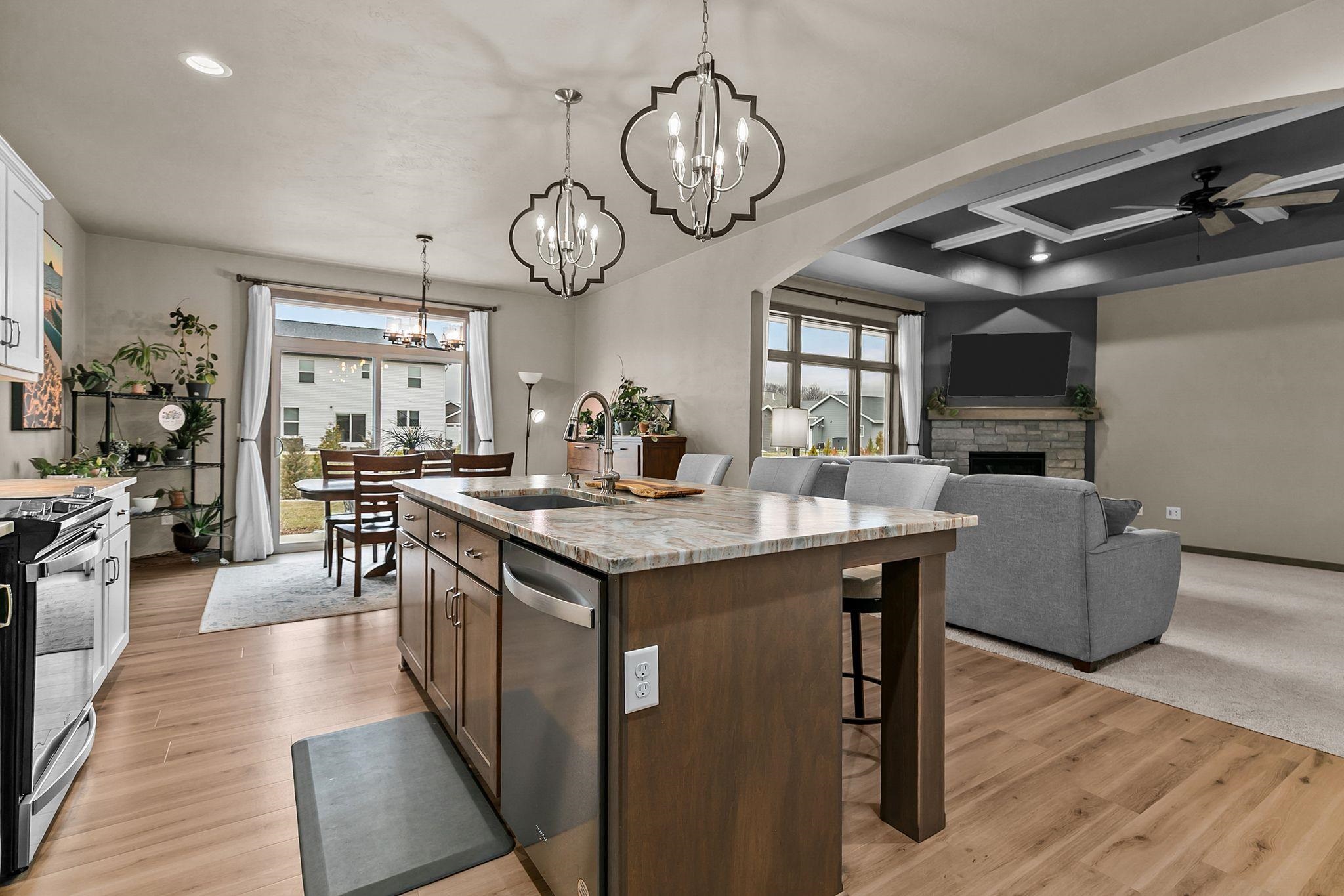 Impeccably finished North Appleton ranch style home! 3 bedroom 2.5 bathroom home with expansive open concept and superior finishes including Anderson windows, Bryant furnace, and Bali blinds. Walk in and enjoy the spacious front foyer leading to your Living Room with coffered tray ceiling and gas fireplace. Trophy kitchen space with center island, white cabinetry, textured tile backsplash, modern pendant lights, and granite counters. Primary suite with walk in closet, dual vanity, and custom tile shower. Split bedroom design with secondary bedrooms off the living room with full bath. Back entry with lockers & drop zone, half bath, and 1st floor laundry. Finished garage space with basement egress. Basement awaiting finishing touches with 2 egress windows & stubbed for another bathroom.