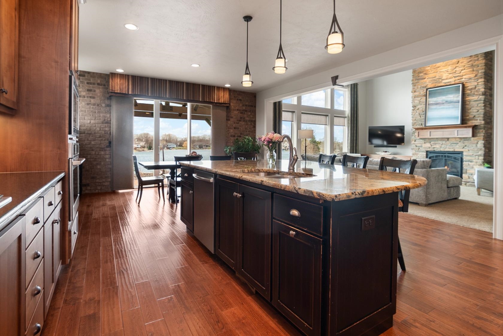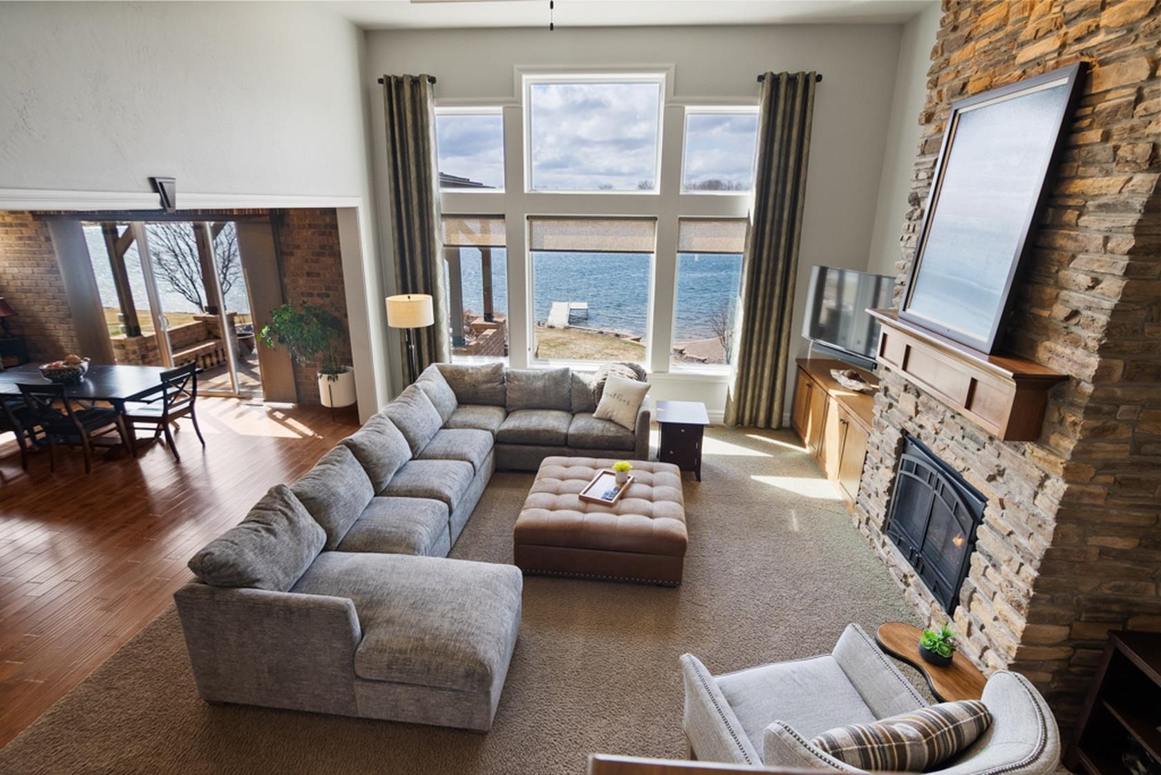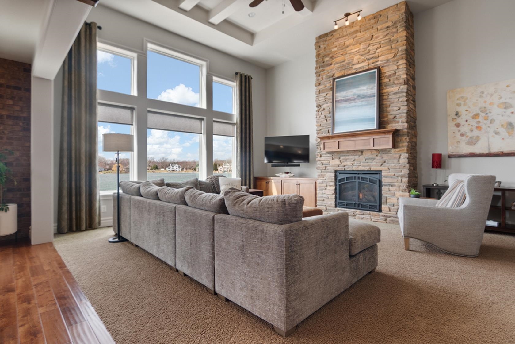 Over 110' of panoramic frontage on Harbor Lights Lake in Suamico with your very own beach! An extremely rare find with over 5,200 Sq Ft, fully updated interior, custom-built showcase with high quality finishes, amenities & materials throughout. Flexible layout with 1st floor ensuite with great lake views, walk-in closets (2), walk-in tile shower, heated floors, 1st floor office/flex room, 9-10' ceilings, great room with balcony, coffered ceiling, floor to ceiling stone fireplace, spacious kitchen/dinette/hearth room - amazing layout for entertaining! Chefs kitchen with oversized island, appliances included, granite countertops. Cozy hearth room, walk-in pantry, mud room/lockers, 1st floor laundry, large storage closet, 4 add oversized bedrooms.